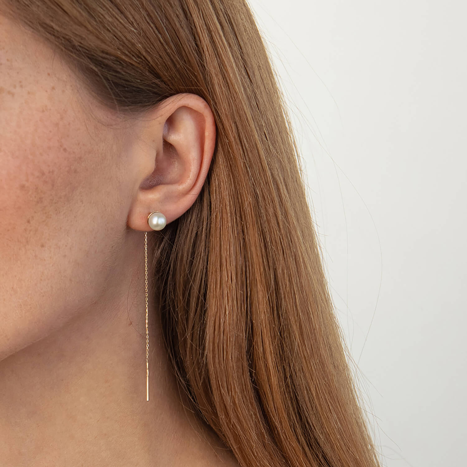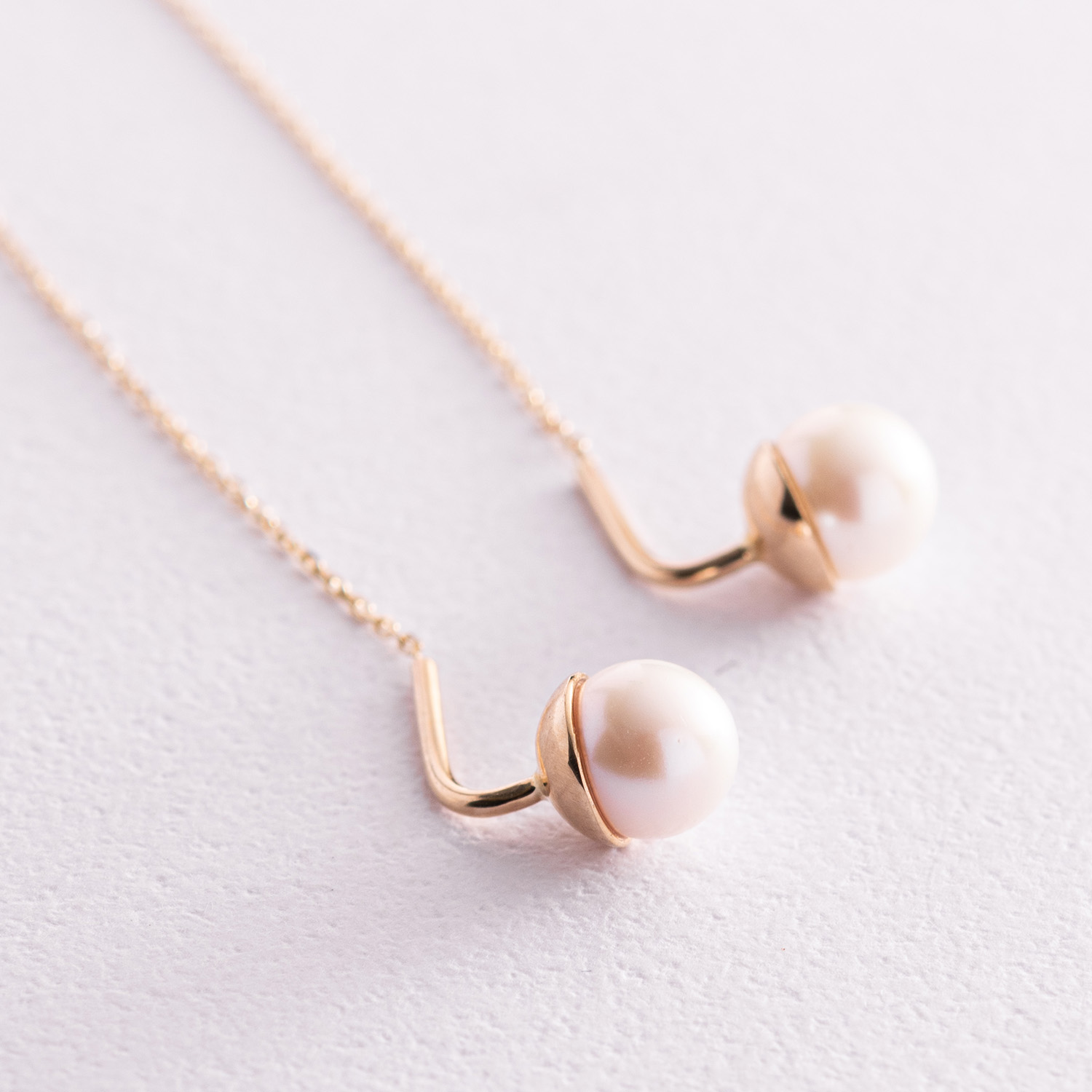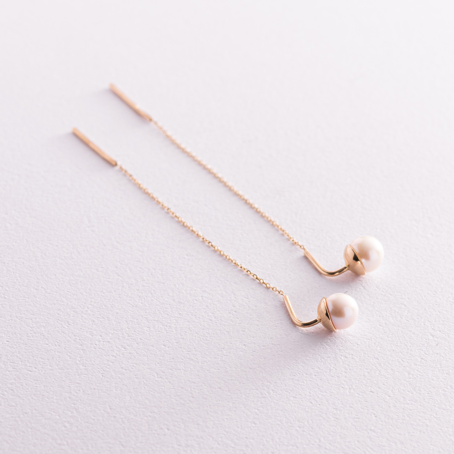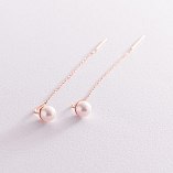 Золотые серьги - протяжки с жемчугом с07654