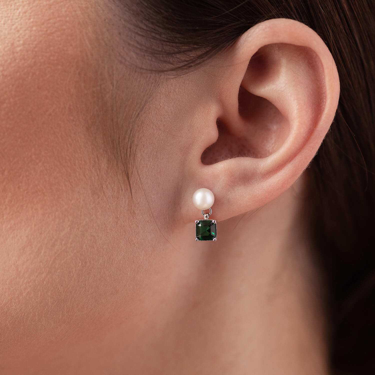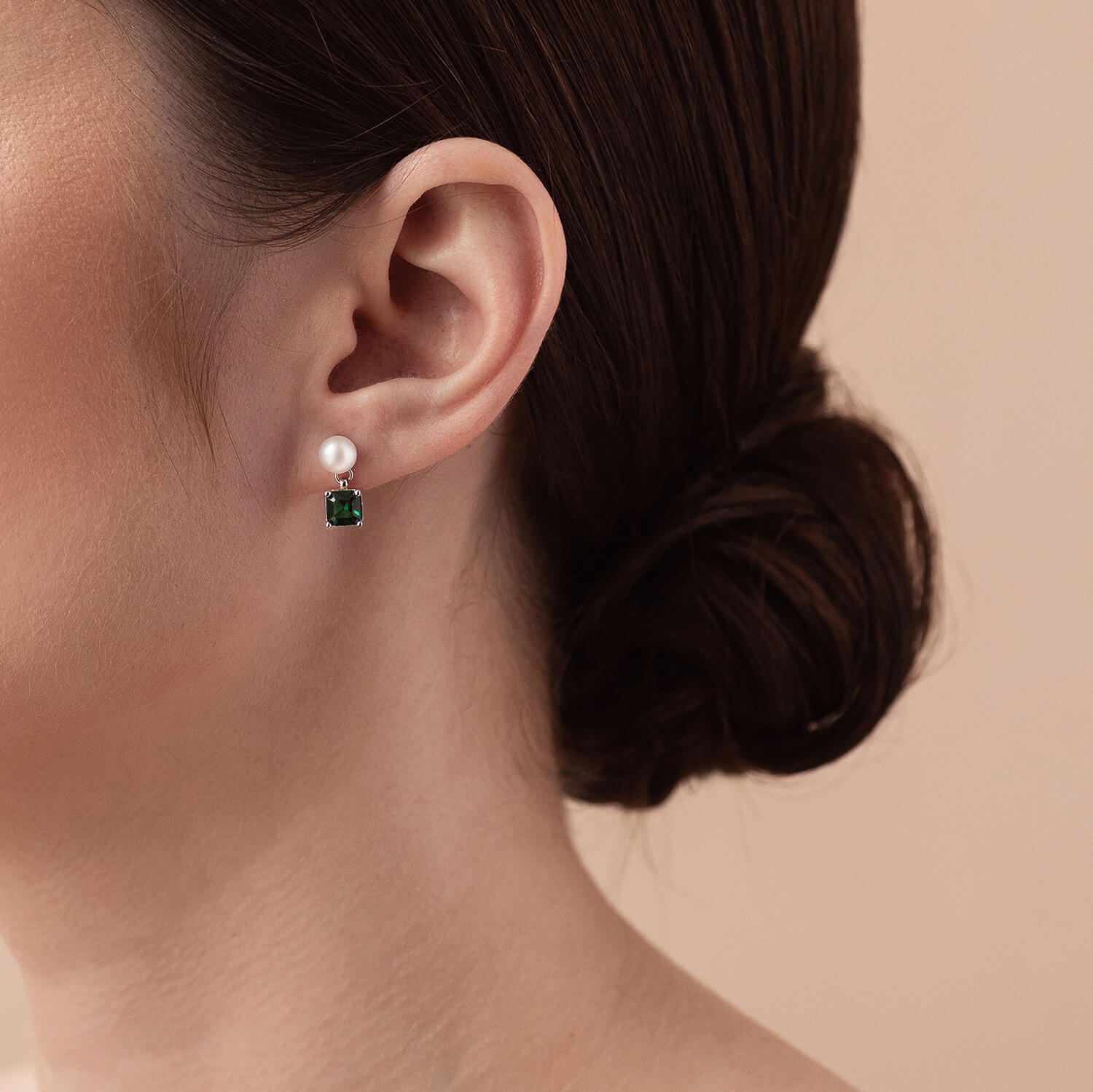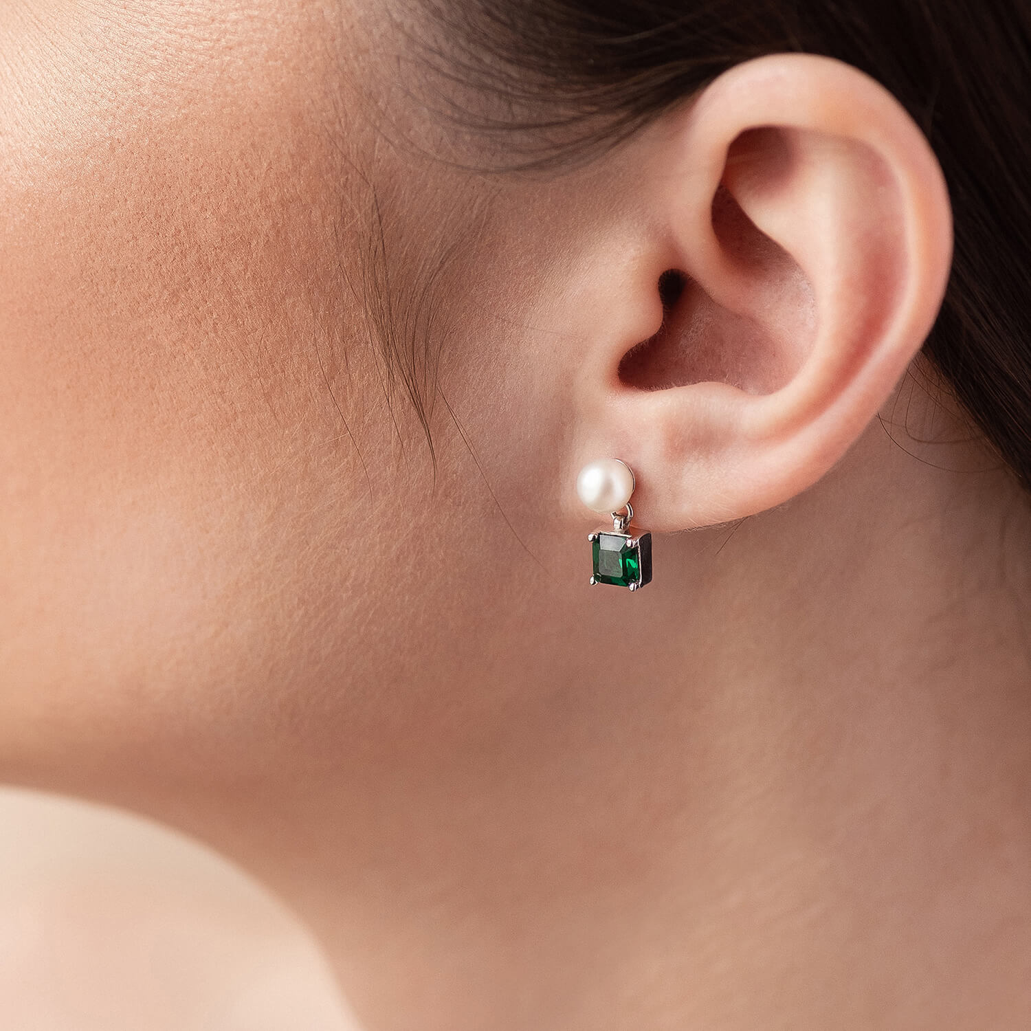 Золотые серьги - пусеты "Альма" (зеленые фианиты, жемчуг) с08248