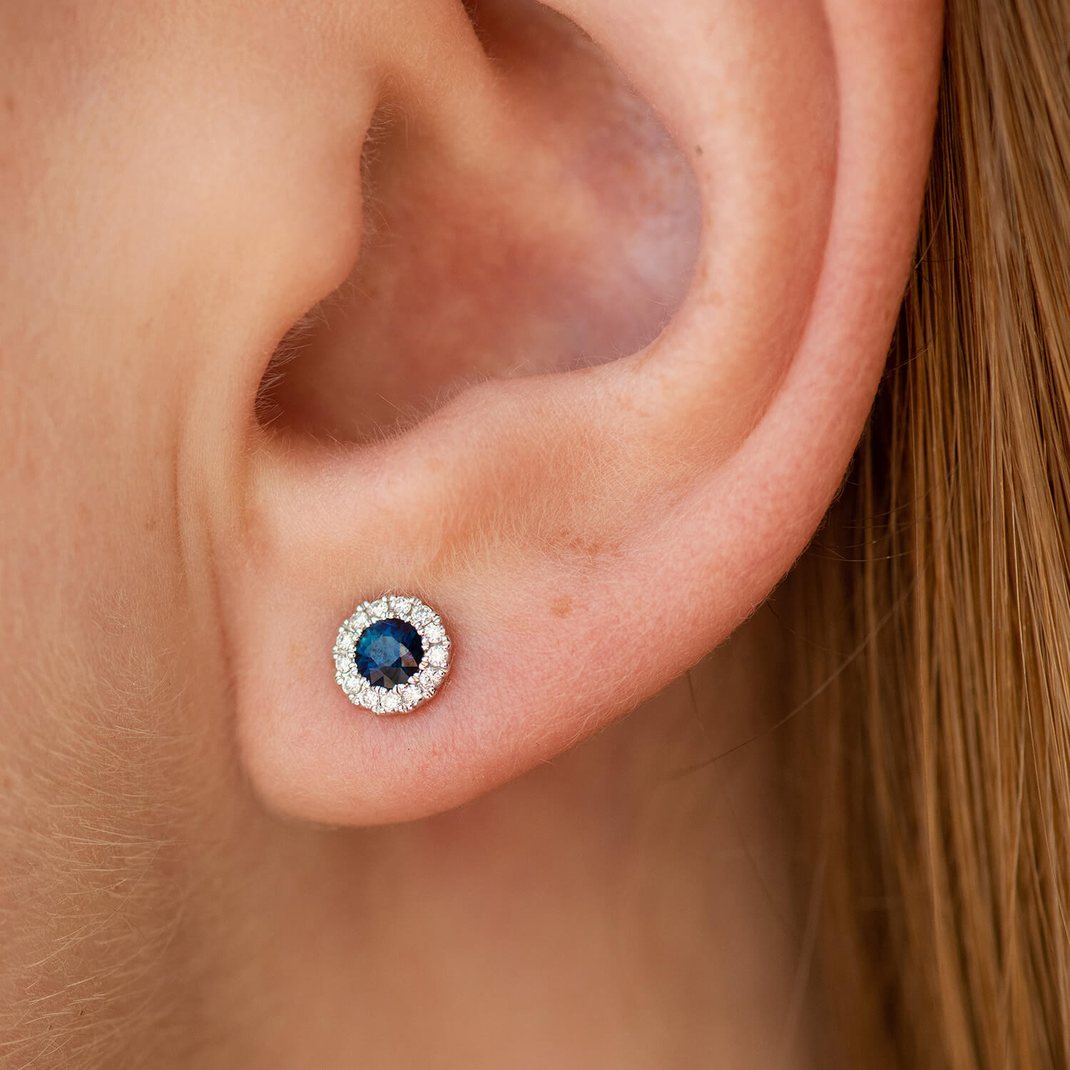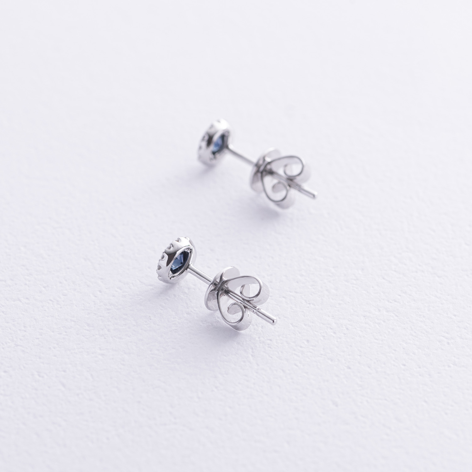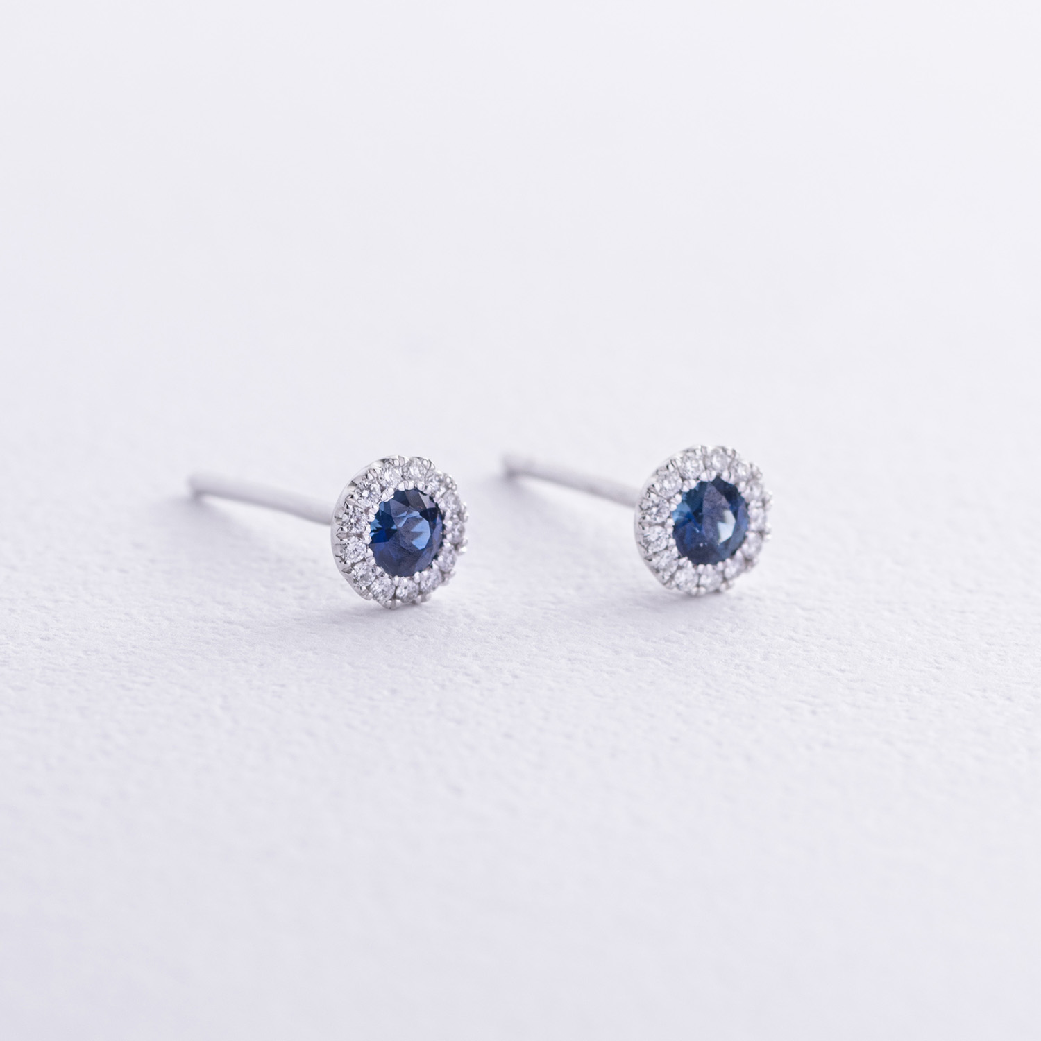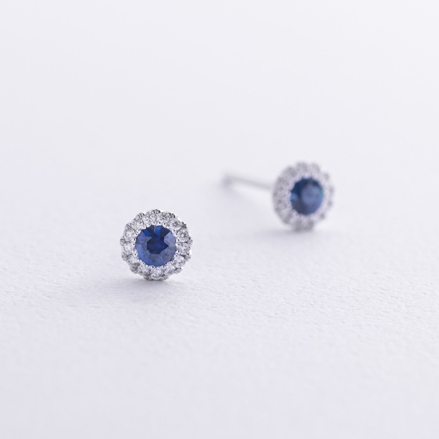 Золотые серьги - пусеты (бриллианты, сапфиры) сб0497gm