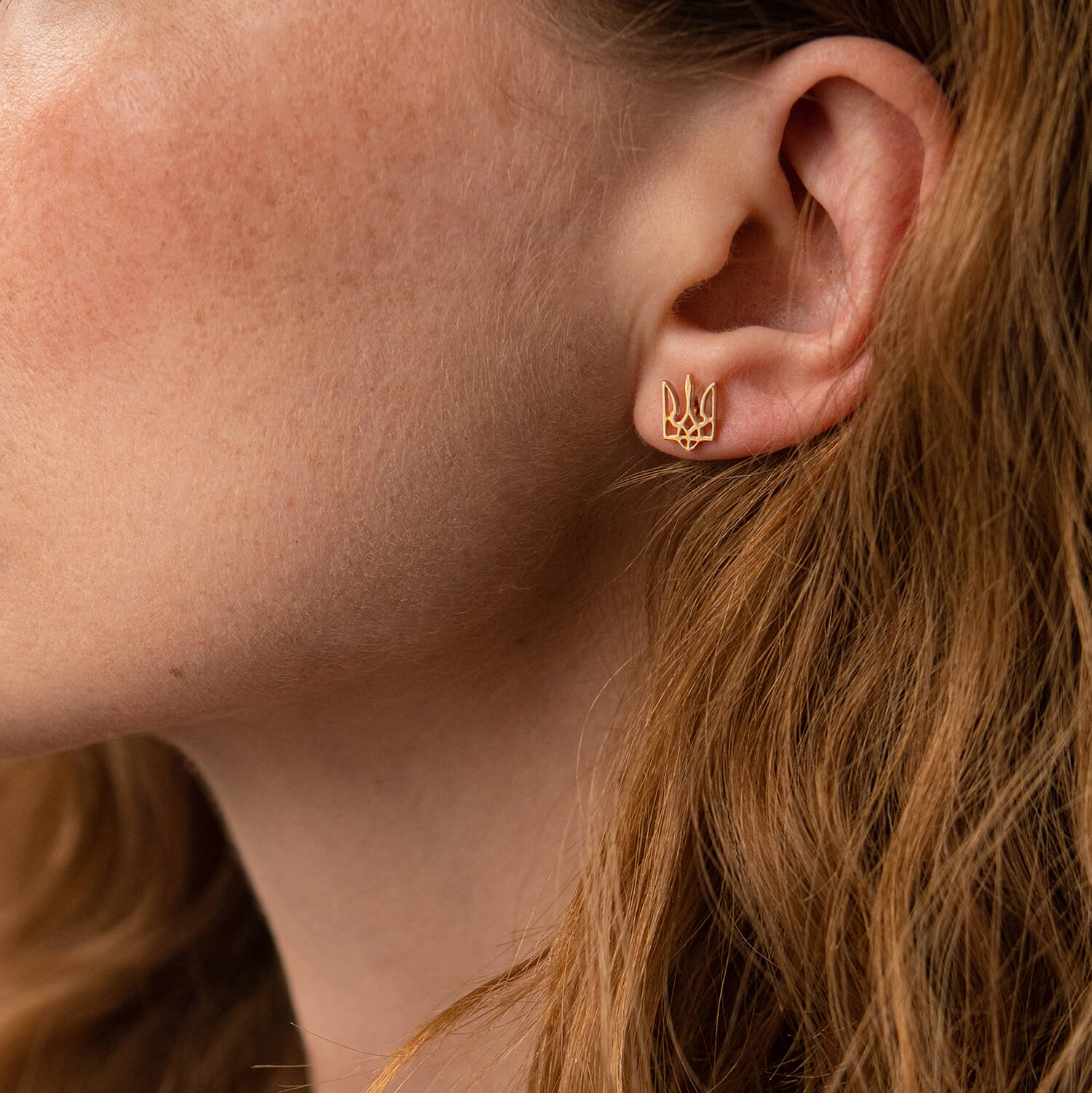 Золотые серьги - пусеты "Герб Украины - Тризуб" с02839