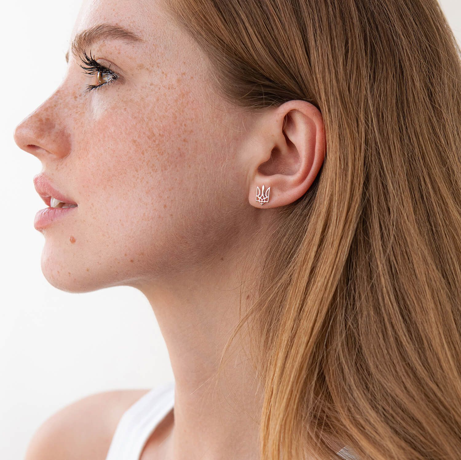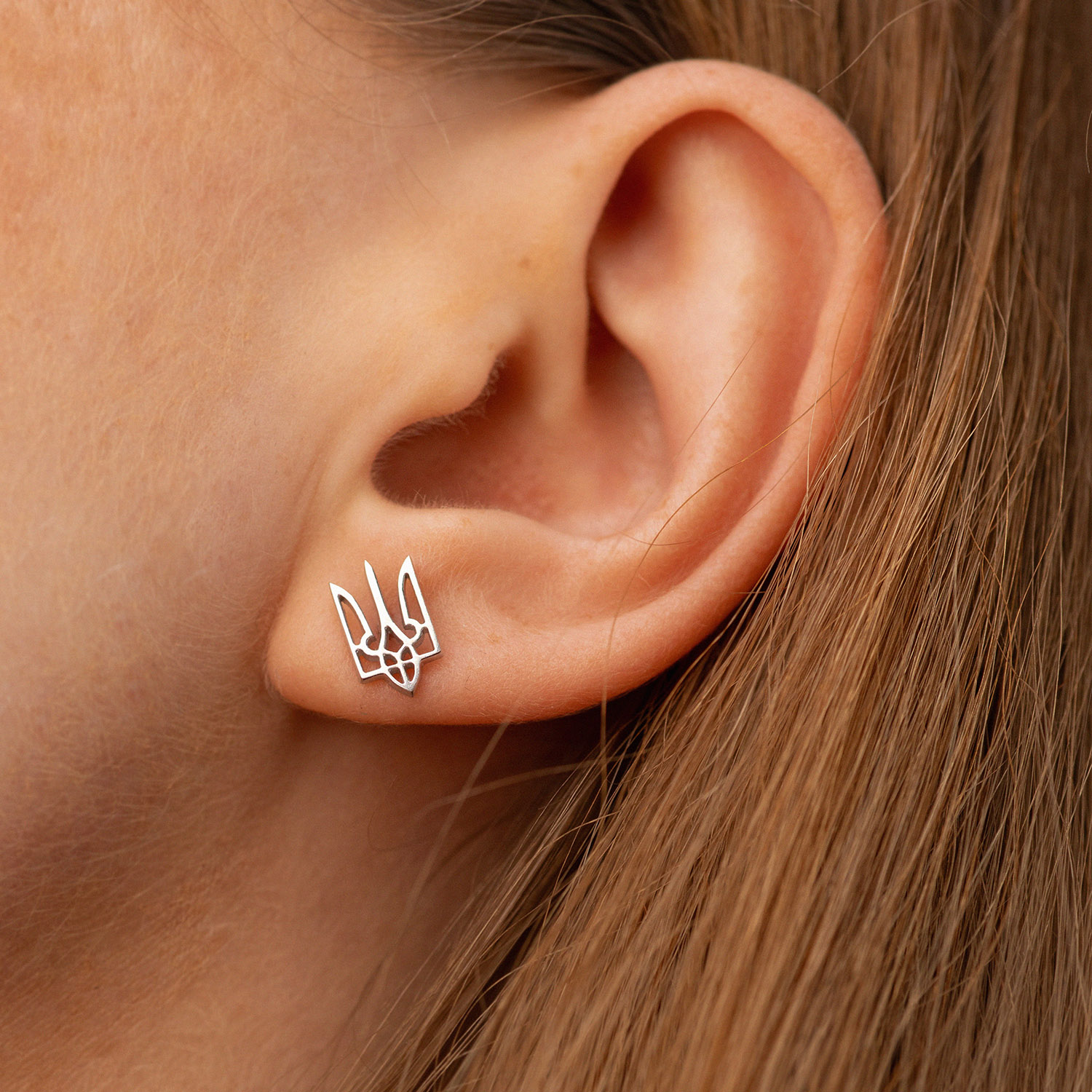 Золотые серьги - пусеты "Герб Украины - Тризуб" с07943