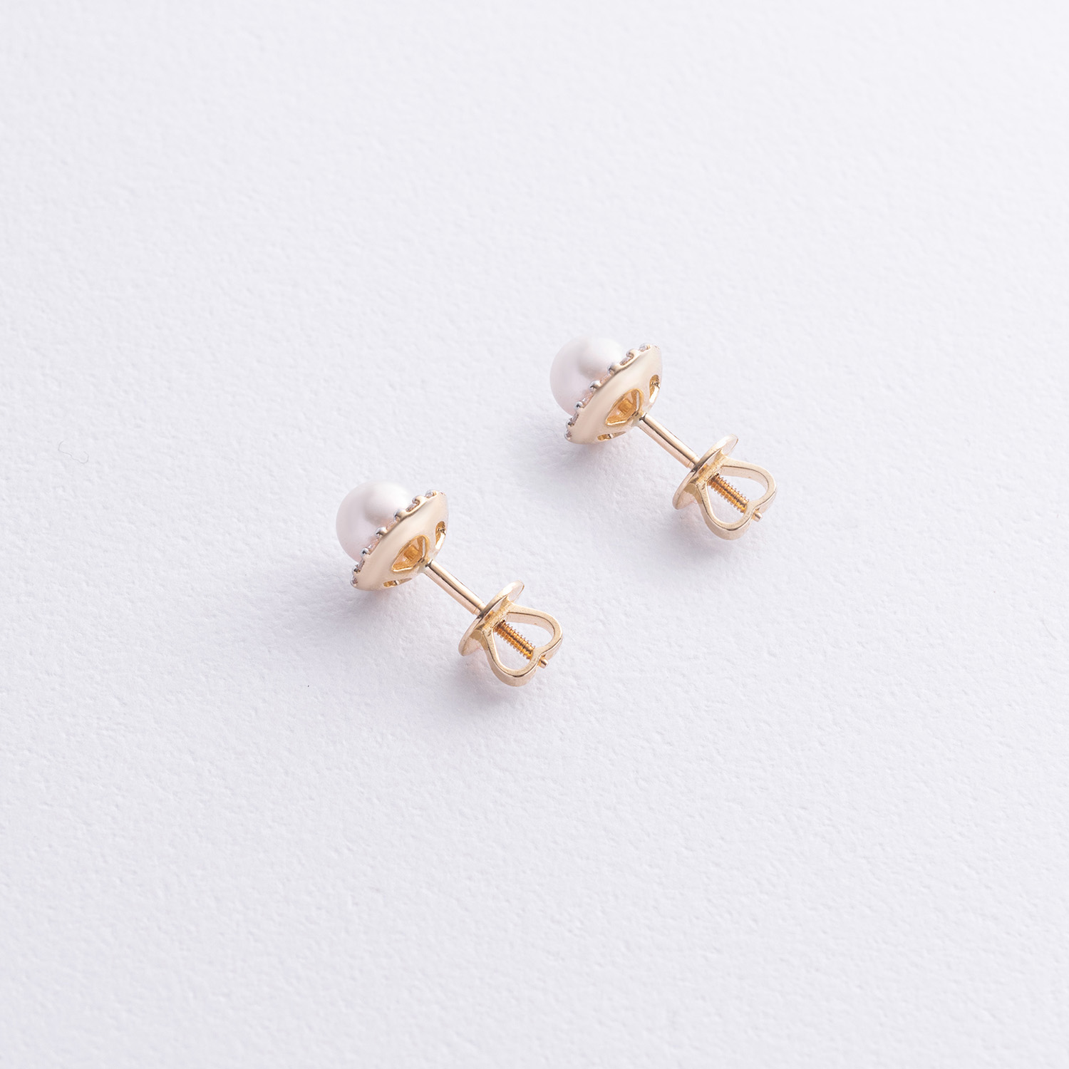 Золотые серьги - пусеты "Linea" (жемчуг, фианиты) с08915