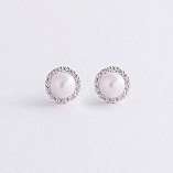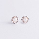 Золотые серьги - пусеты "Linea" (жемчуг, фианиты) с08916