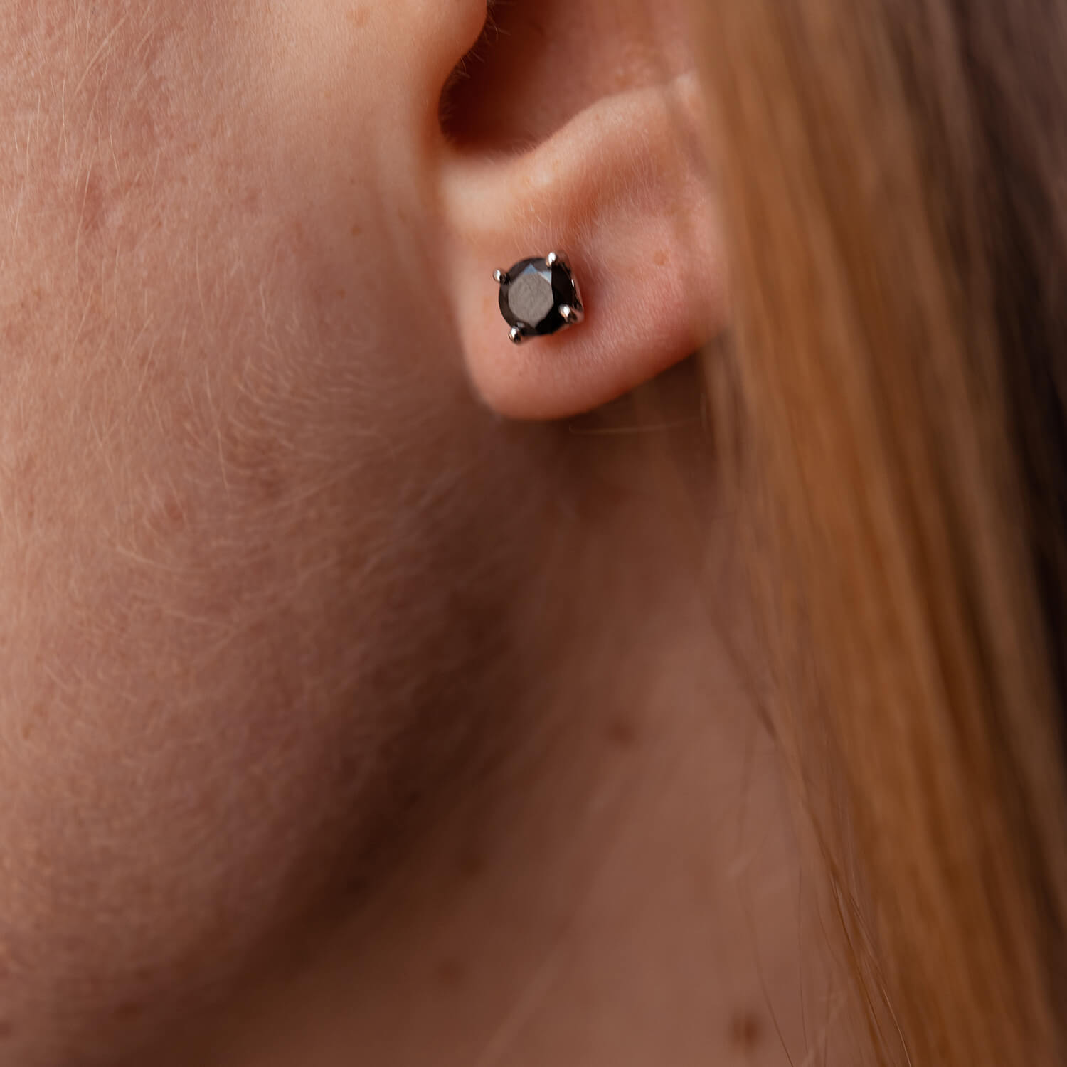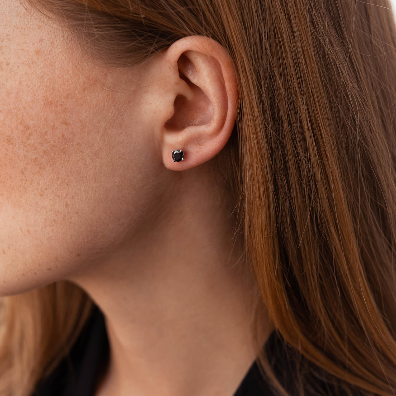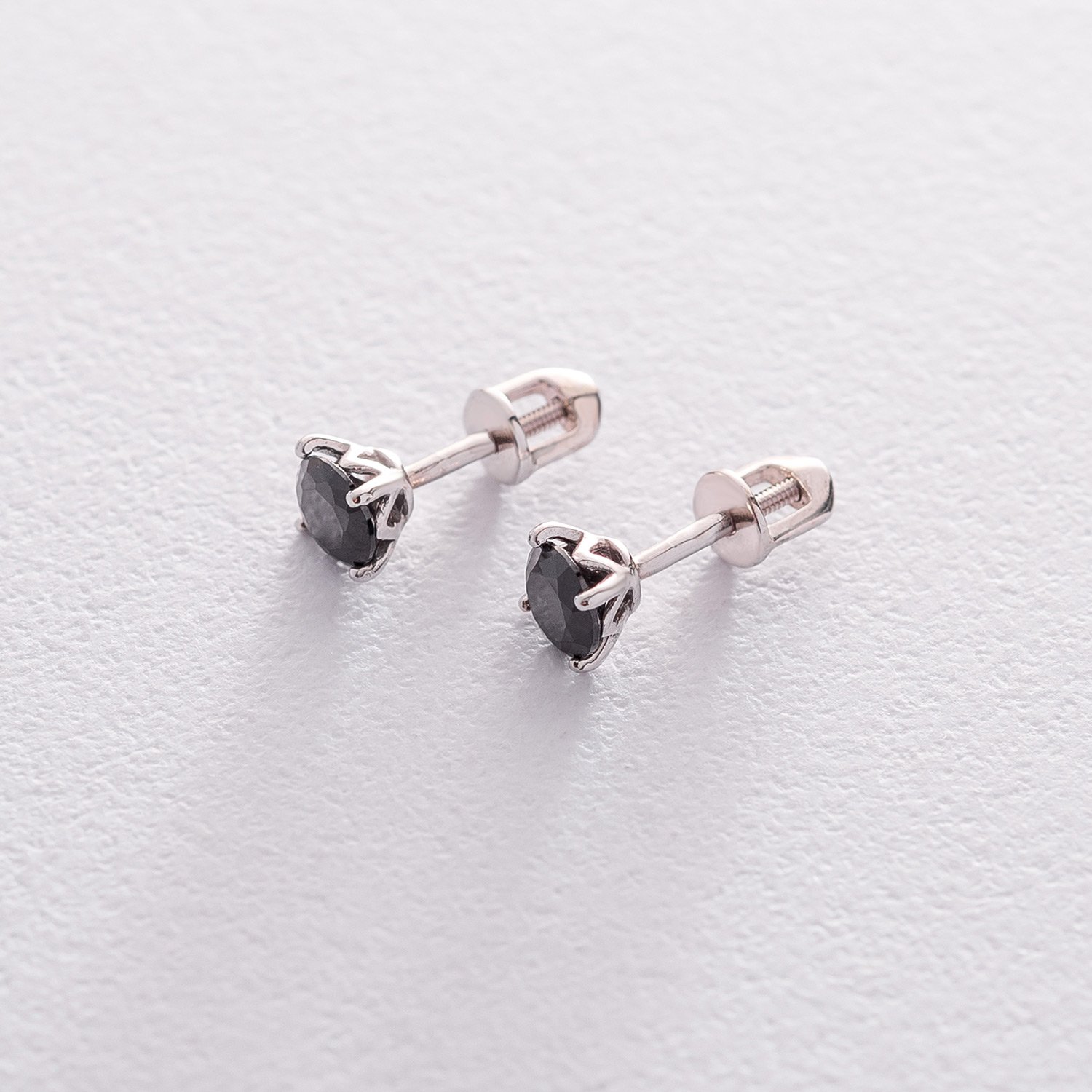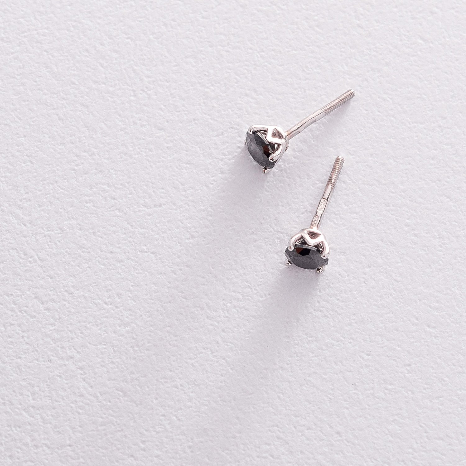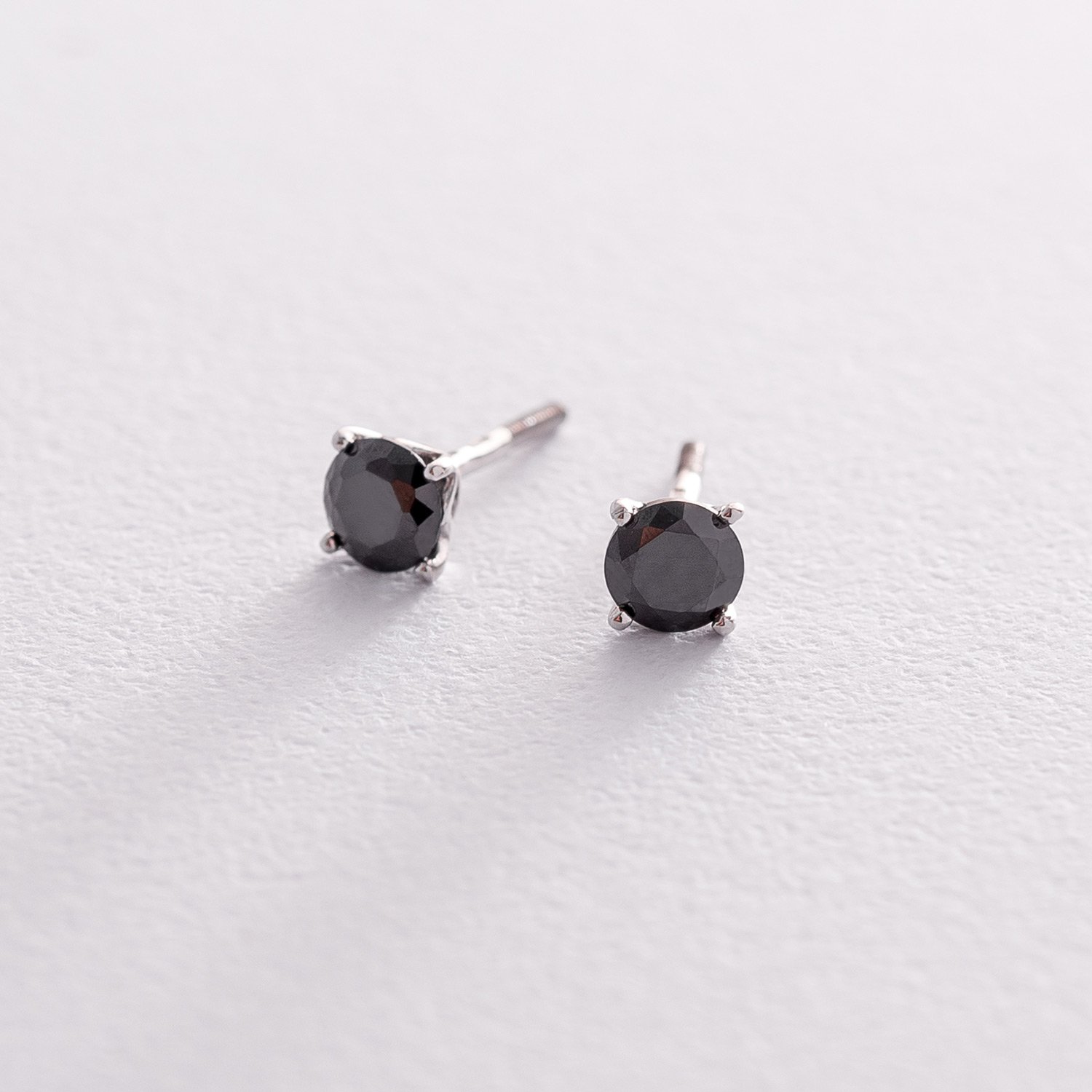 Золотые серьги-пусеты с черными фианитами с06233ч