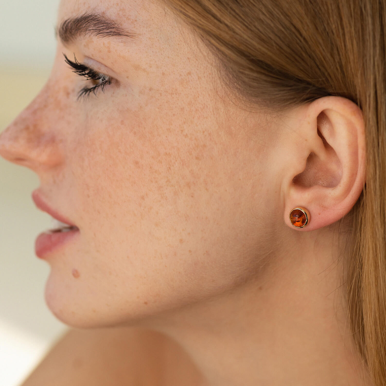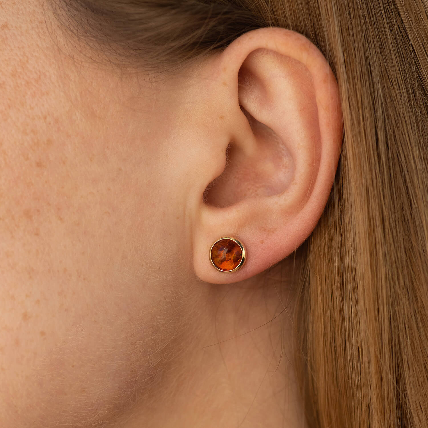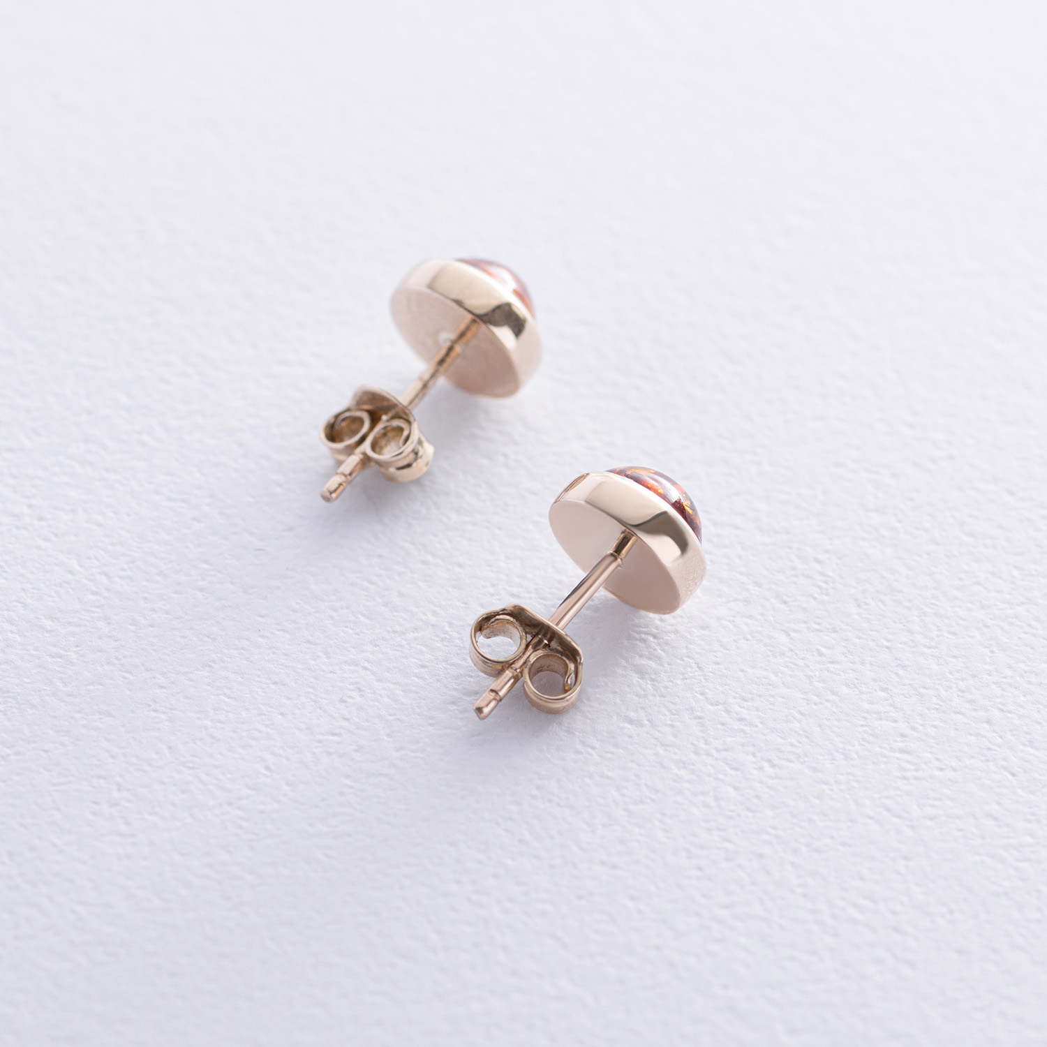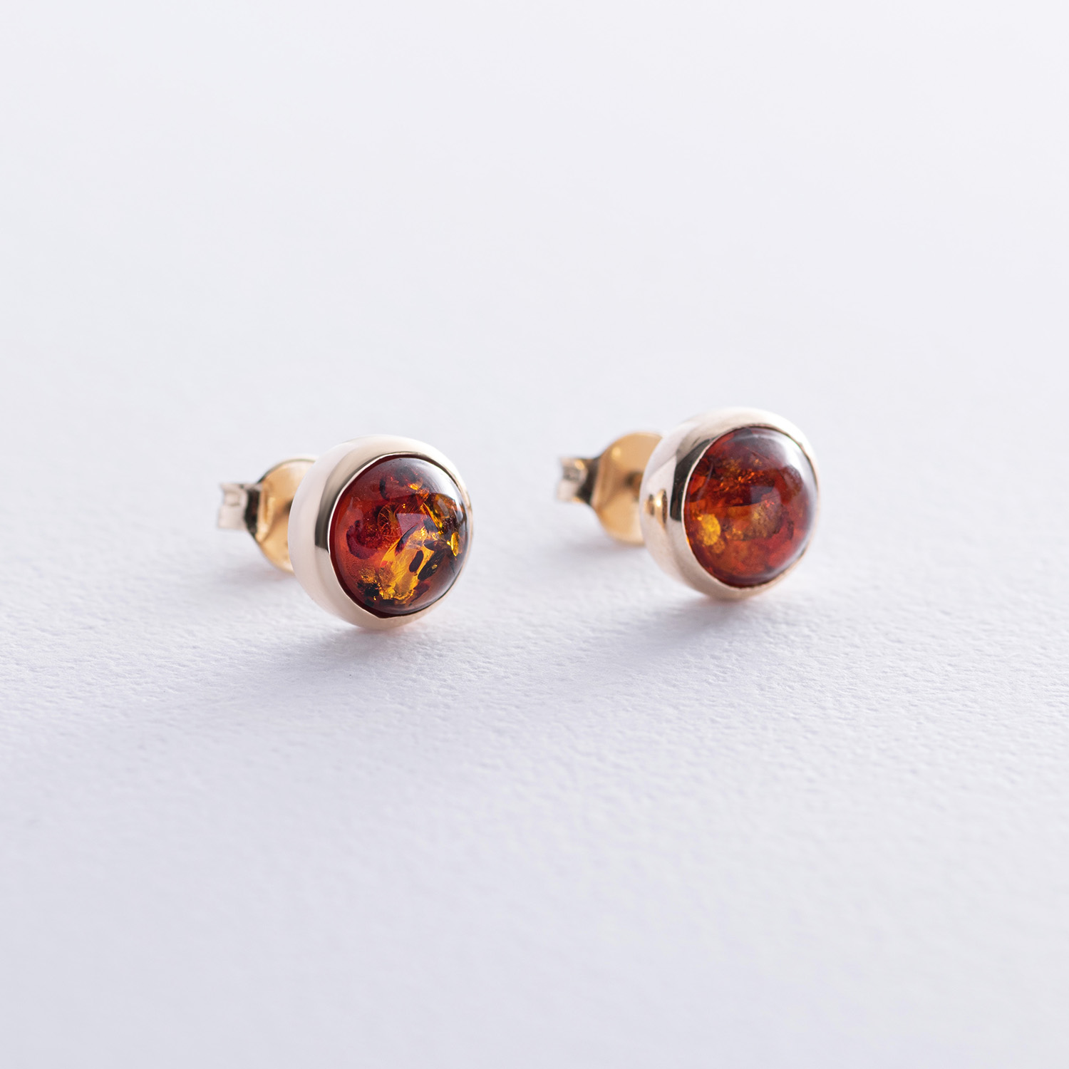 Золотые серьги - пусеты с янтарем с08713