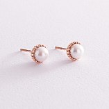 Золотые серьги - пусеты с жемчугом с07660