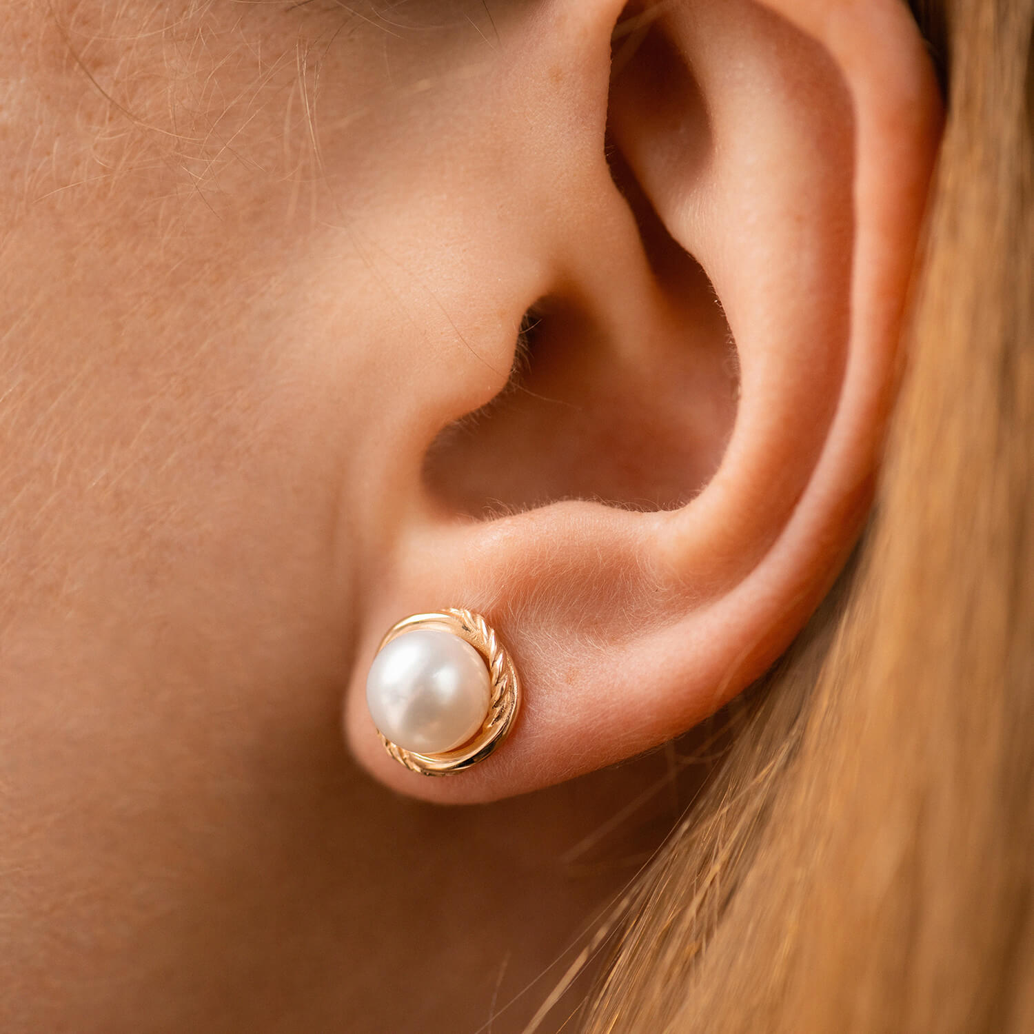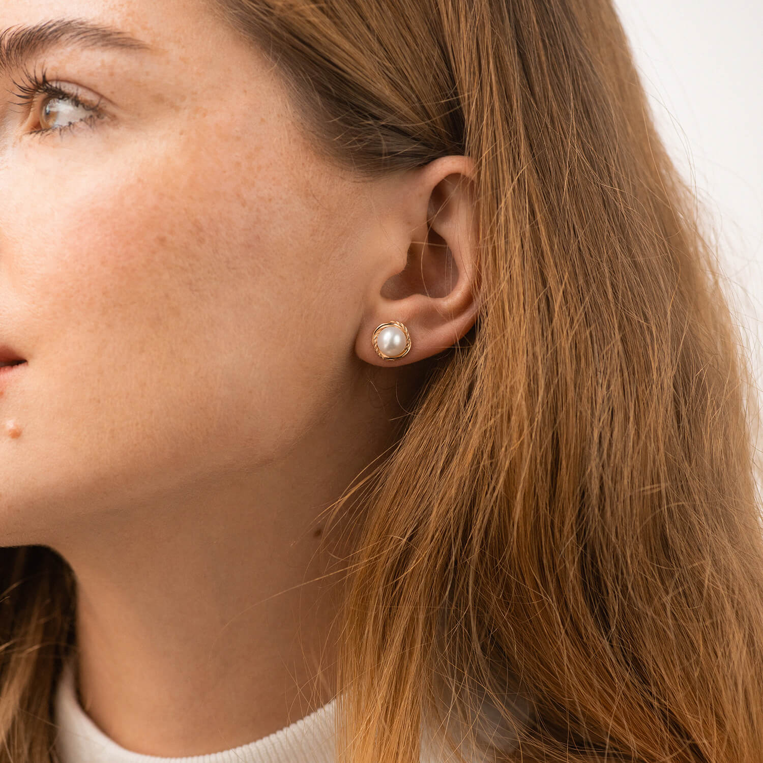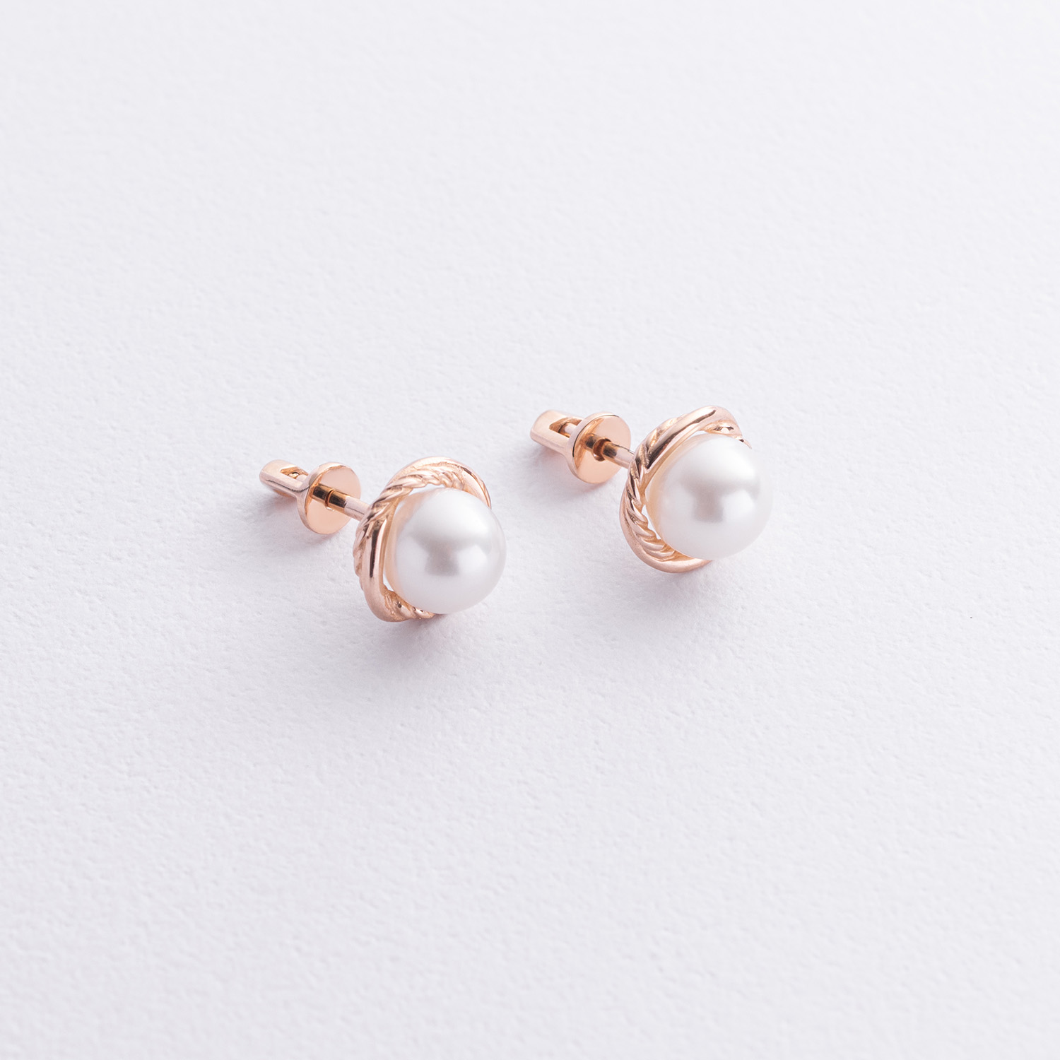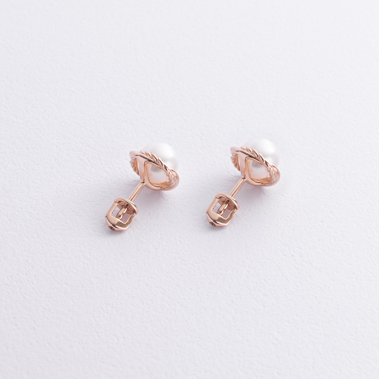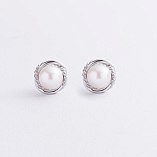 Золотые серьги - пусеты с жемчугом с09105