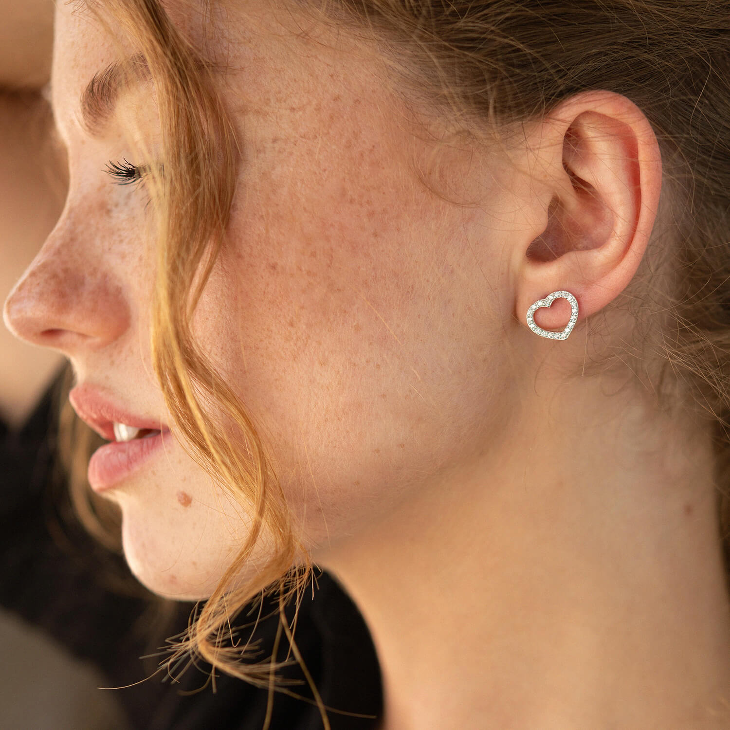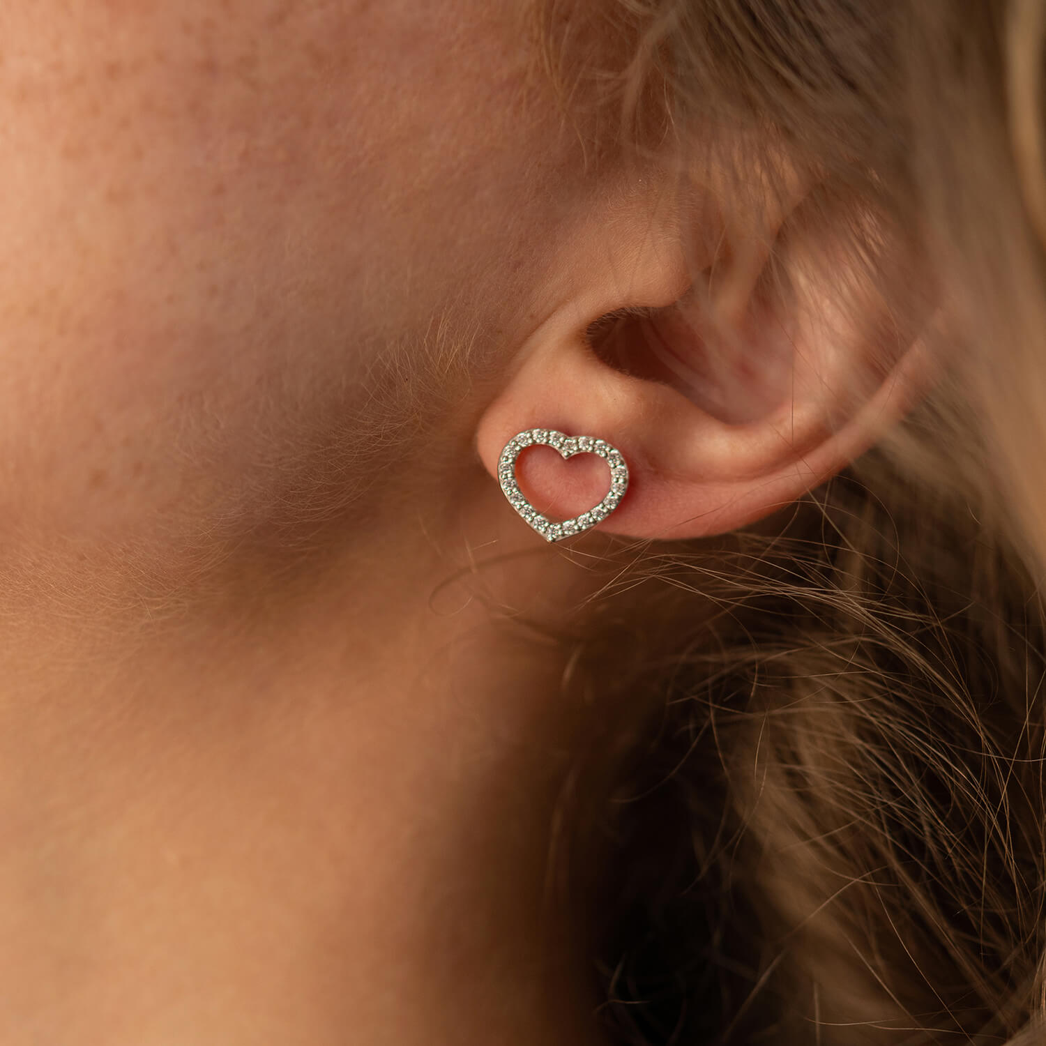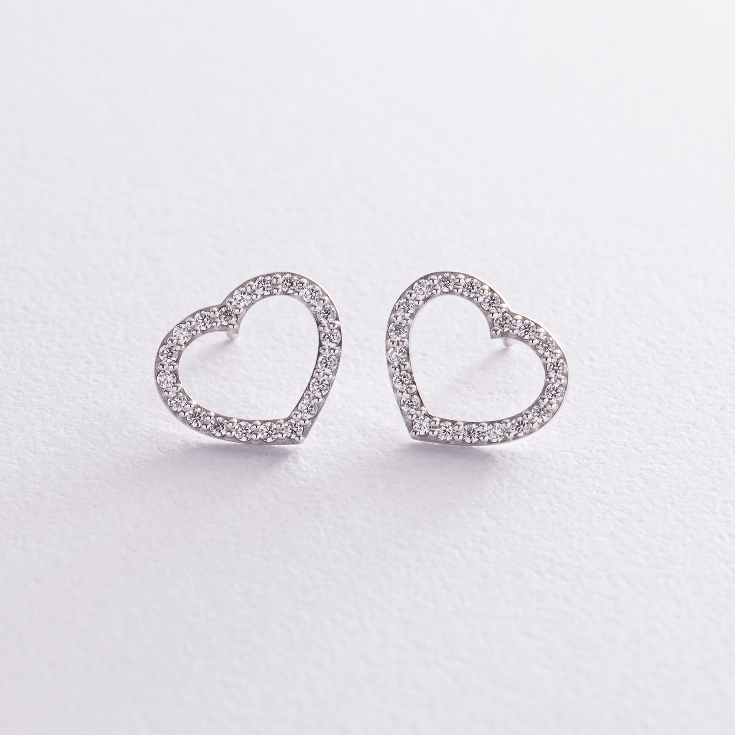 Золотые серьги - пусеты "Сердечки" с фианитами с08281