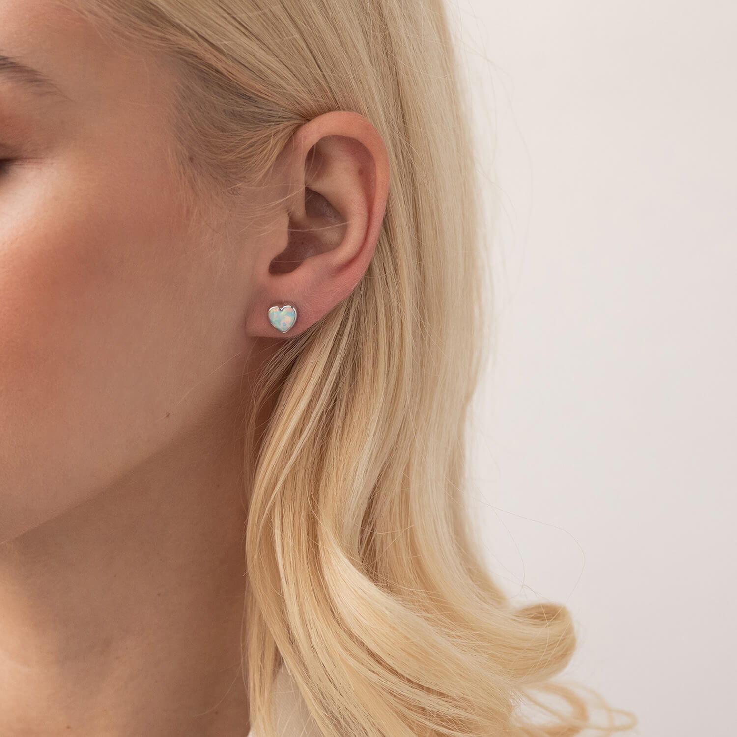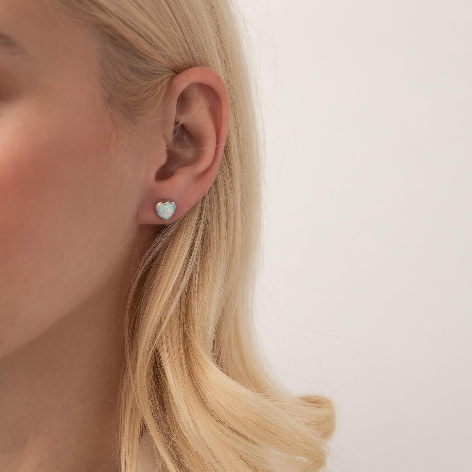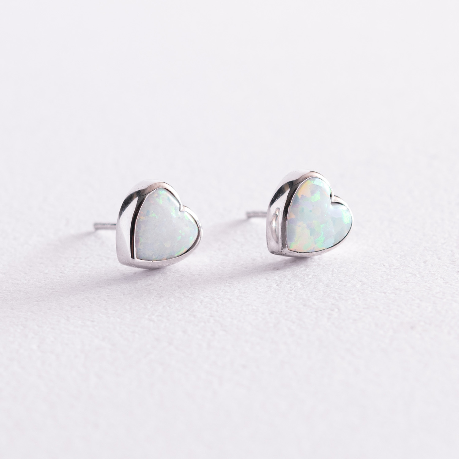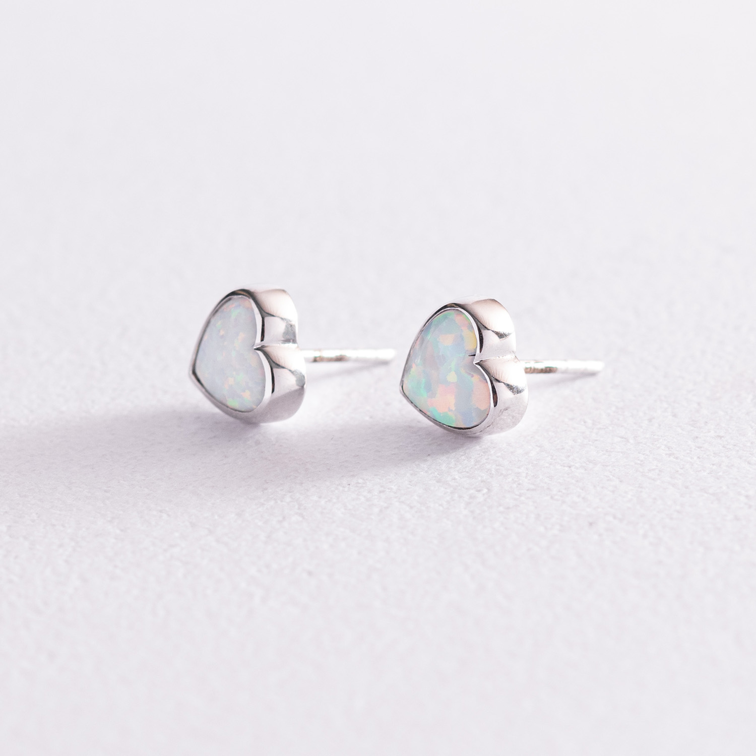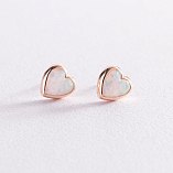 Золотые серьги - пусеты "Сердечки" с опалом с07745
