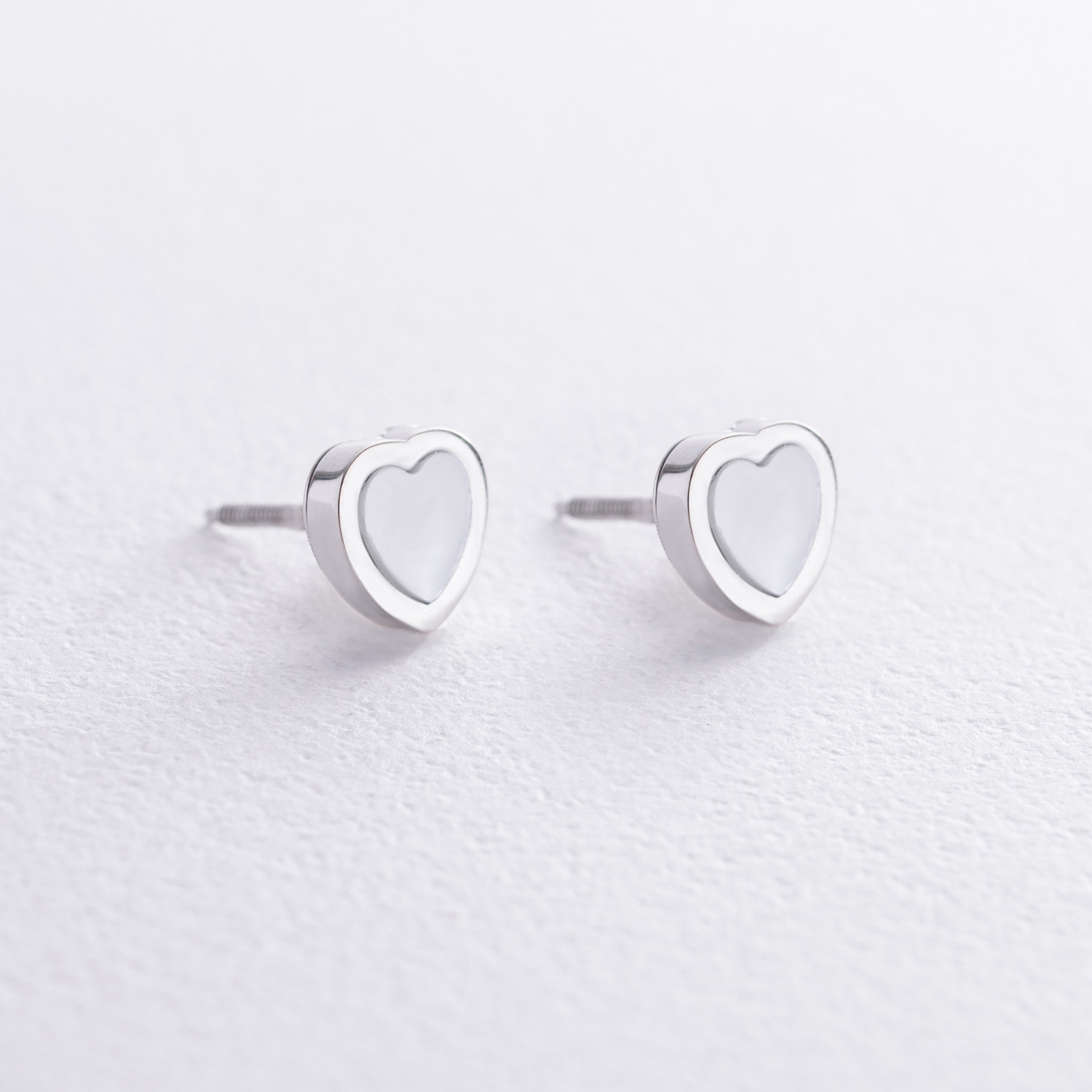 Золотые серьги - пусеты "Сердечки" с перламутром с08536