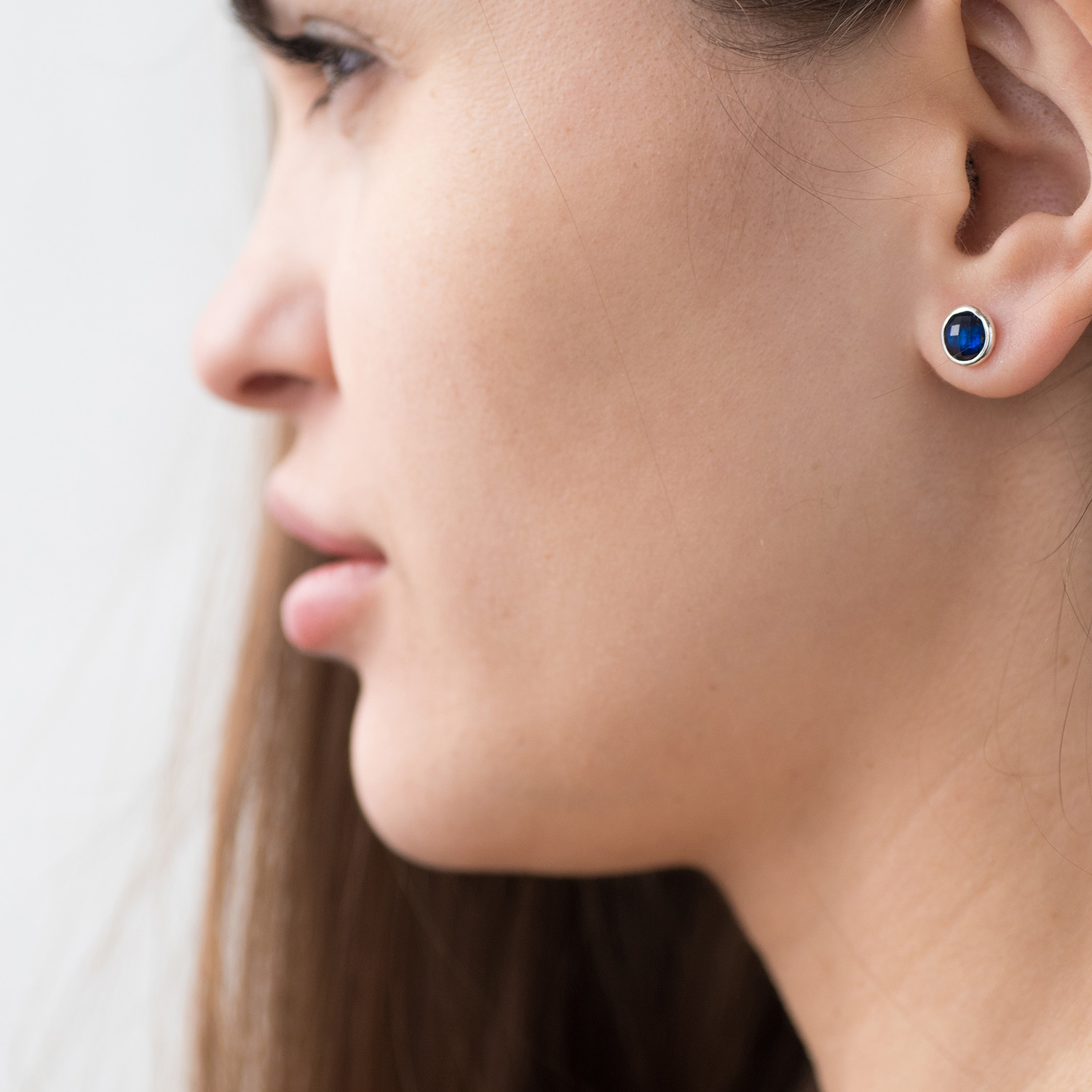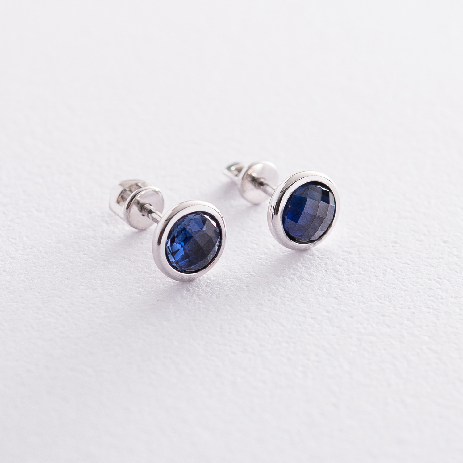 Золотые серьги-пусеты (синт. сапфир) с06463