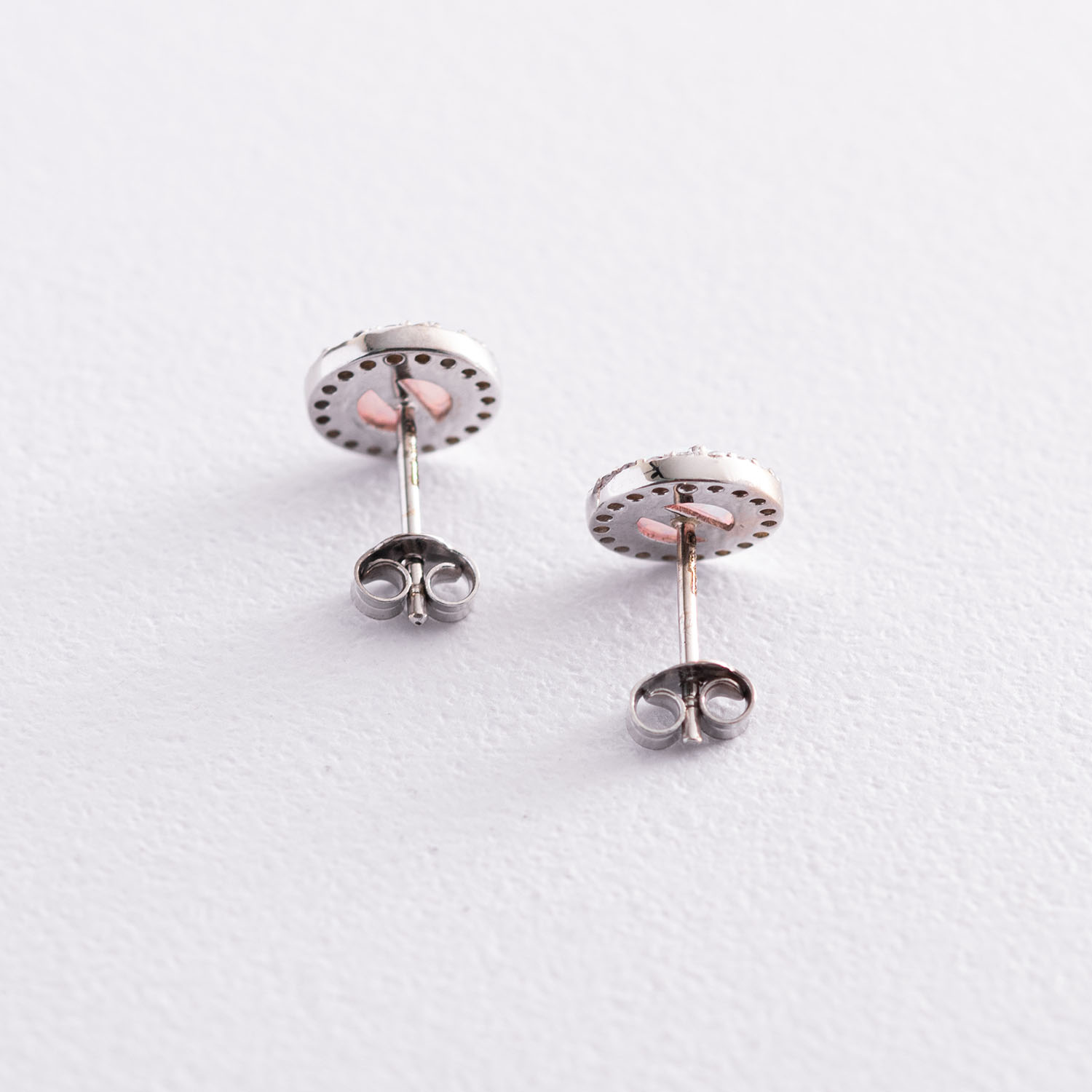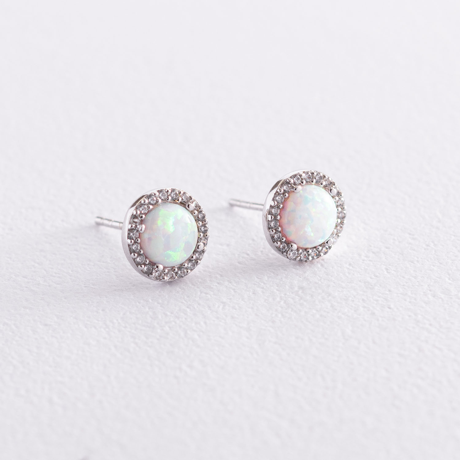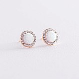 Золотые серьги-пусеты "Сияние" (синт. опал, фианиты) 9 мм с07436