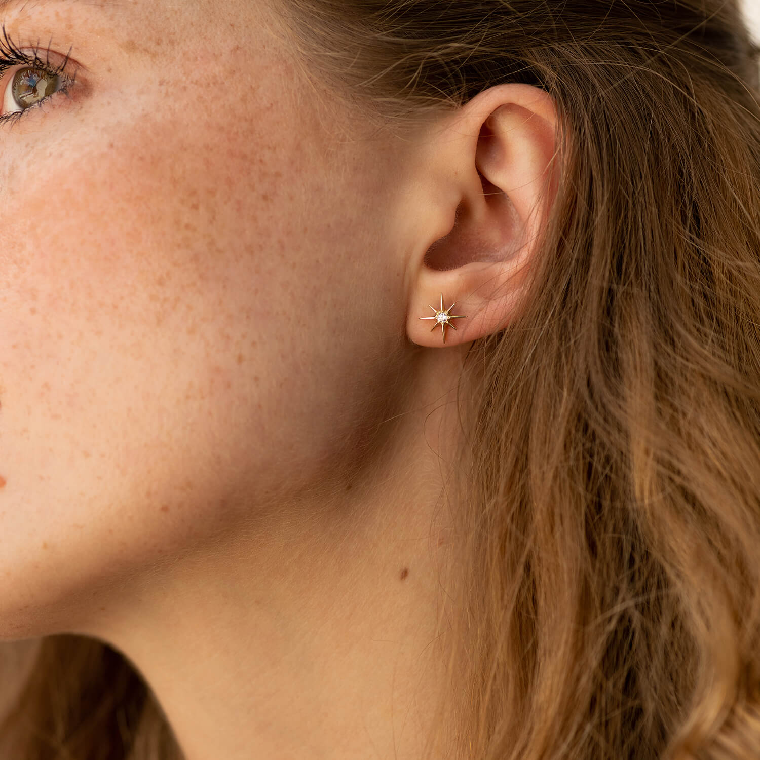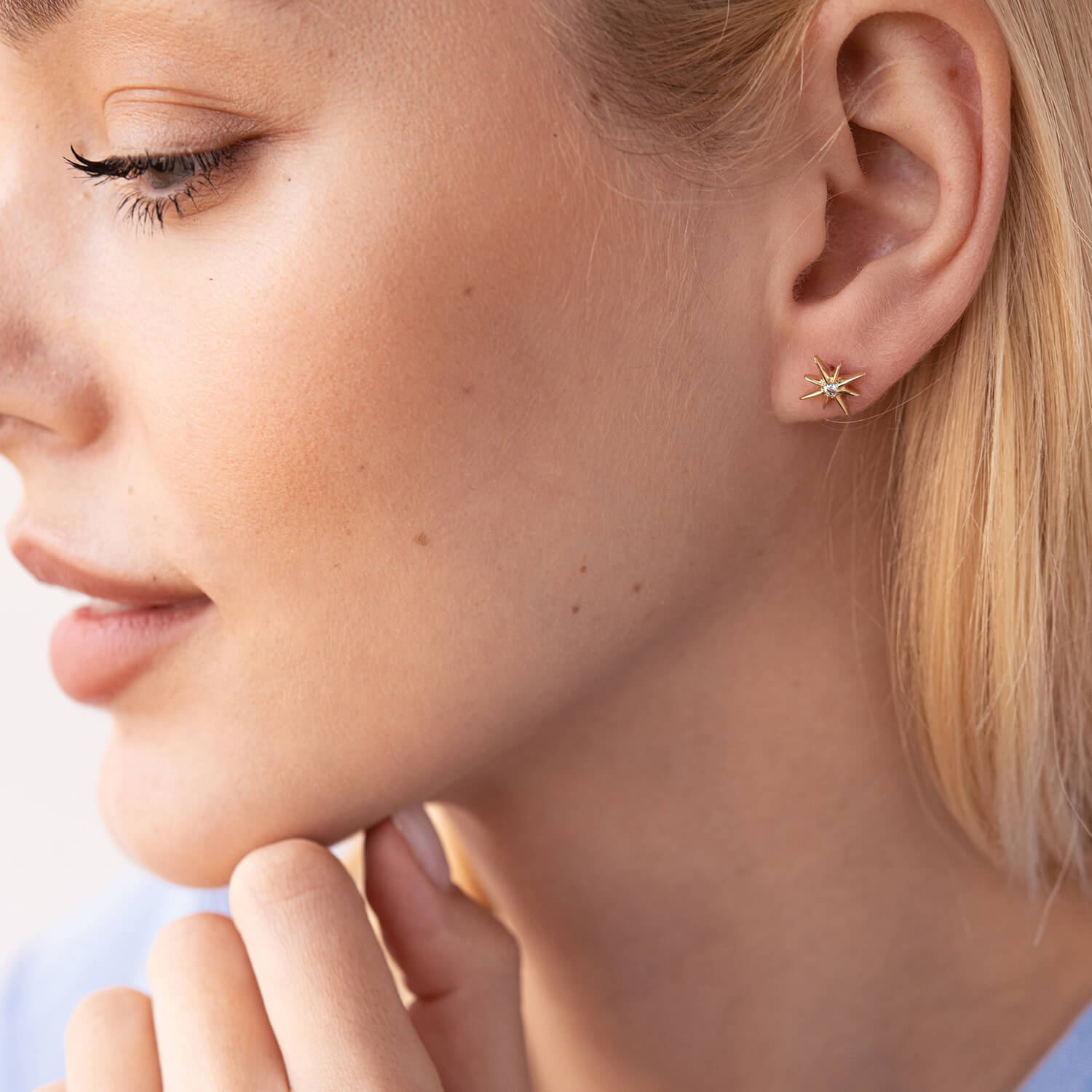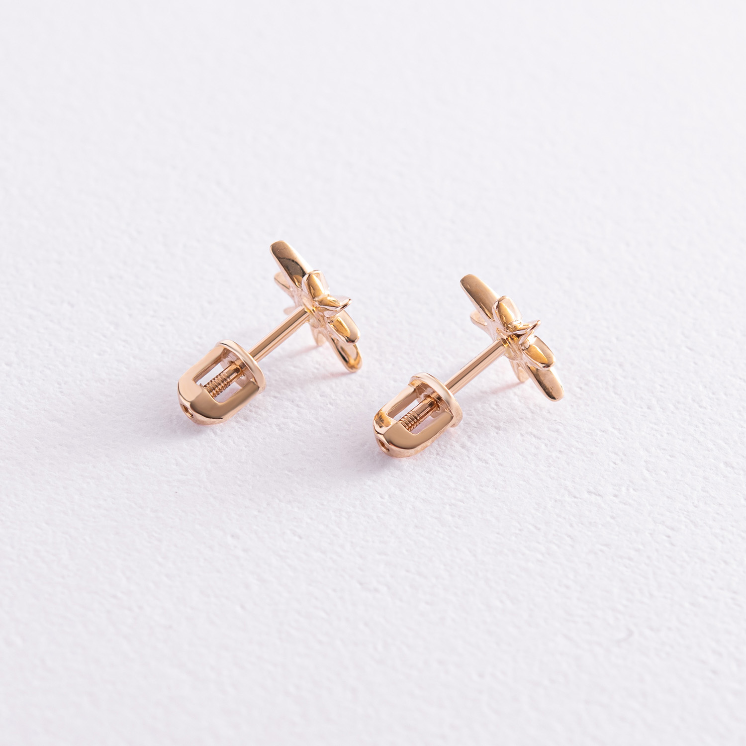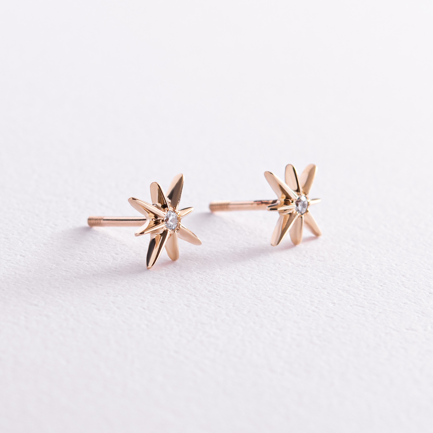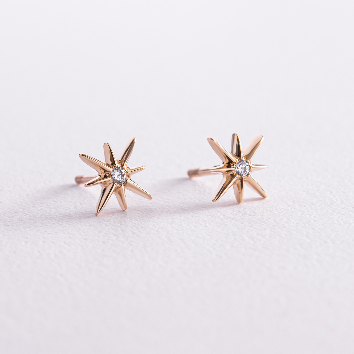 Золотые серьги - пусеты "Звезды метеориты" с фианитами с07854