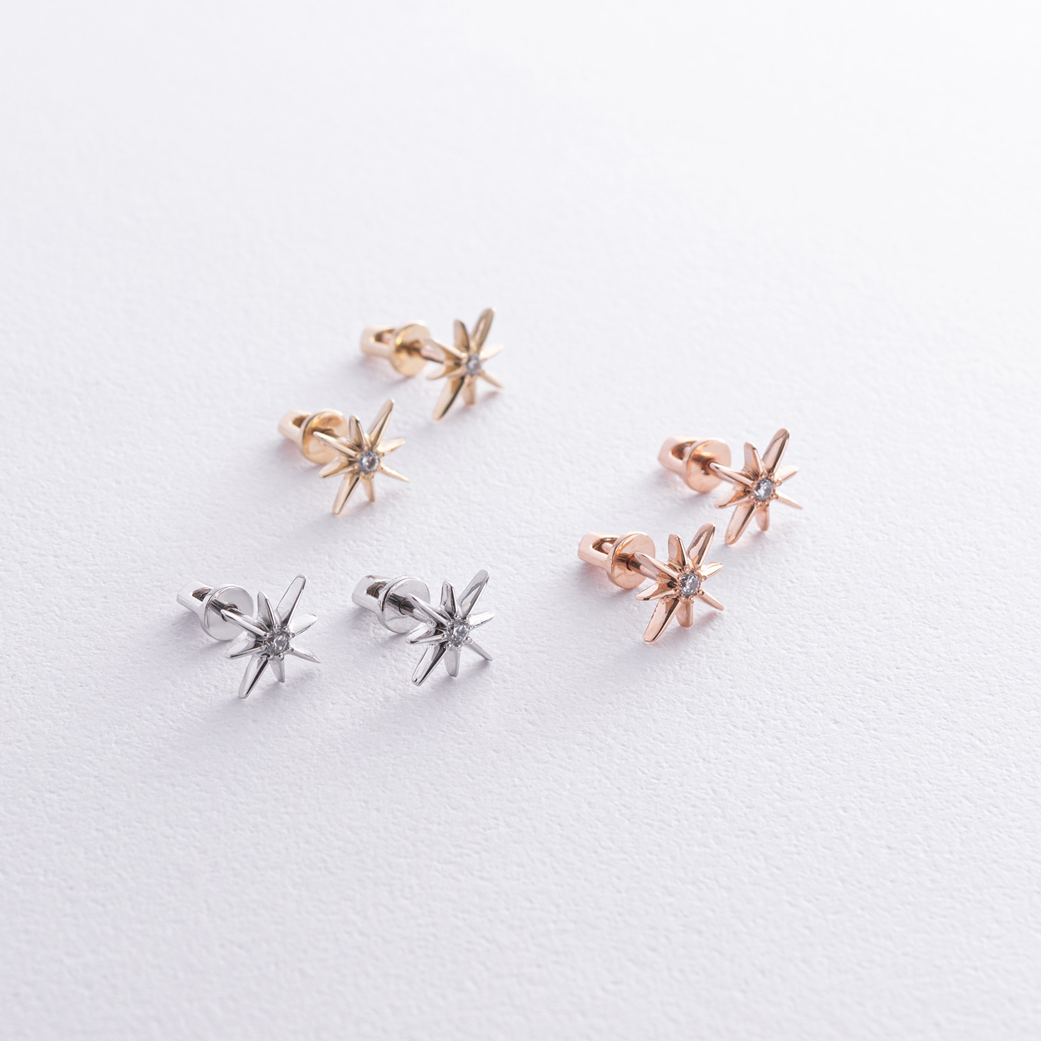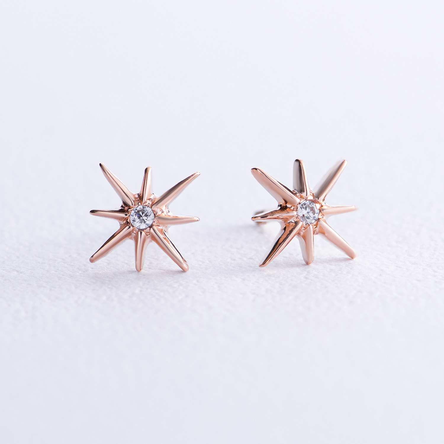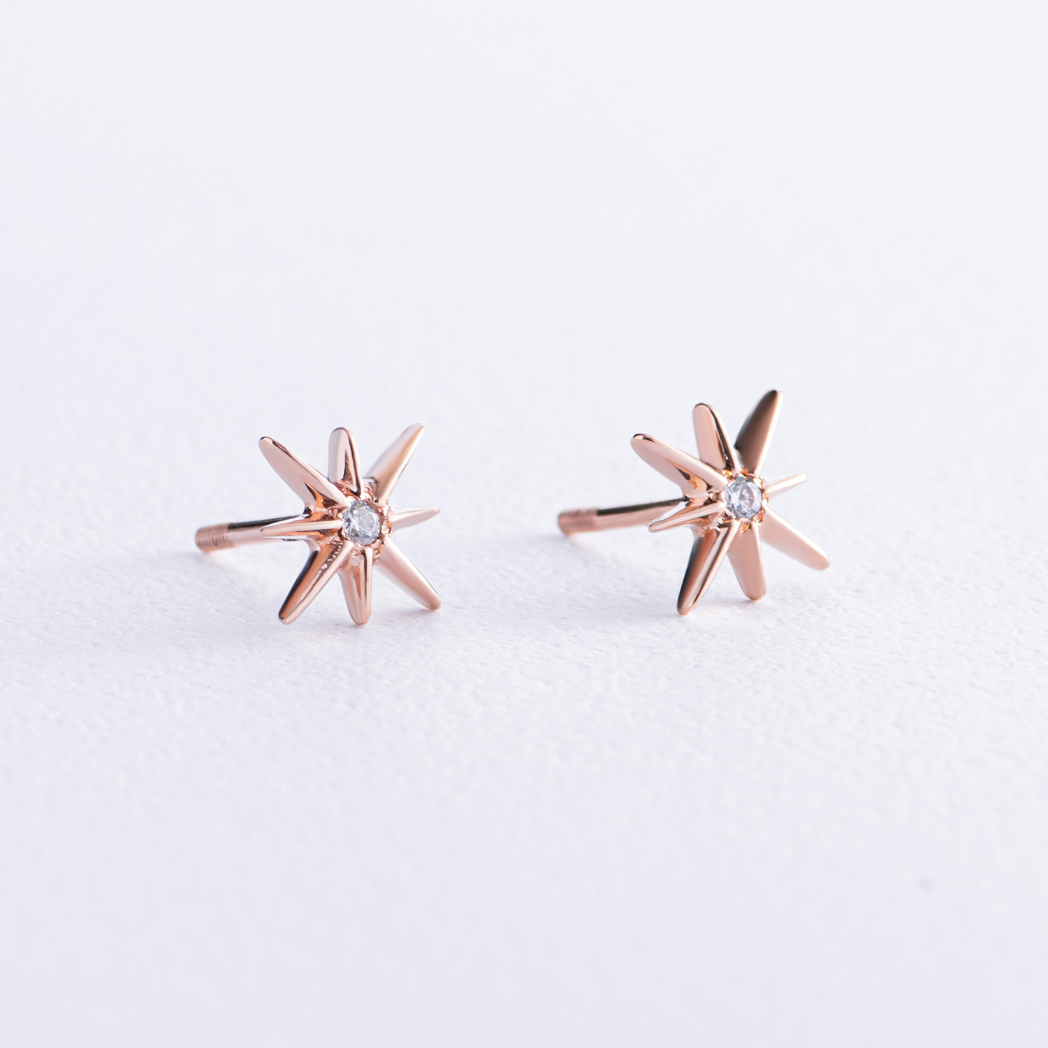 Золотые серьги - пусеты "Звезды метеориты" с фианитами с07906