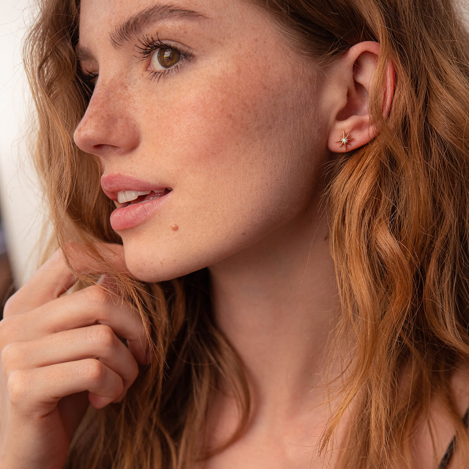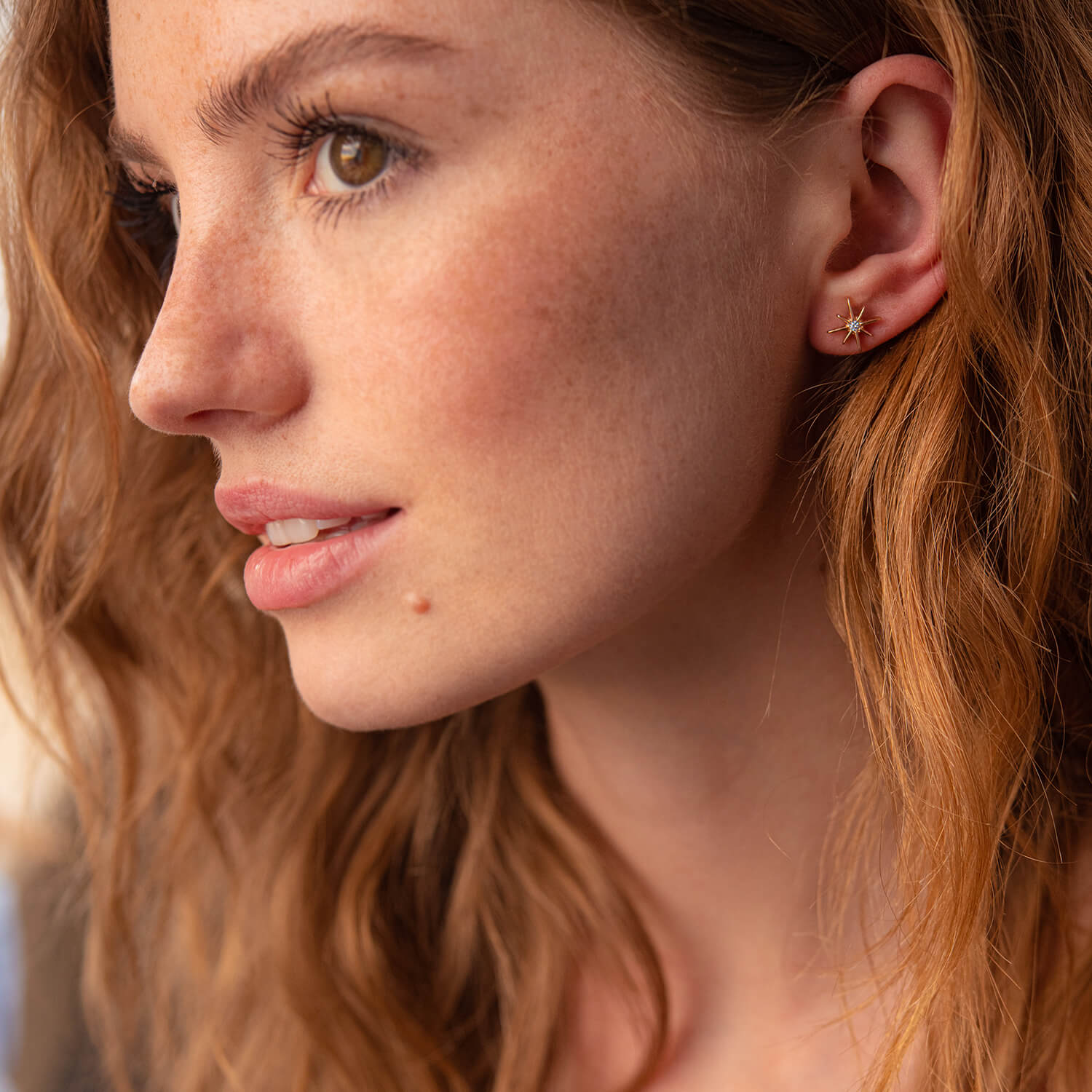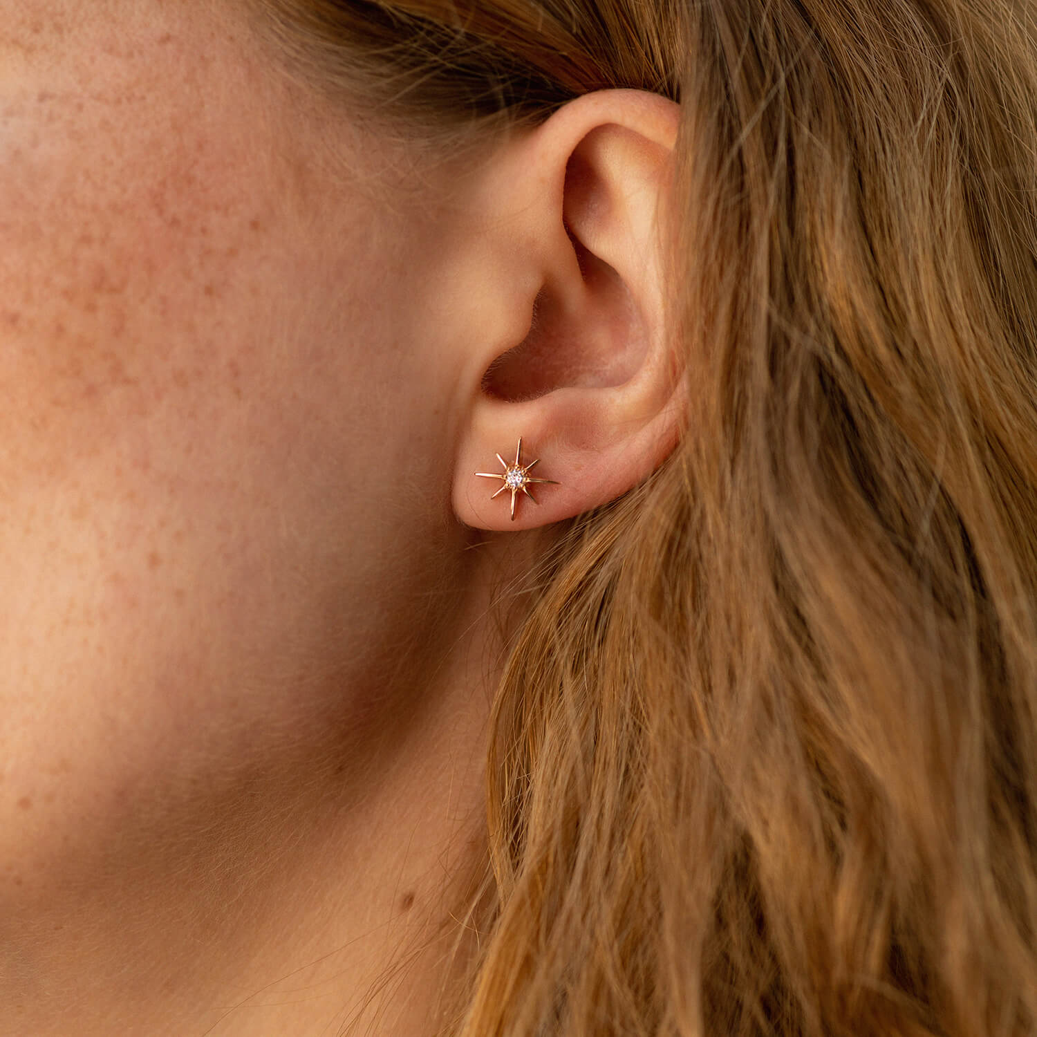 Золотые серьги - пусеты "Звезды метеориты" с фианитами с07906