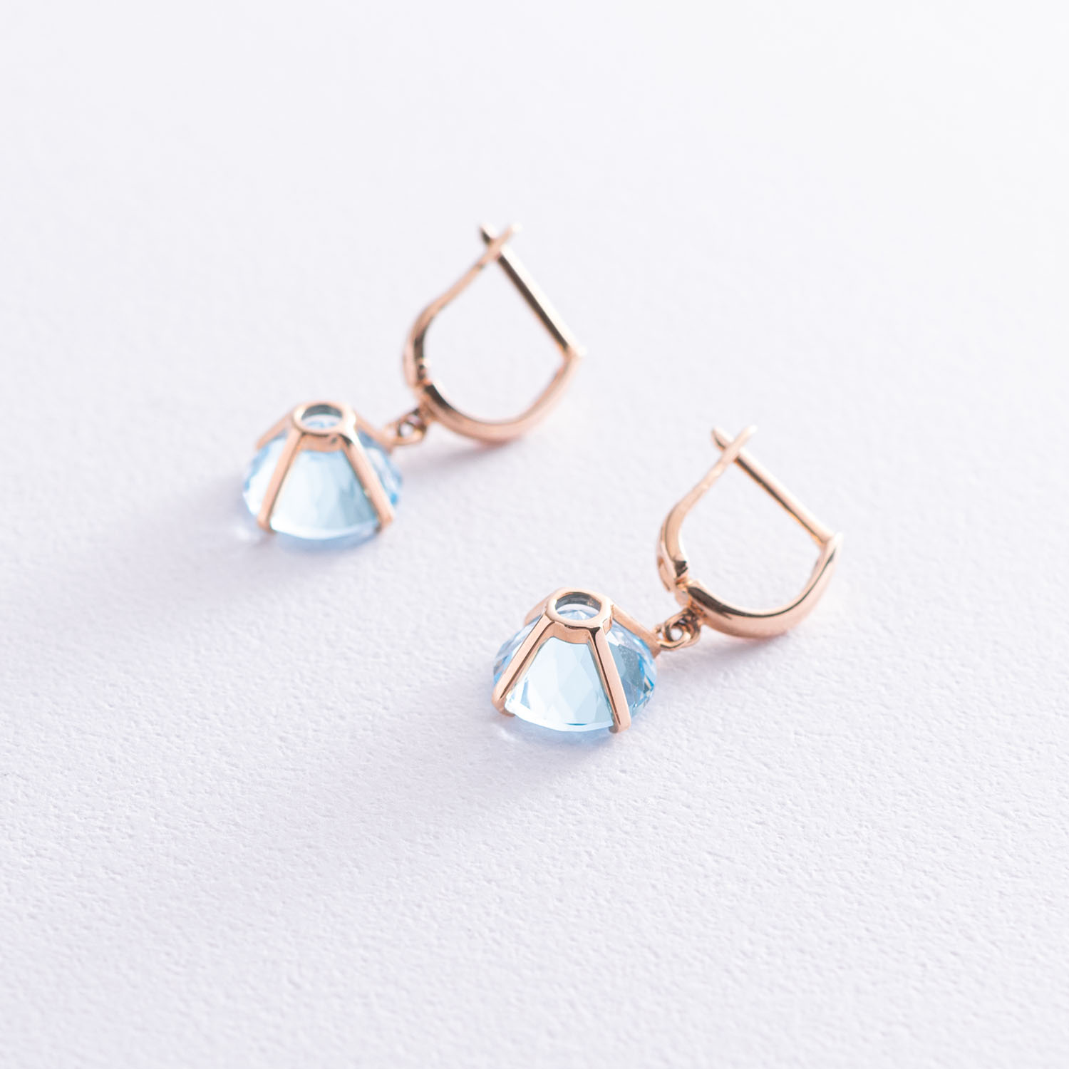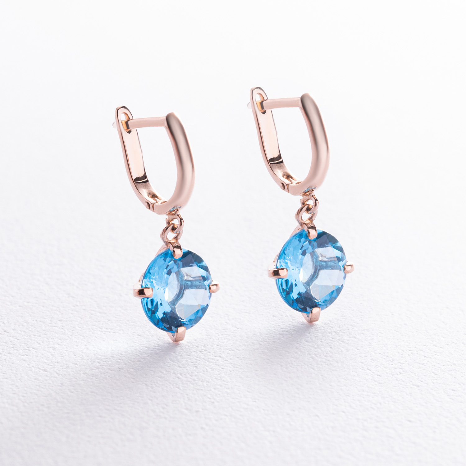 Золотые серьги "Влечение" с голубыми топазами с05295