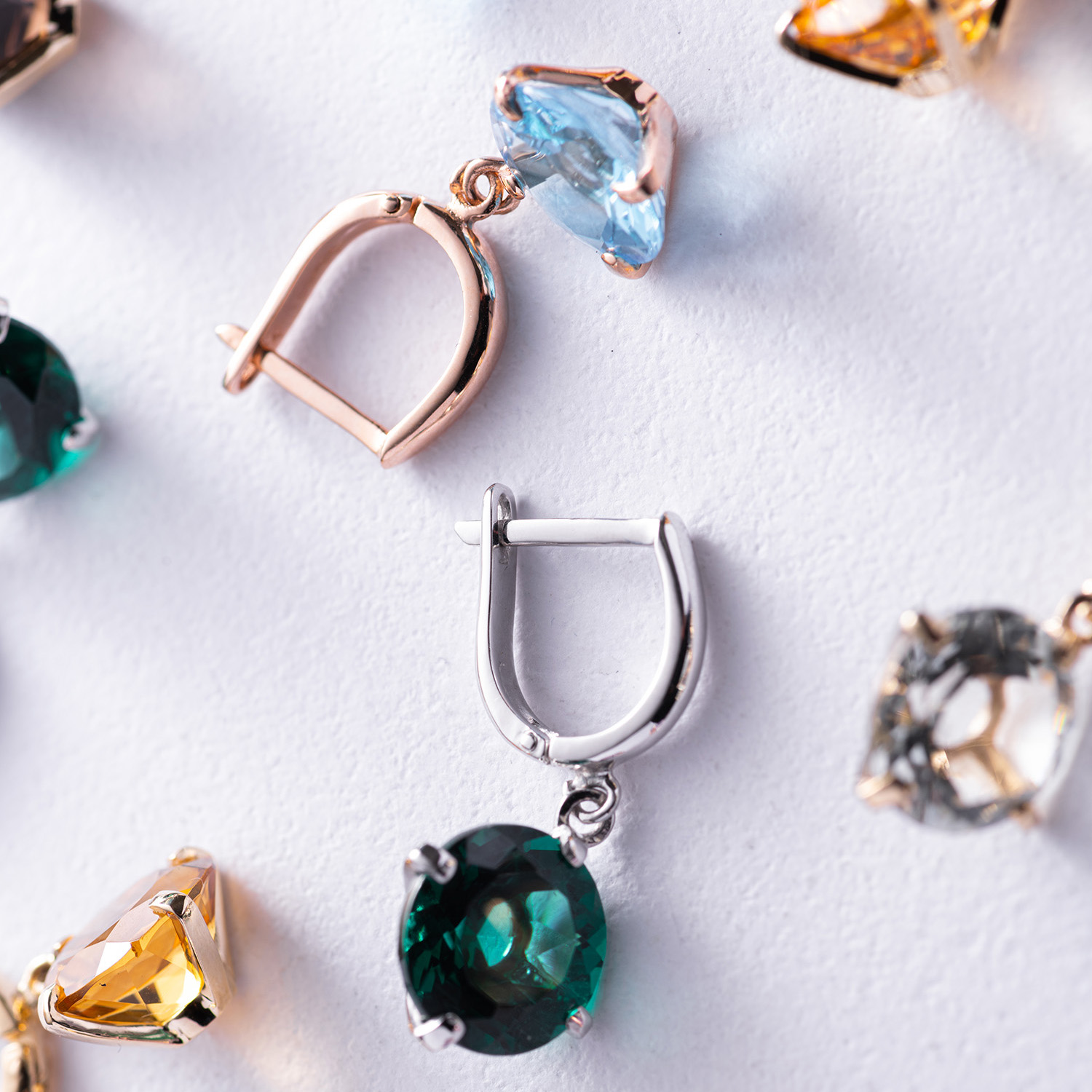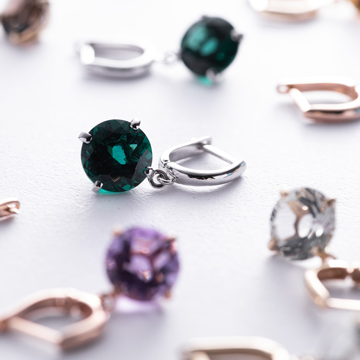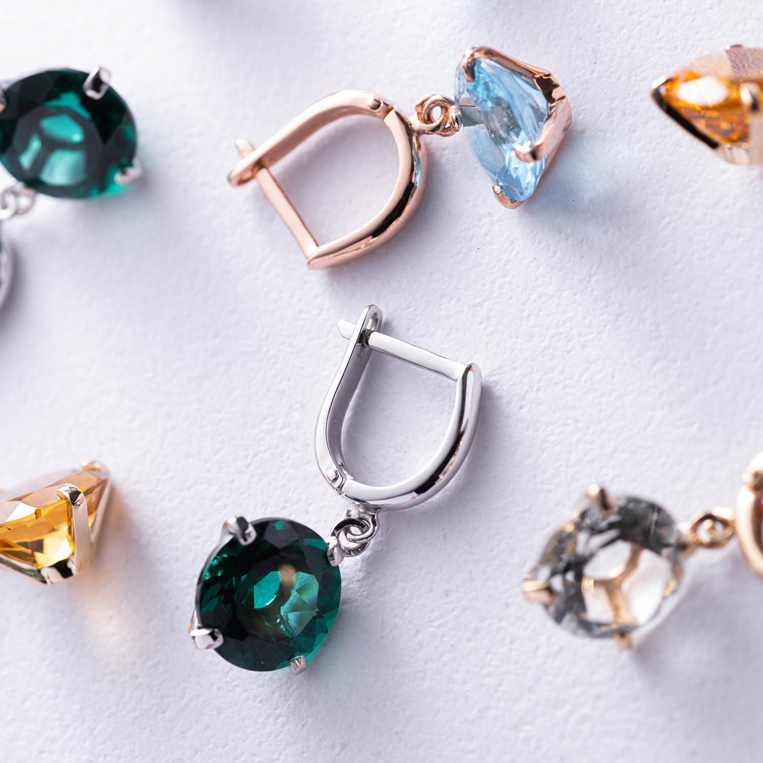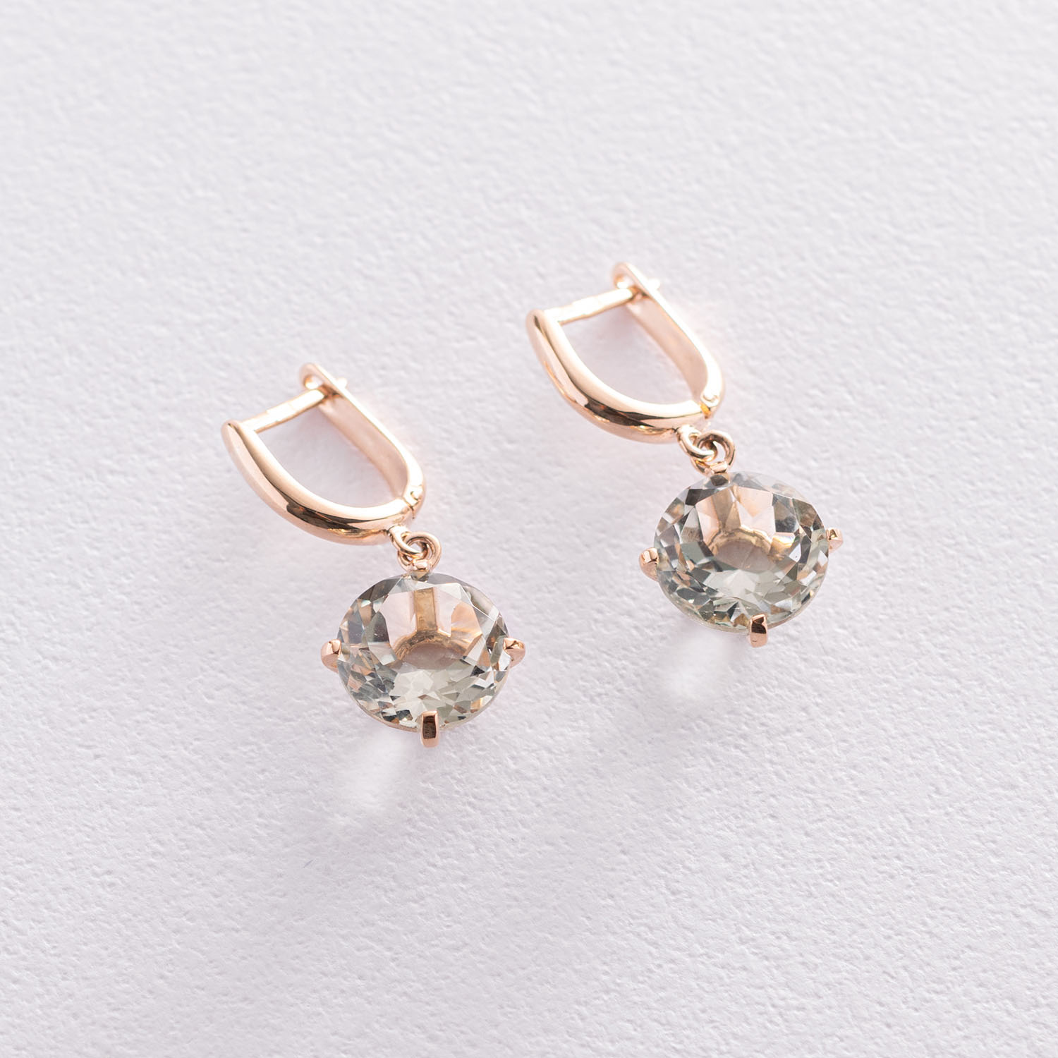 Золотые серьги "Влечение" с зеленым аметистом с05300