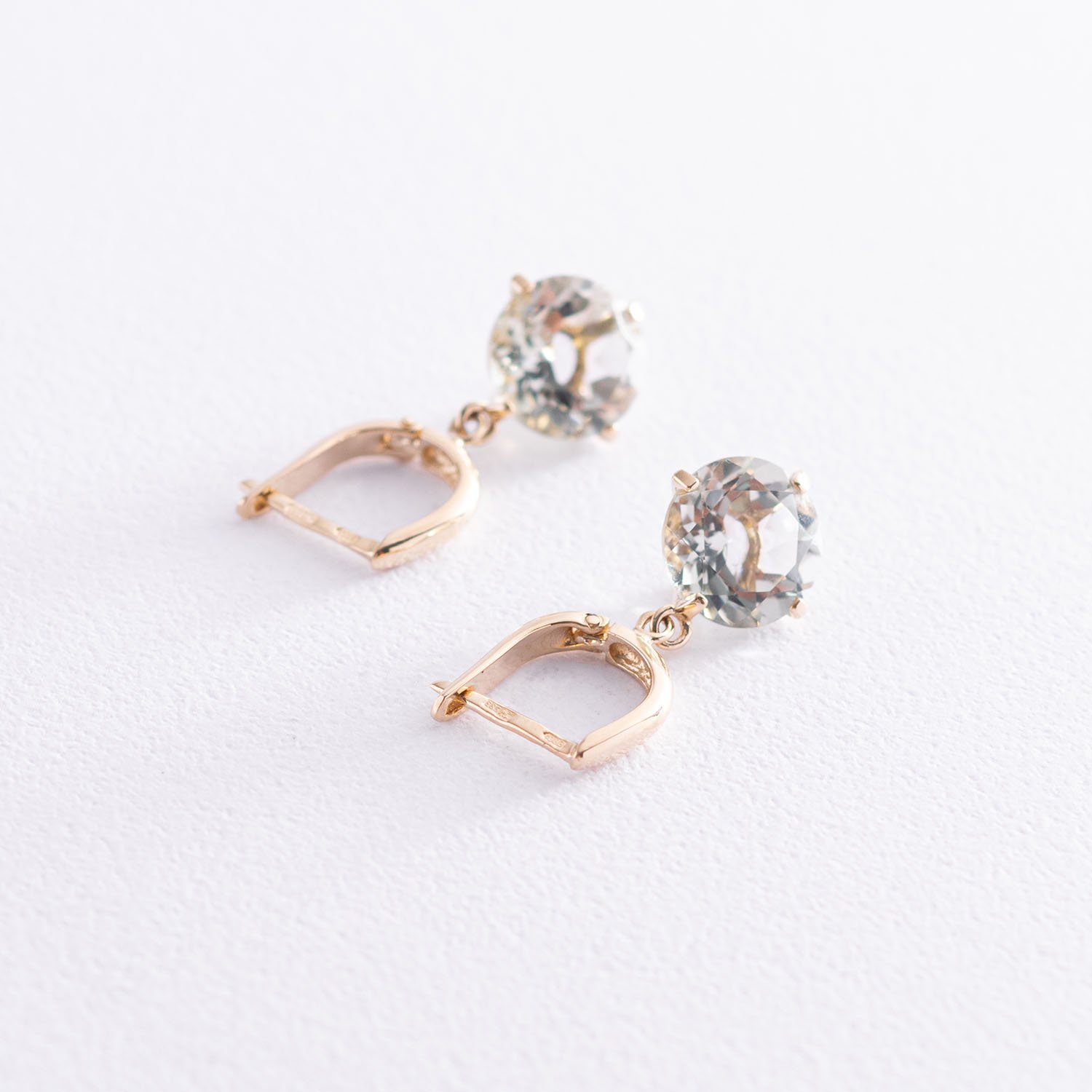 Золотые серьги "Влечение" с зеленым аметистом с08528