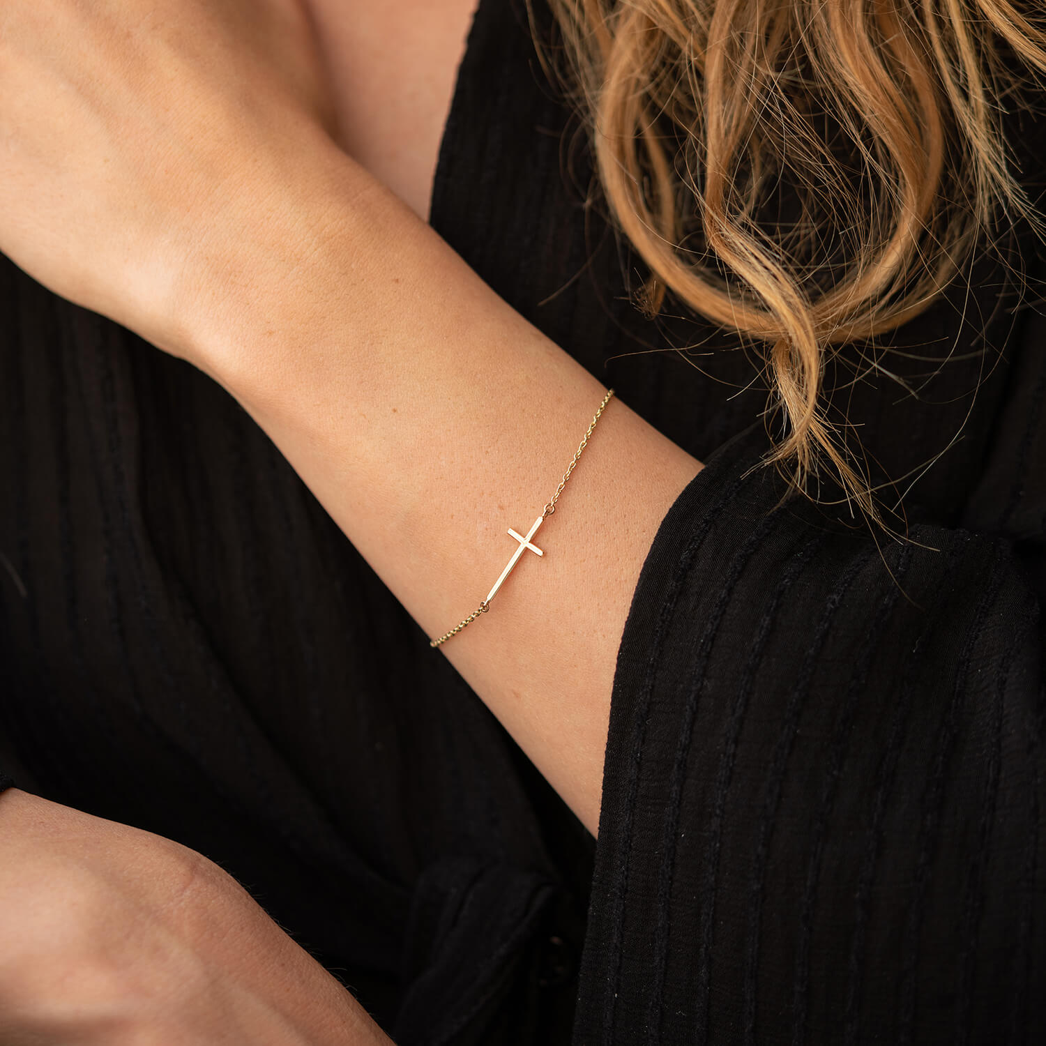 Браслет "Хрестик" у жовтому золоті з2081ж