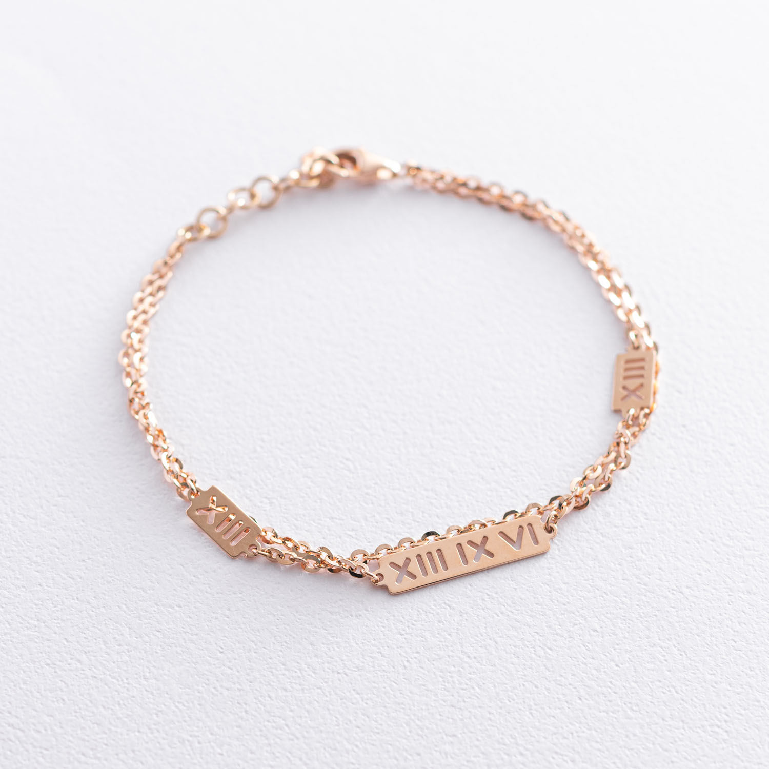Браслет "Римські цифри" в червоному золоті б04540