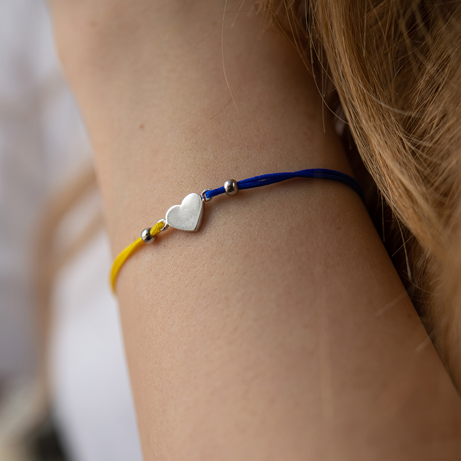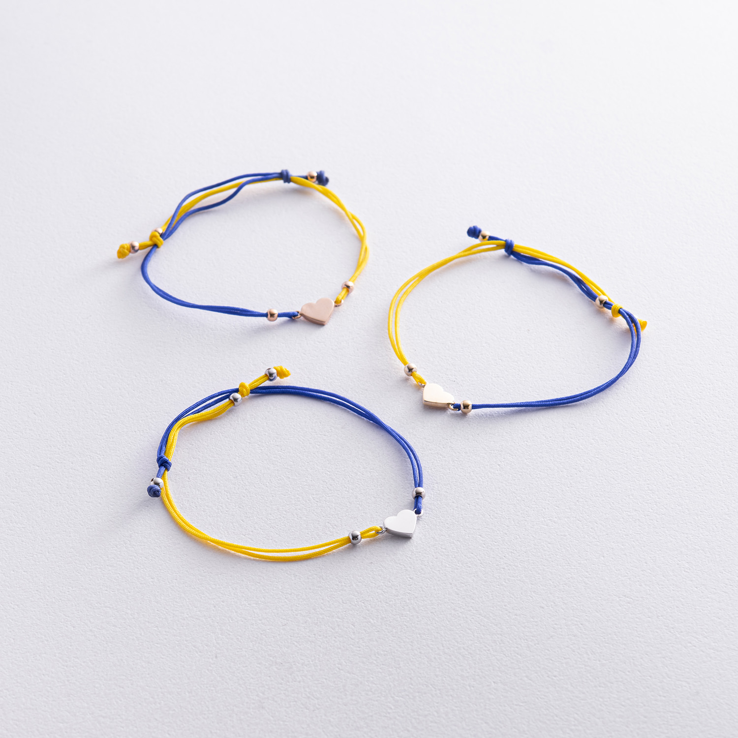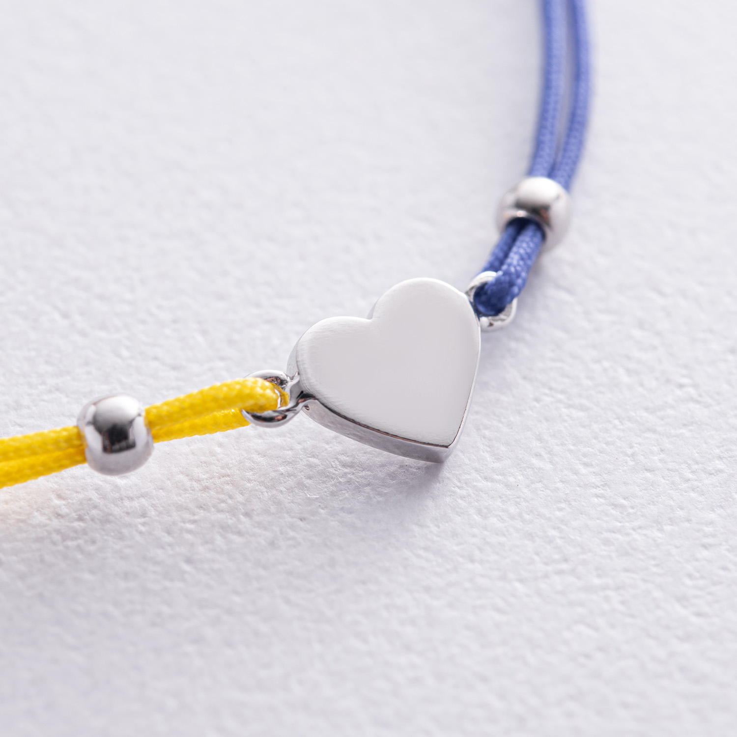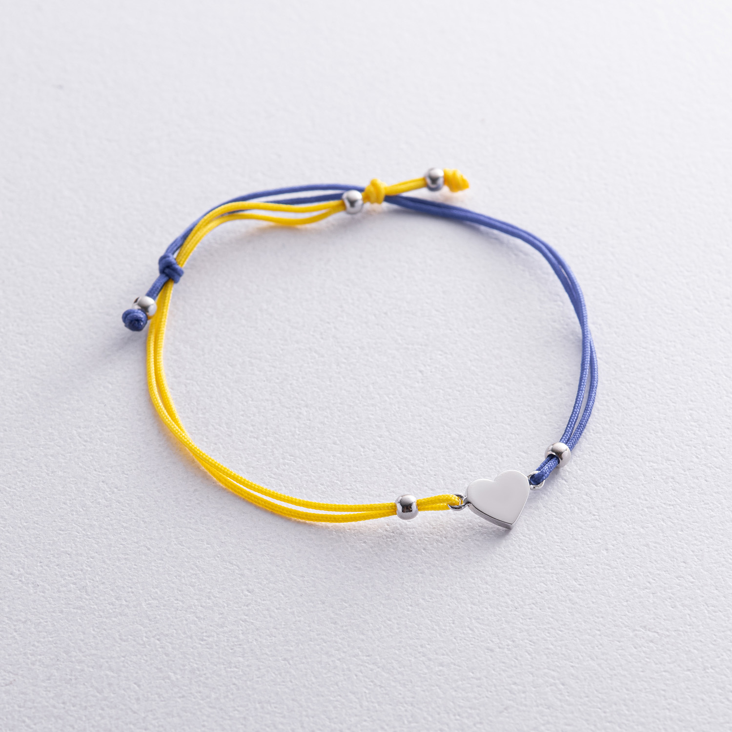 Браслет "Українське серце" в білому золоті (синя та жовта нитка) б05276