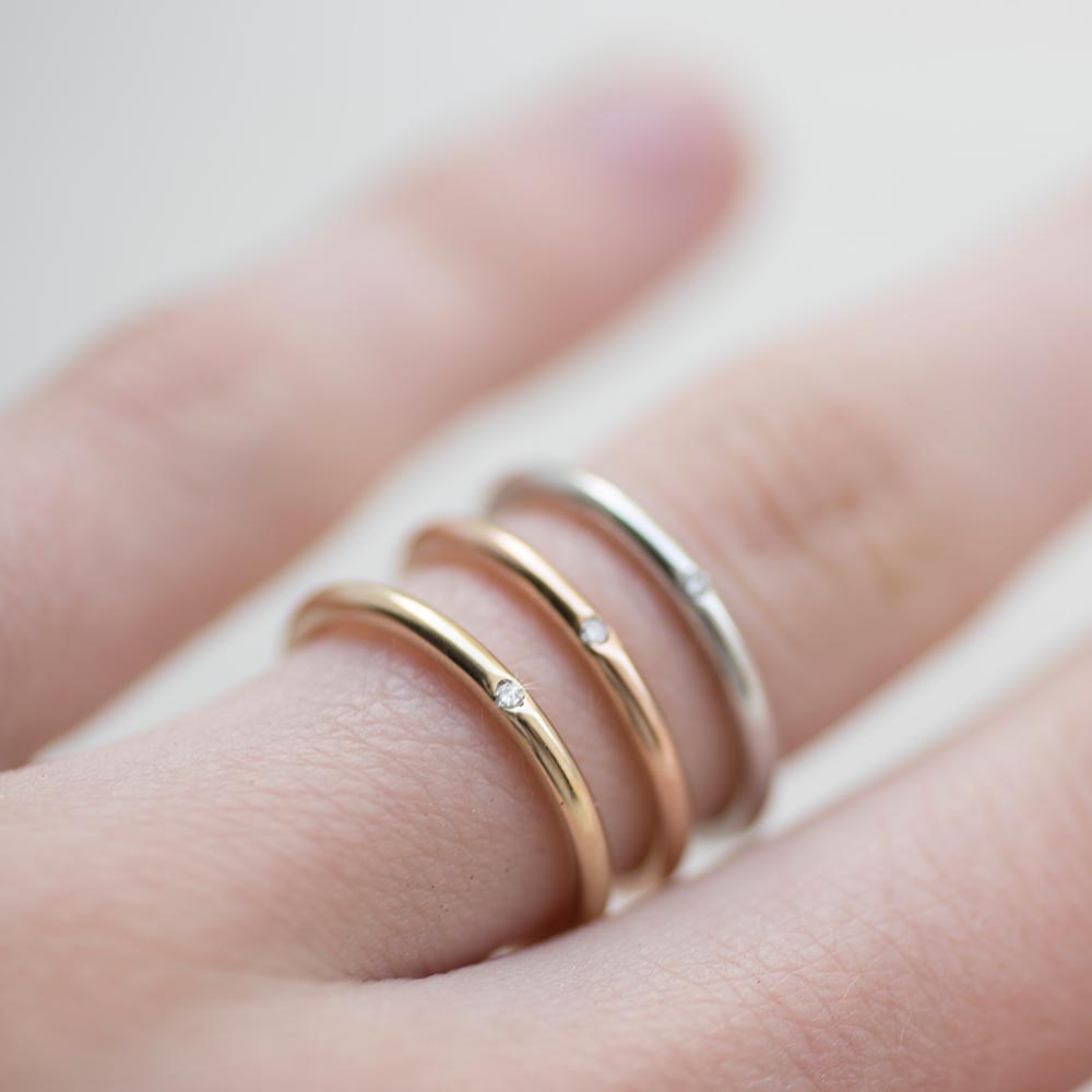 Каблучка Мінімалізм в червоному золоті (з діамантом) обрб0004