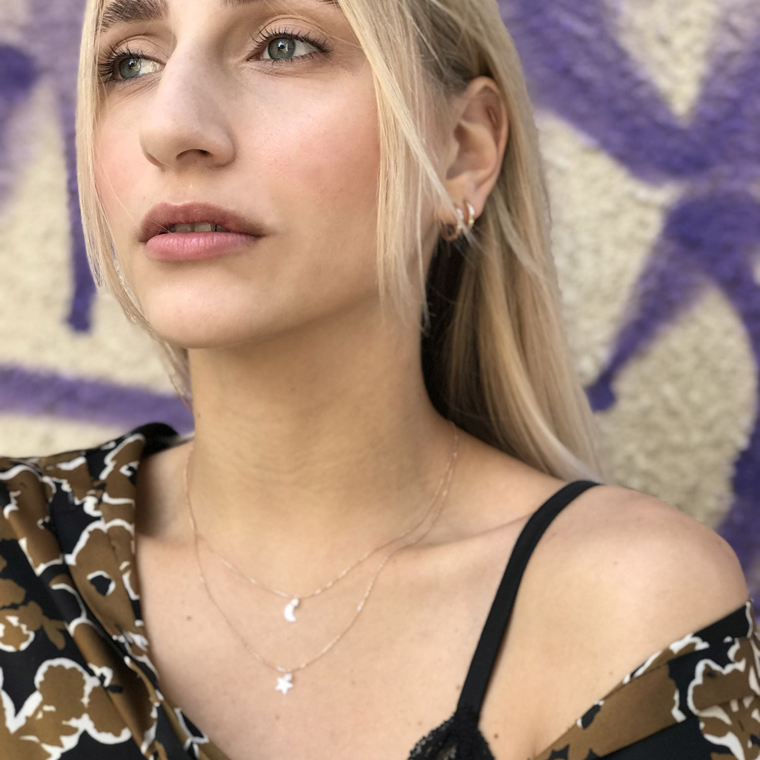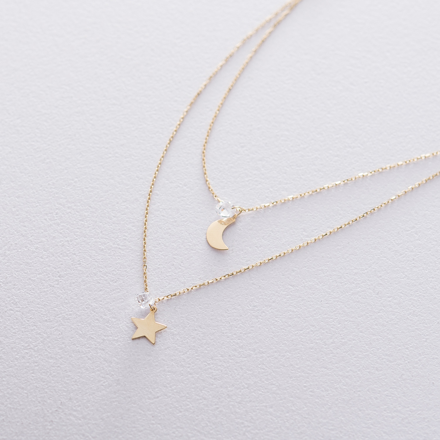 Подвійне кольє "Місяць і зірка" з жовтого золота з фіанітами кол01540