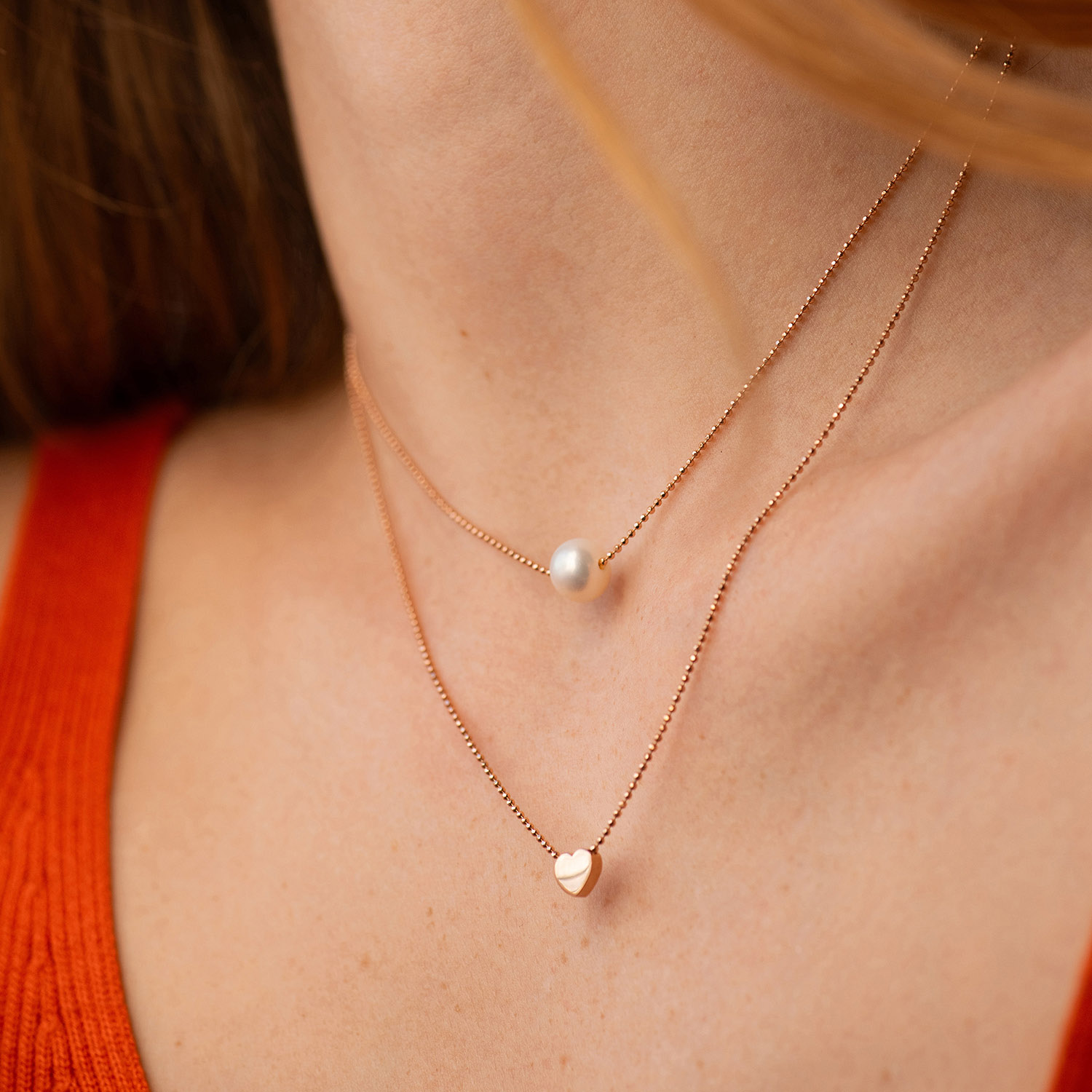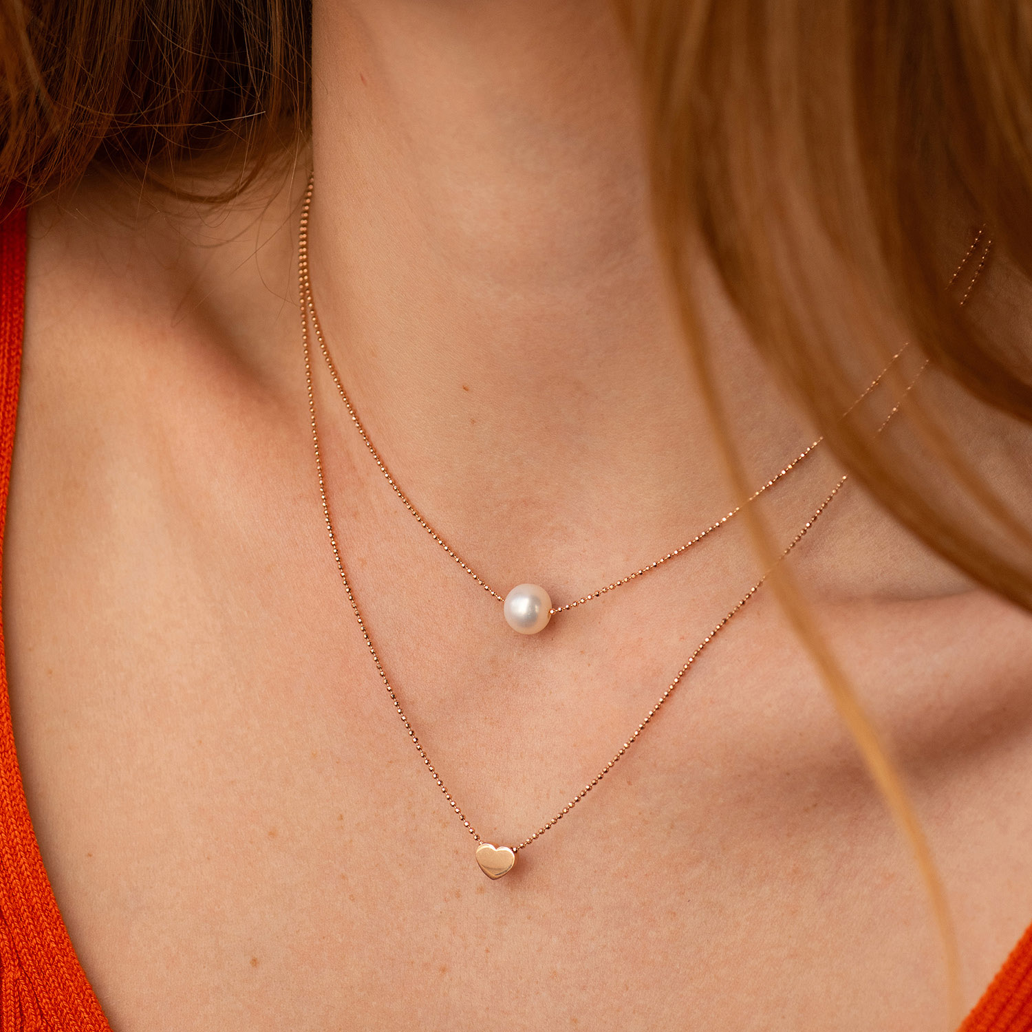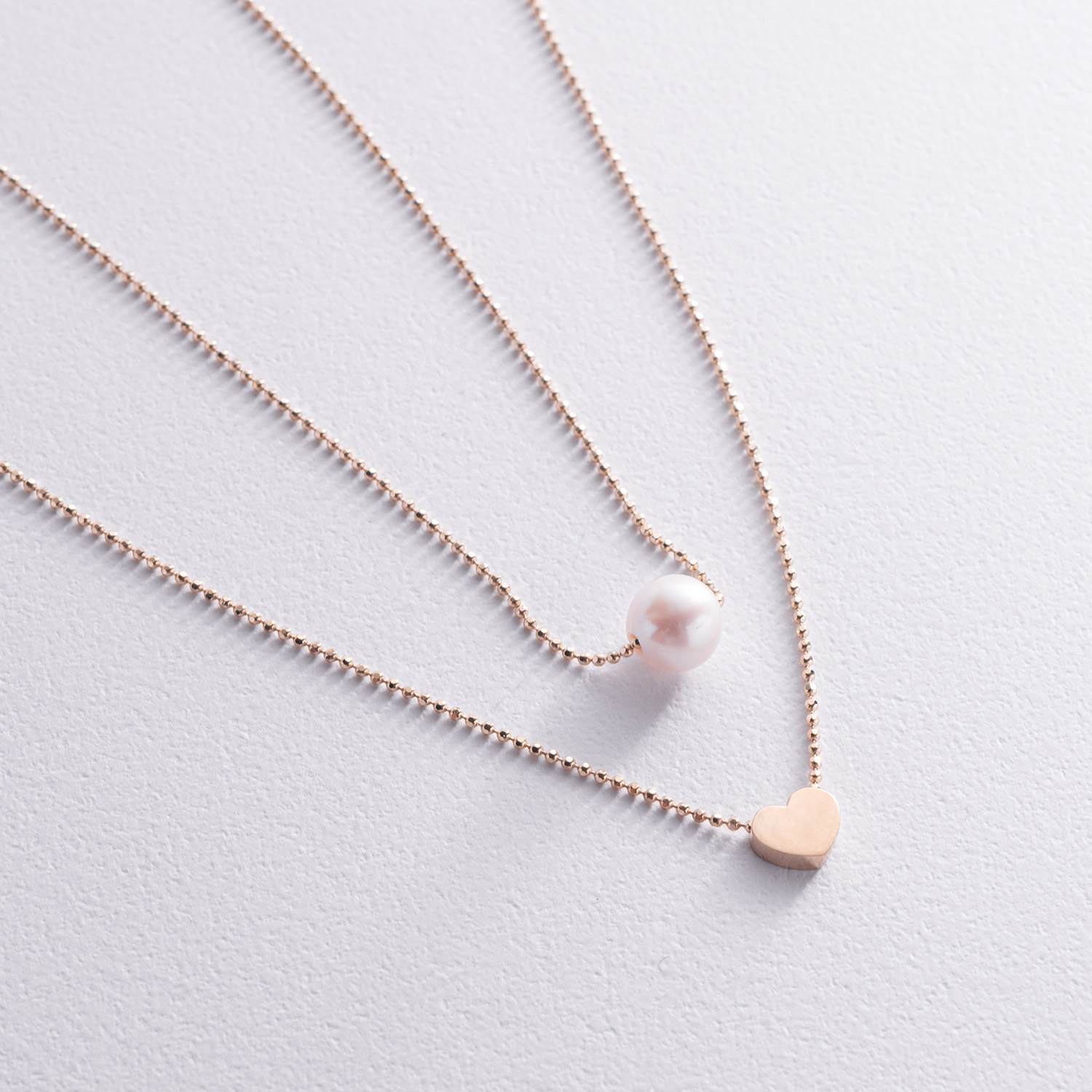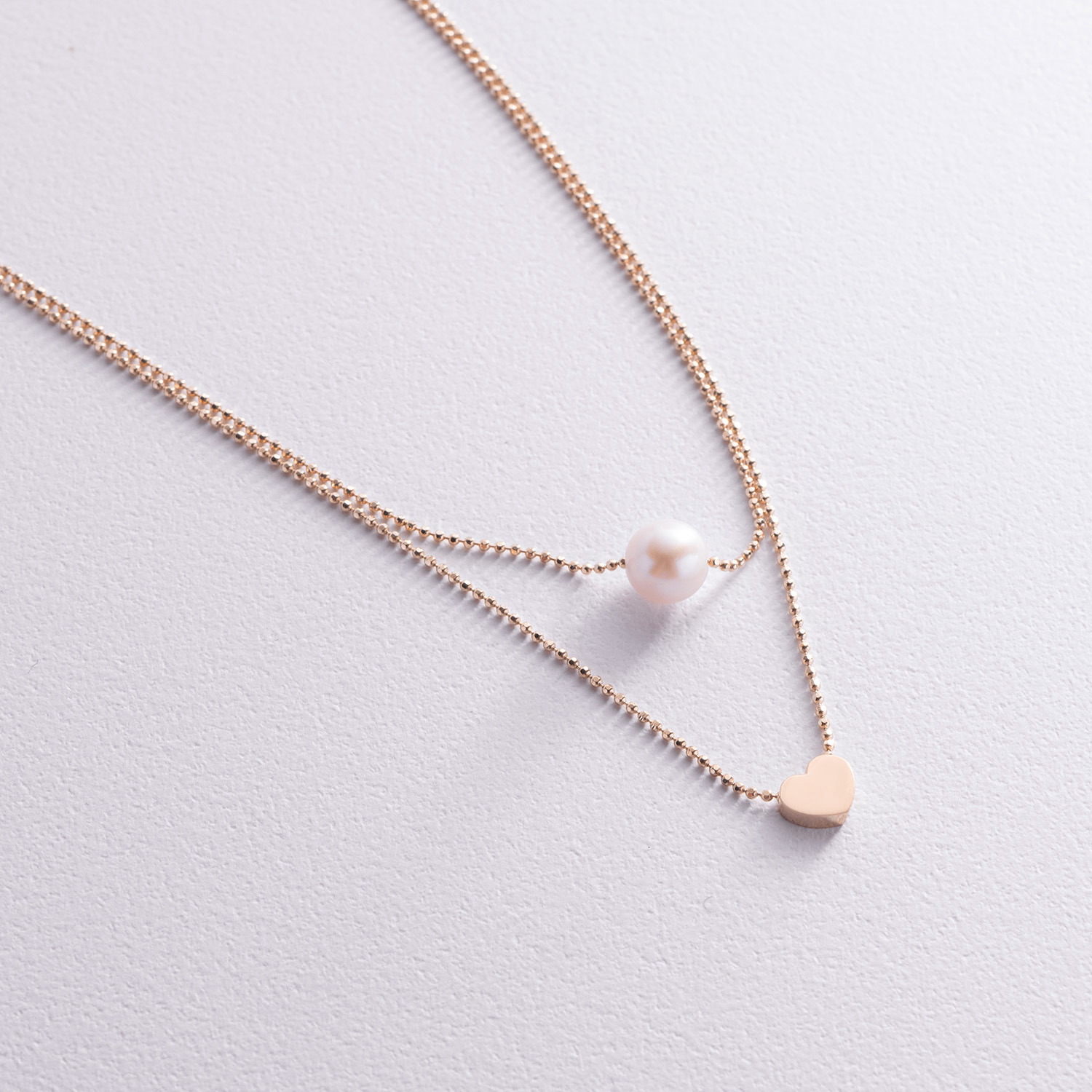 Подвійне кольє "Сердечко і перлина" (червоне золото) кол02547