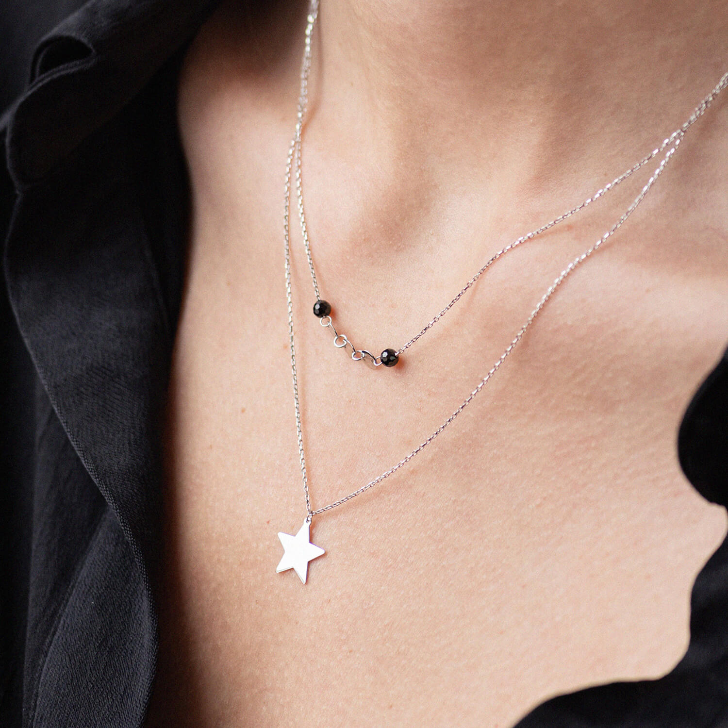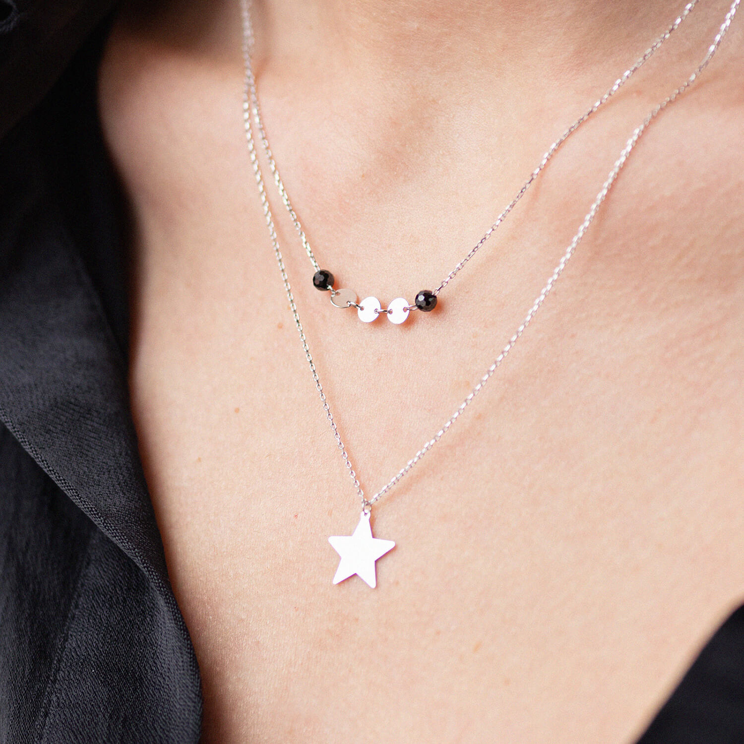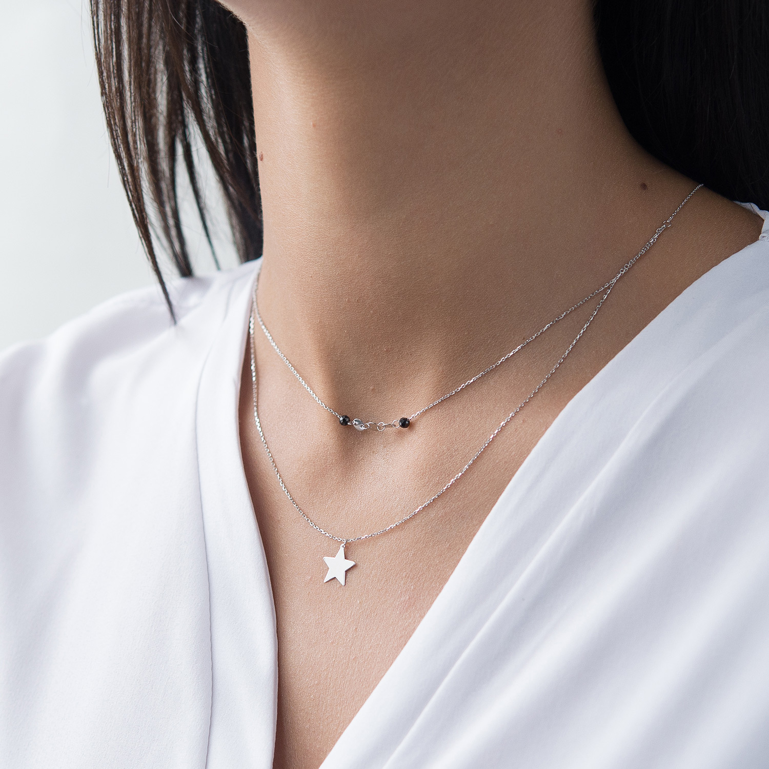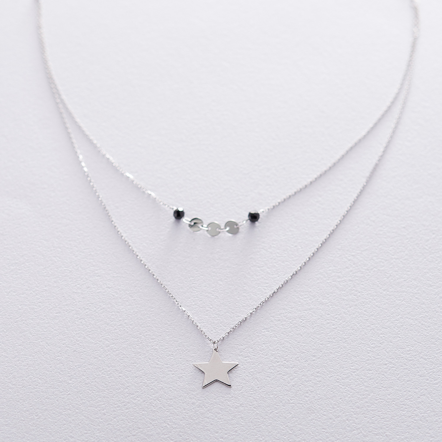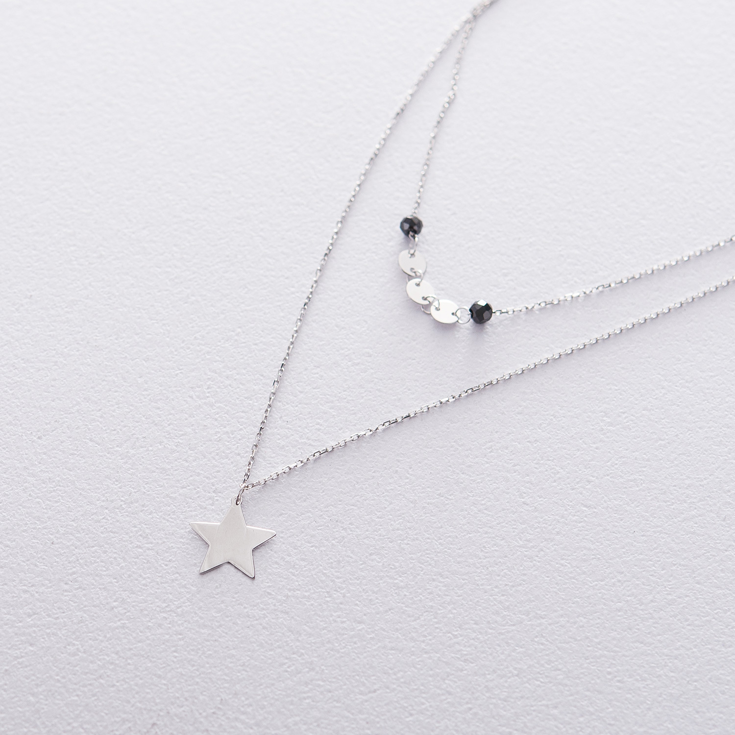 Подвійне кольє "Зірочка" з білого золота з чорними фіанітами кол01537