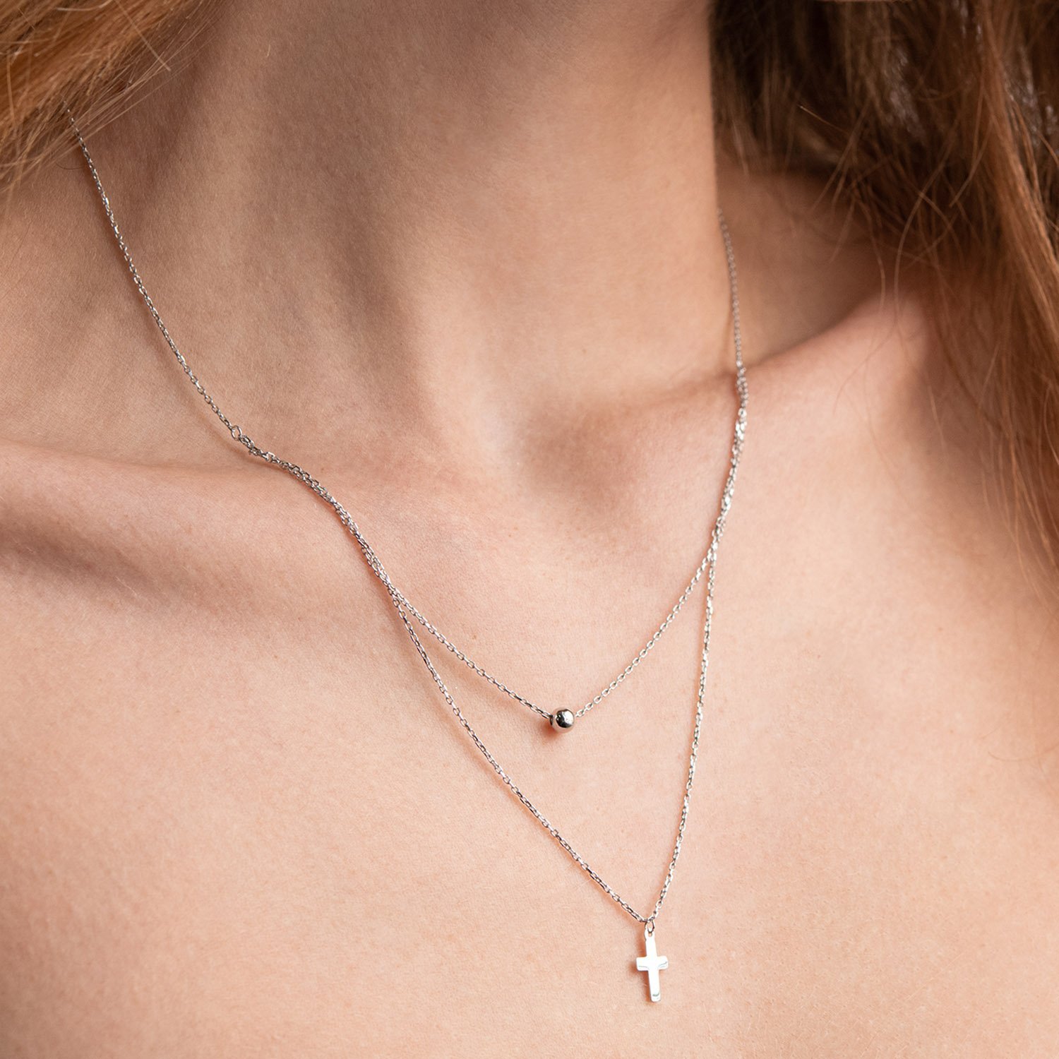 Подвійне золоте кольє "Куля і хрестик" кол01923