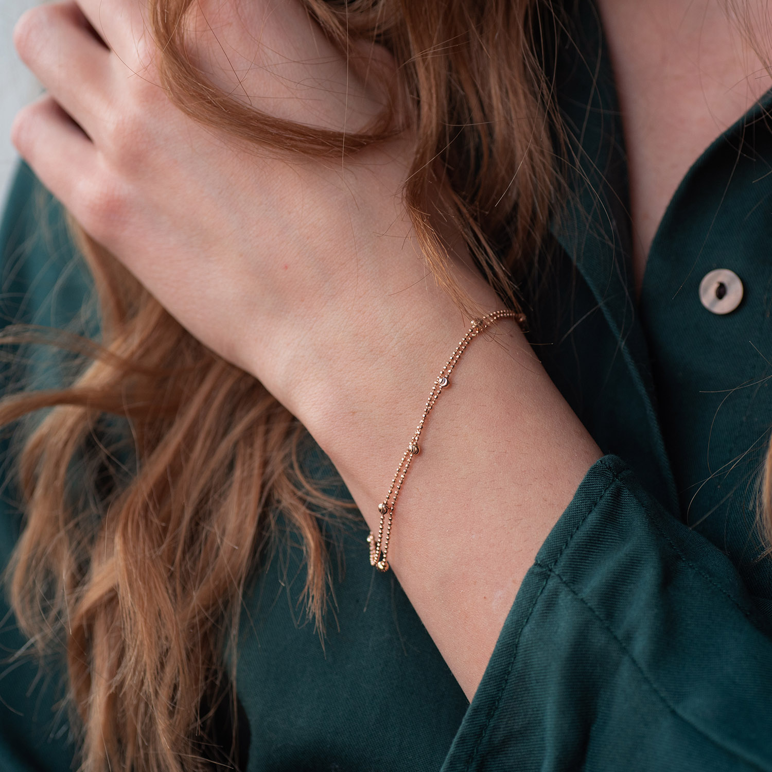 Подвійний браслет "Кульки" в червоному золоті б04699