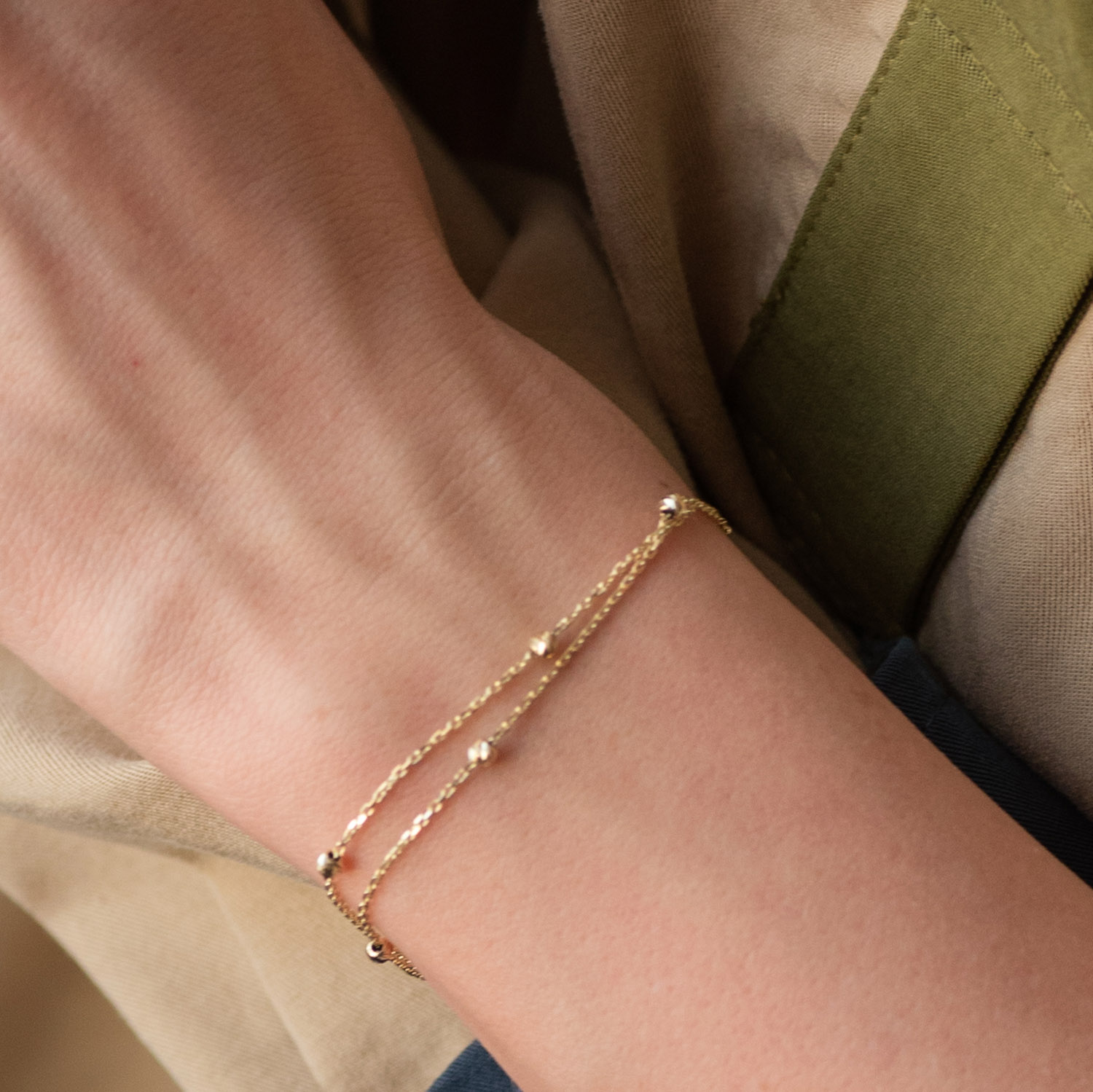 Подвійний браслет "Кульки" в жовтому золоті б04706