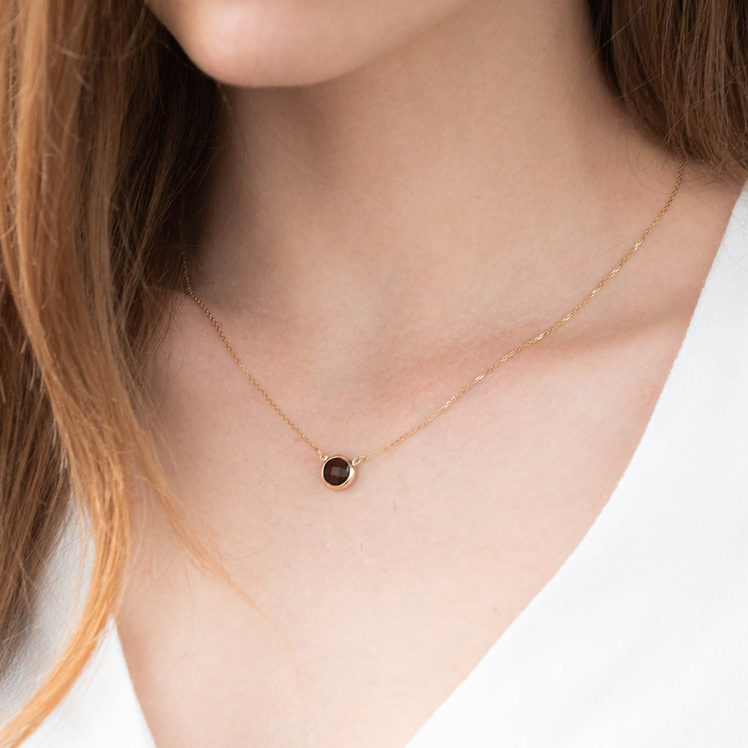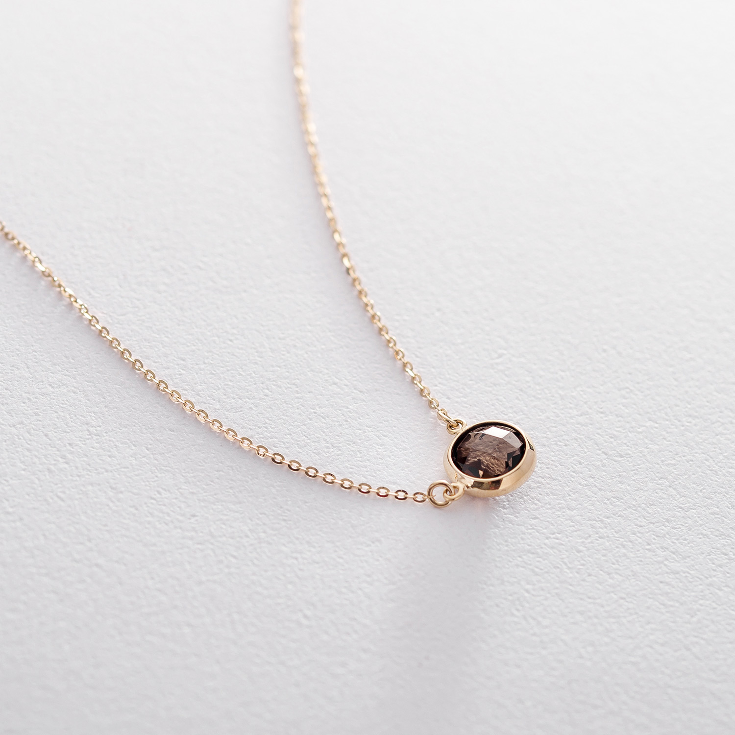 Кольє з димчастим кварцом в жовтому золоті кол01341