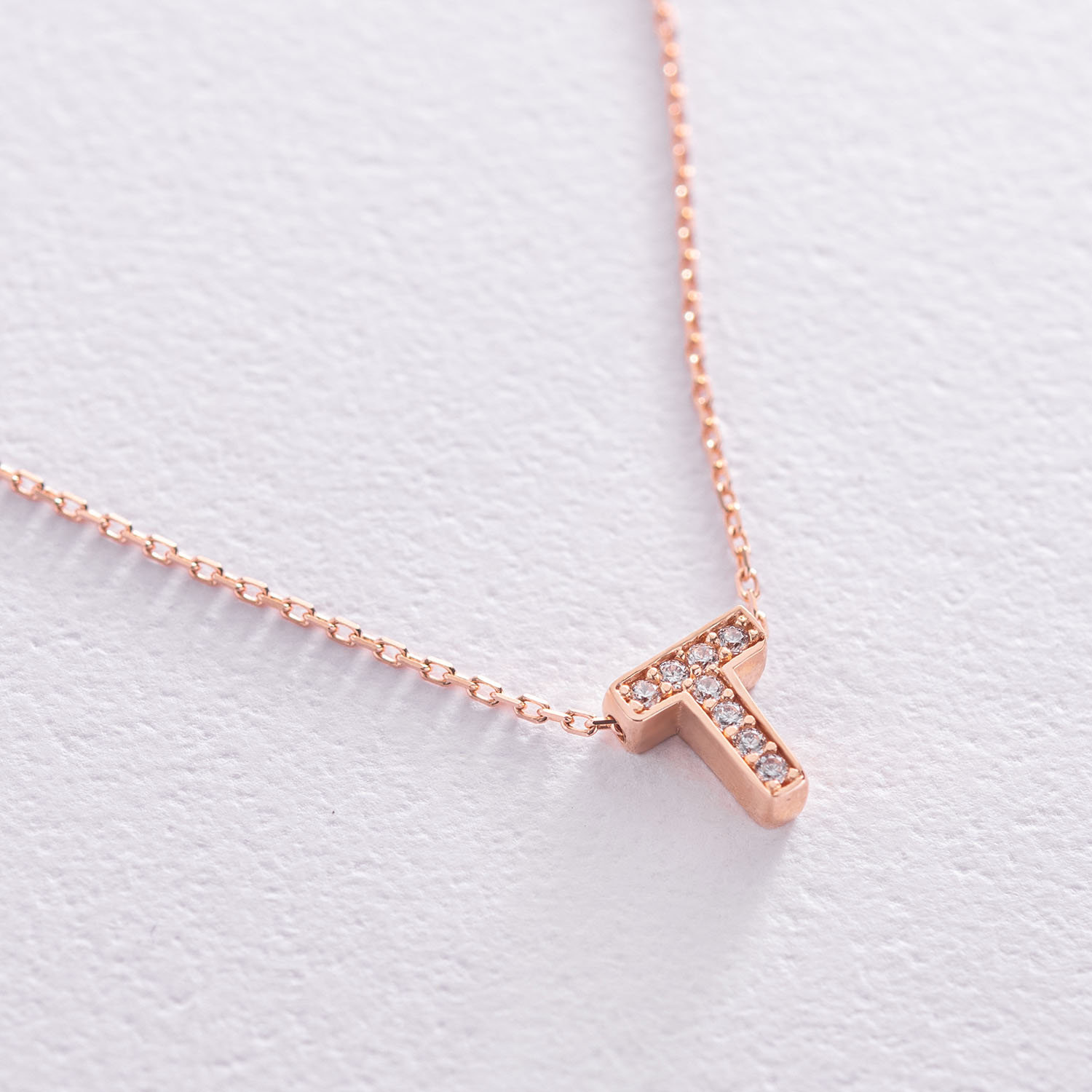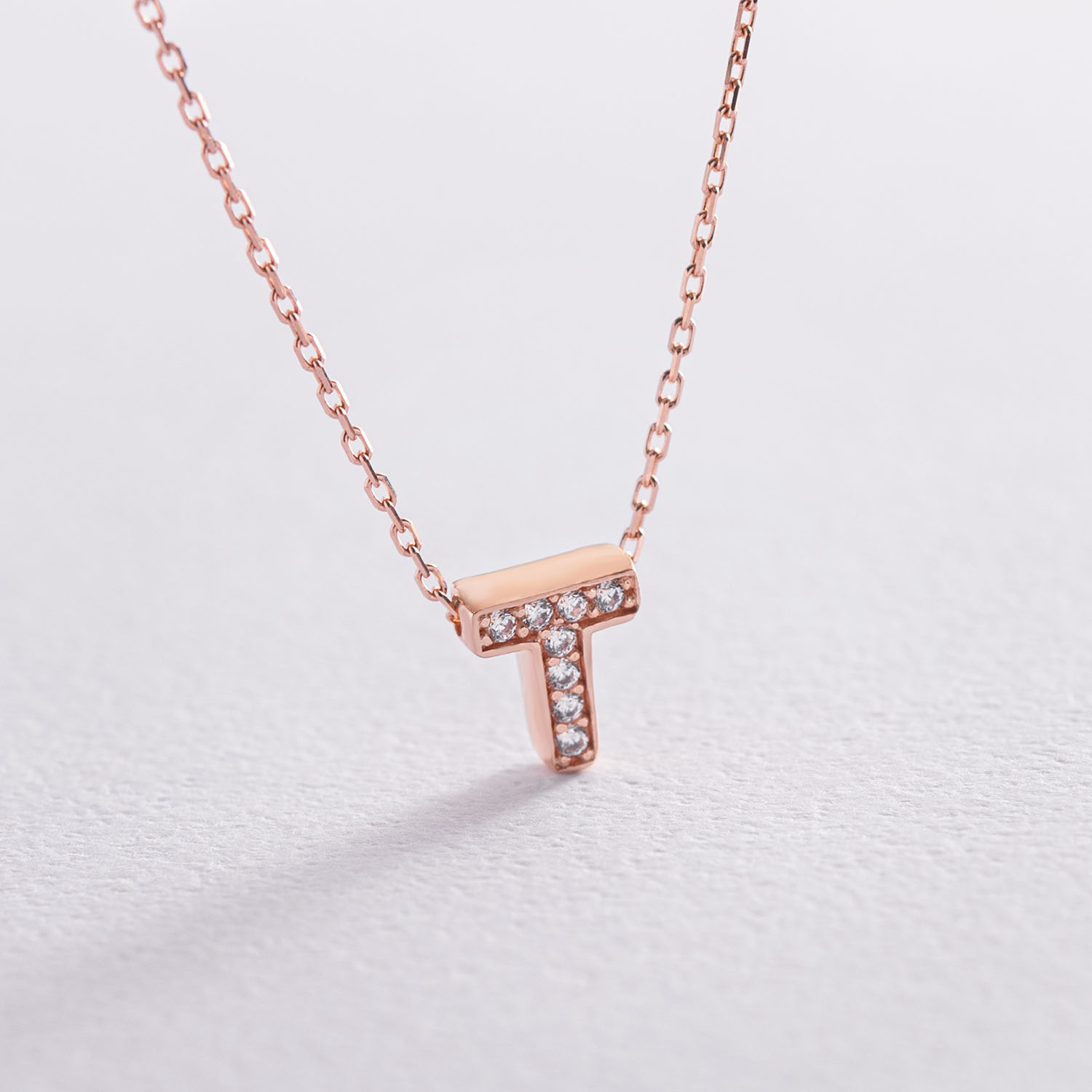 Кольє з буквою "Т" в червоному золоті (фіаніти) кол01255Т