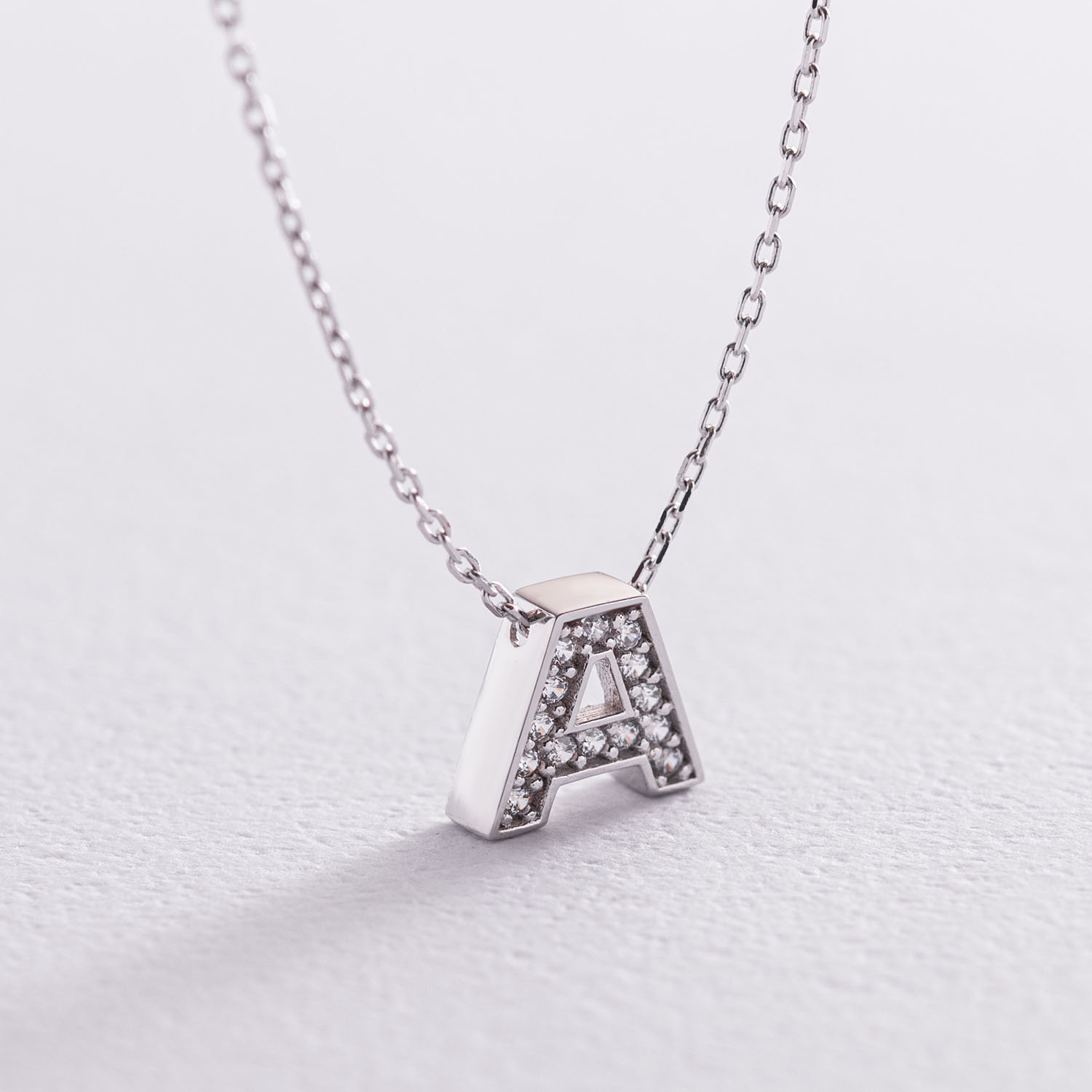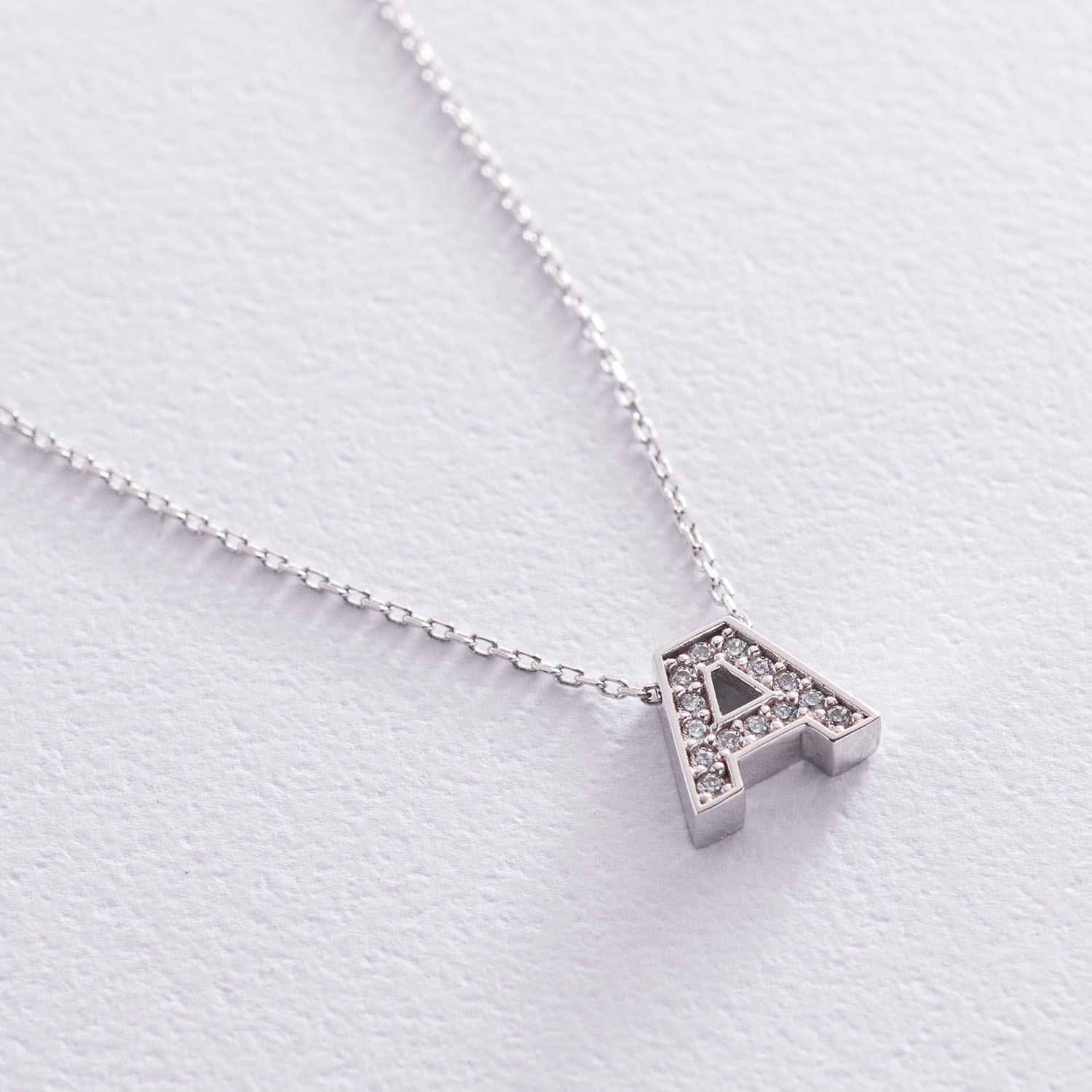 Кольє з буквою "А" в білому золоті (фіаніти) кол01329А