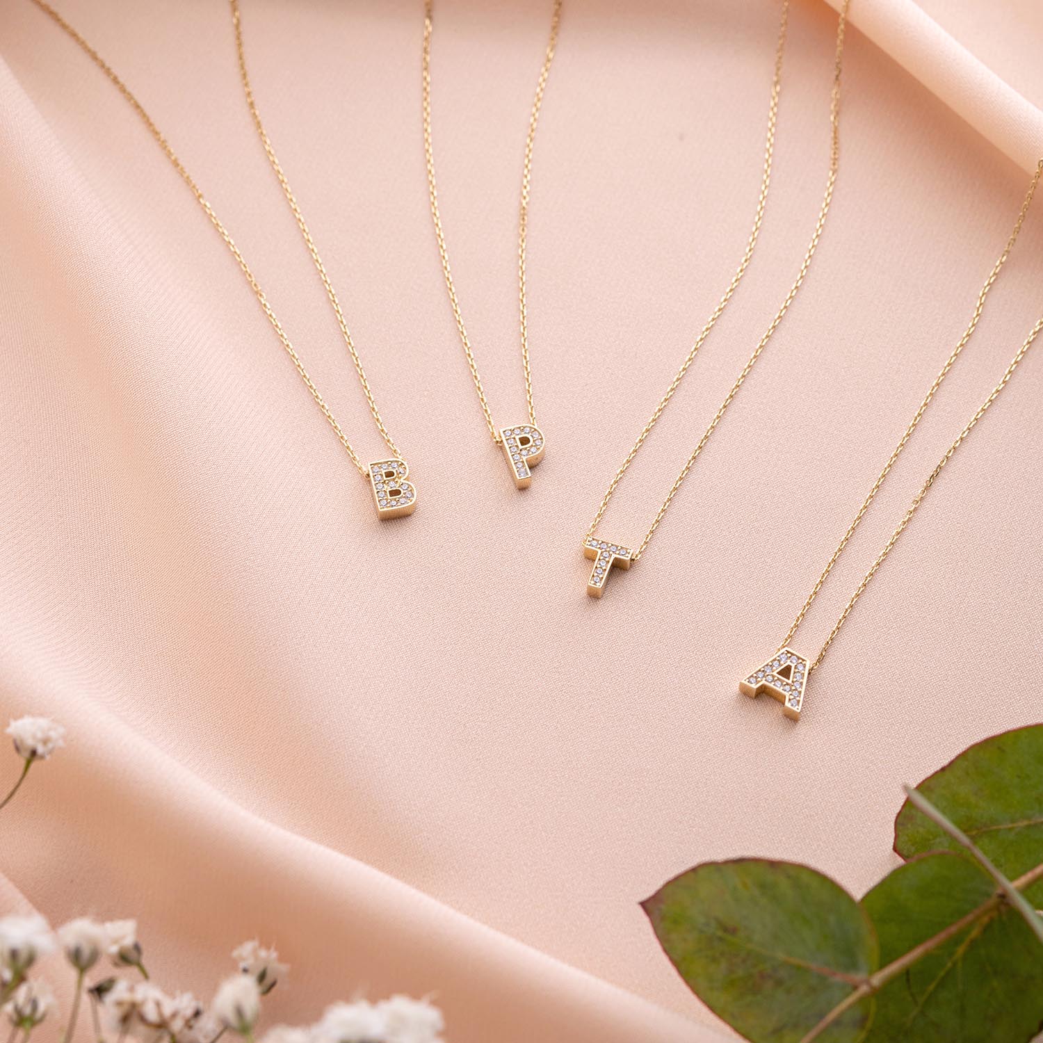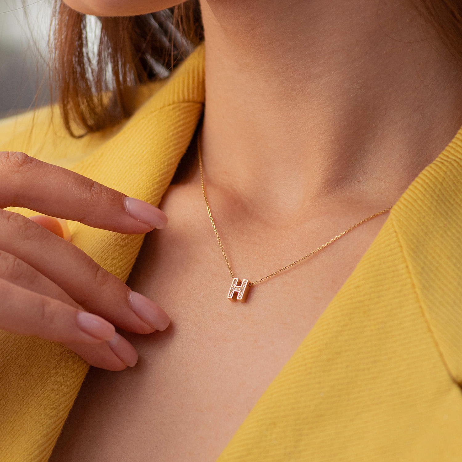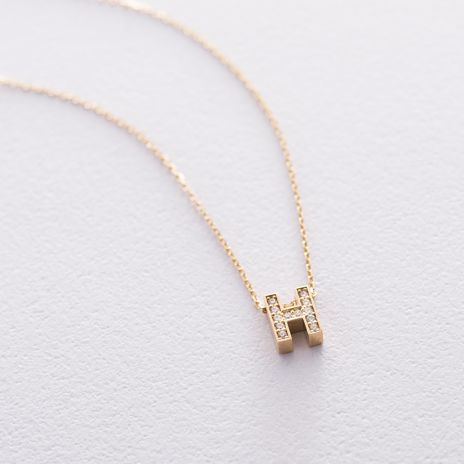 Кольє з буквою "Н" в жовтому золоті (фіаніти) кол01165н