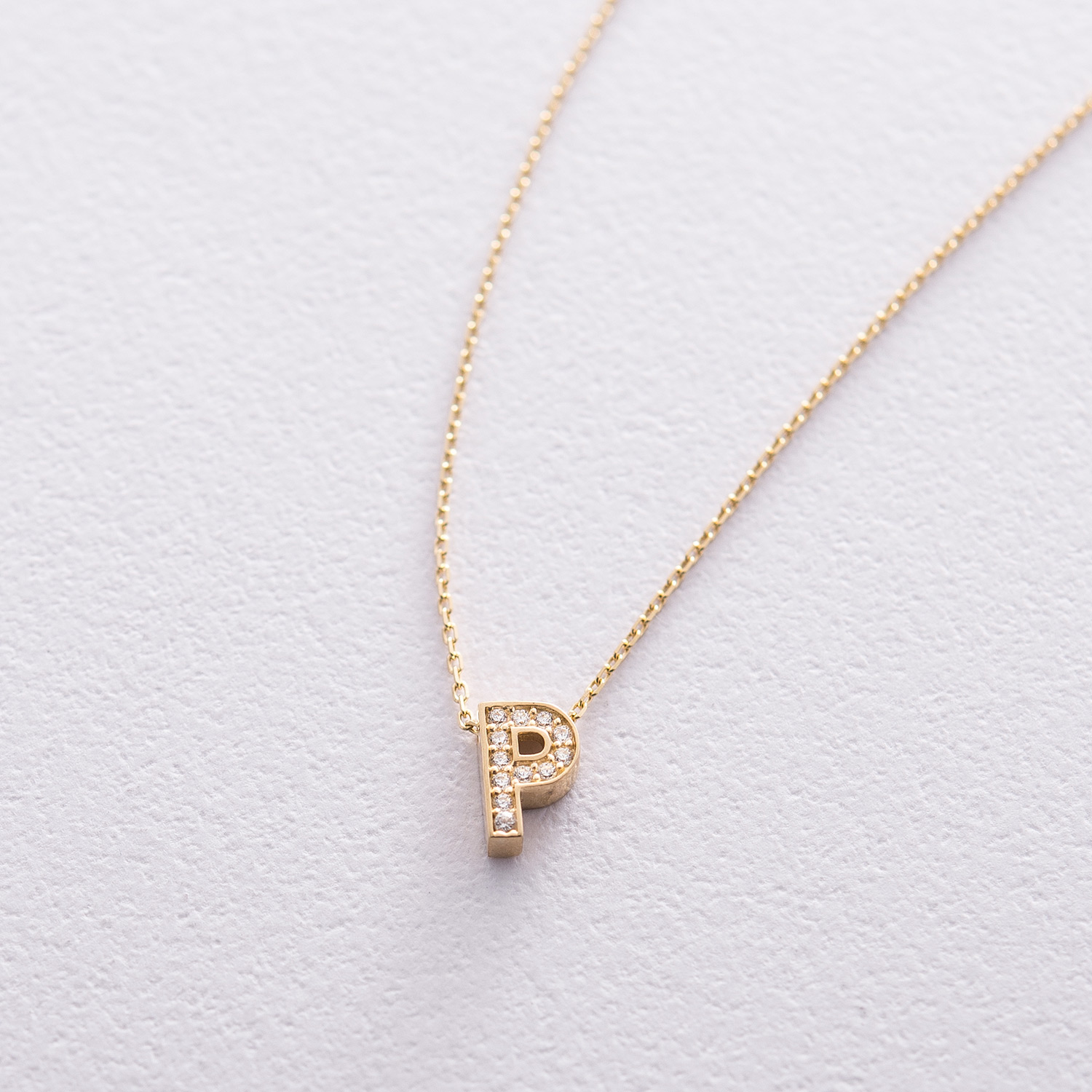 Кольє з буквою "Р" в жовтому золоті (фіаніти) кол01165Р