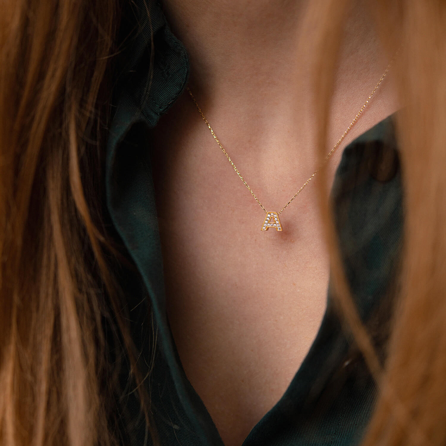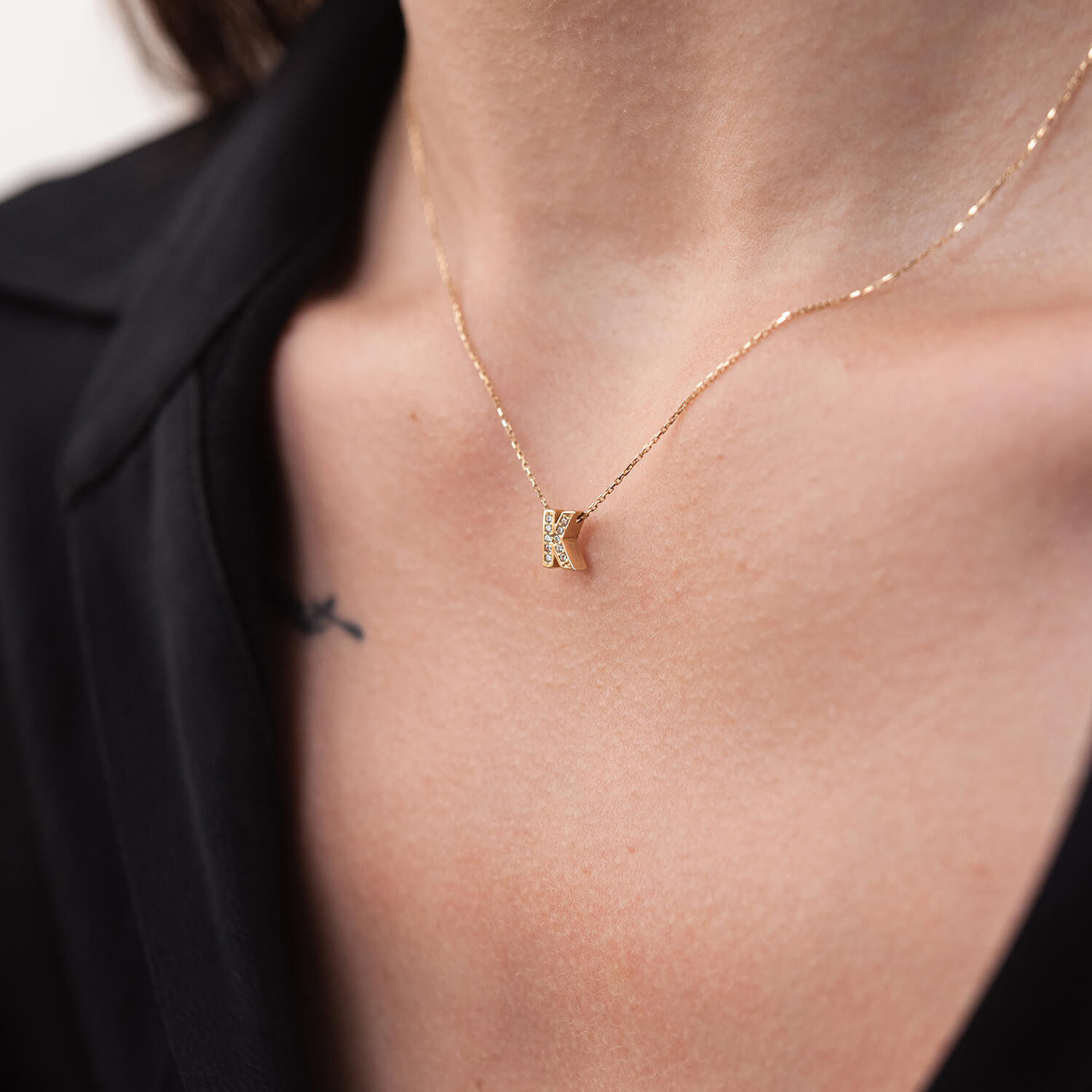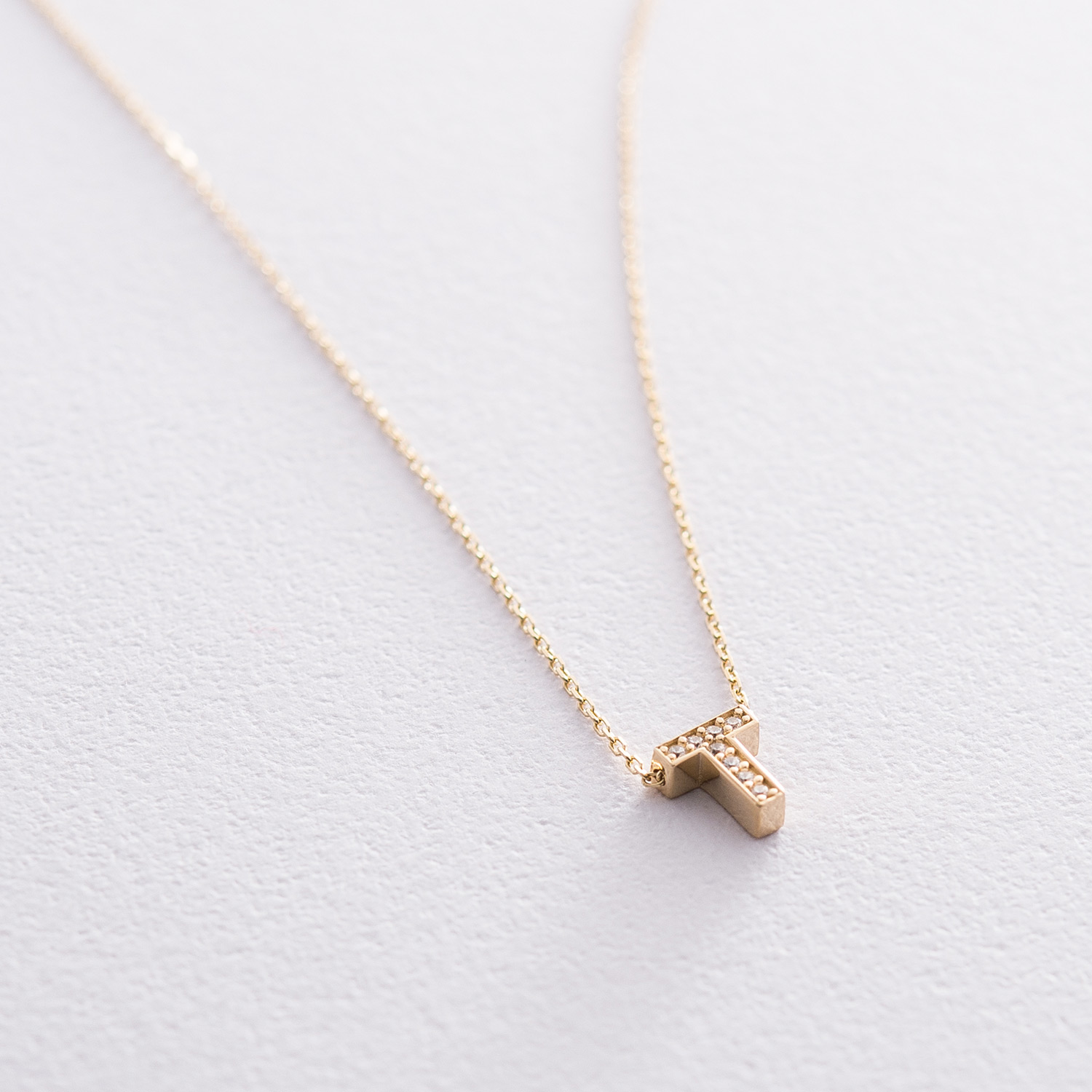 Кольє з буквою "Т" в жовтому золоті (фіаніти) кол01165Т