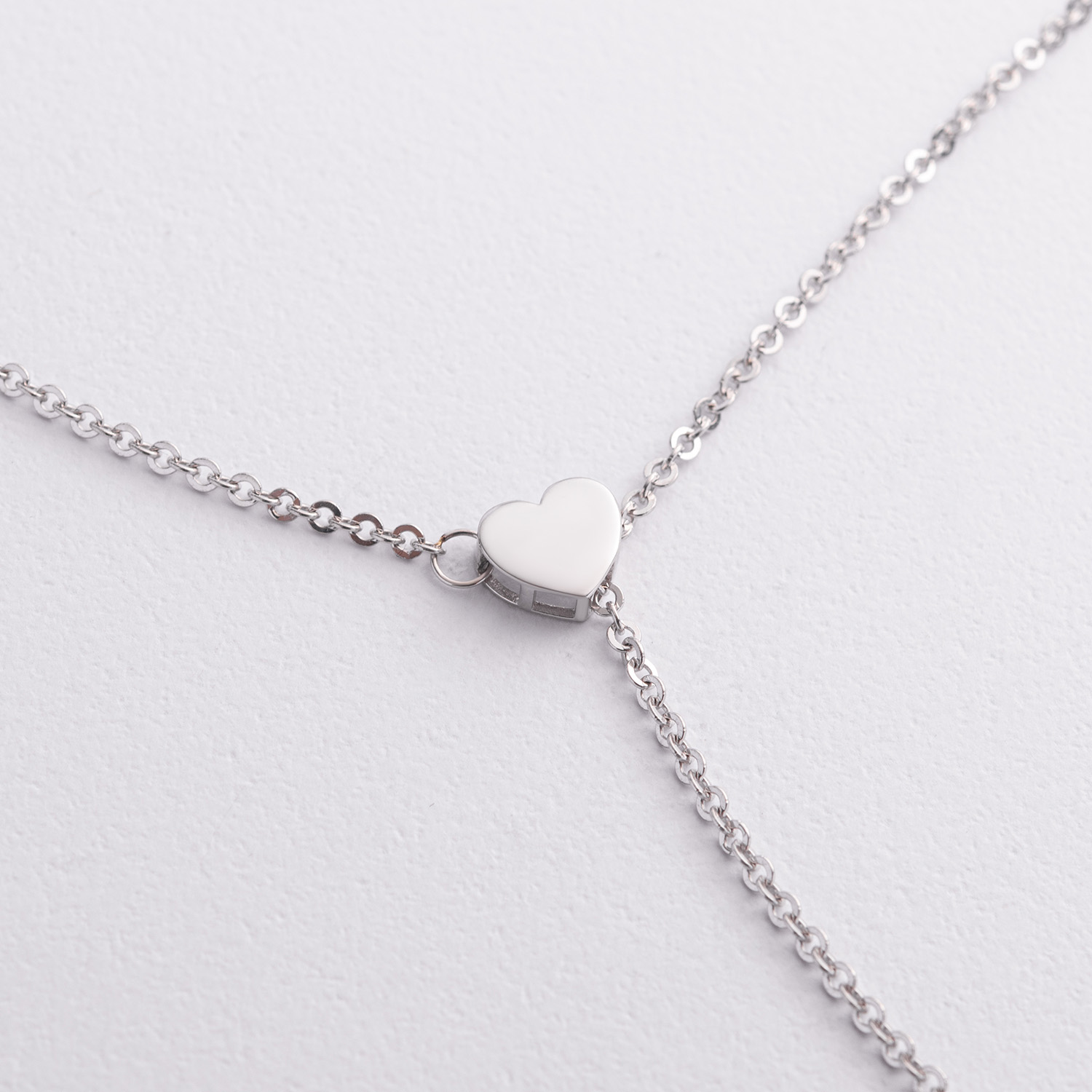 Кольє - краватка "Сердечко" у білому золоті (регульована довжина) кол02612