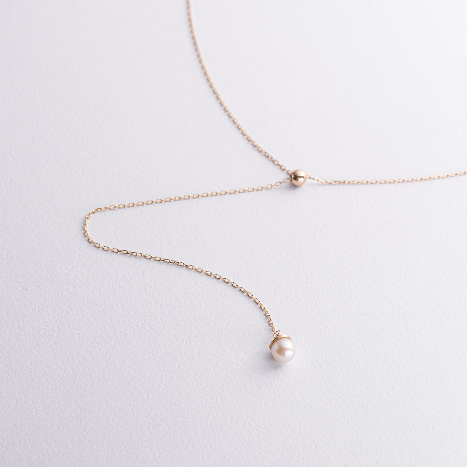 Кольє - краватка "Перлина на ланцюжку" в жовтому золоті (регульована довжина) кол02635