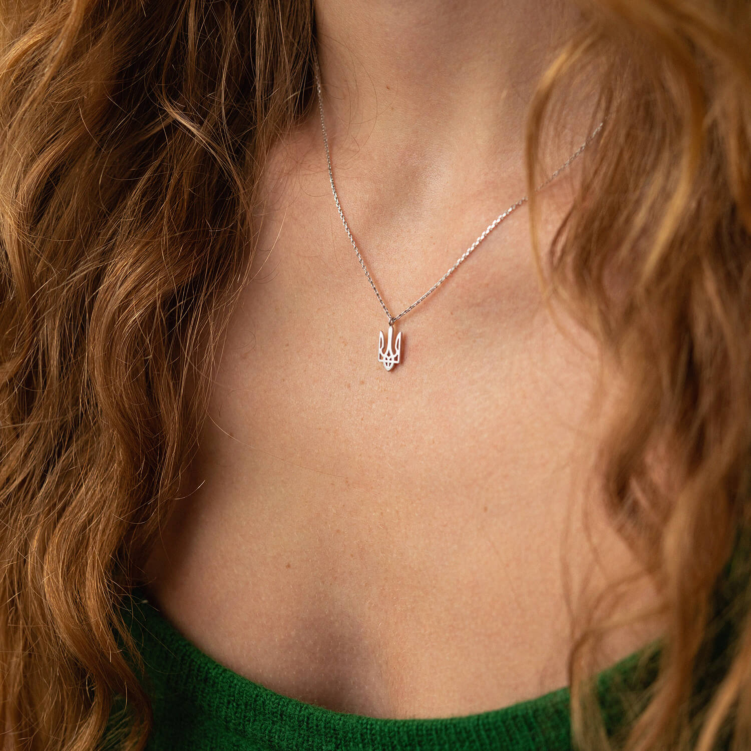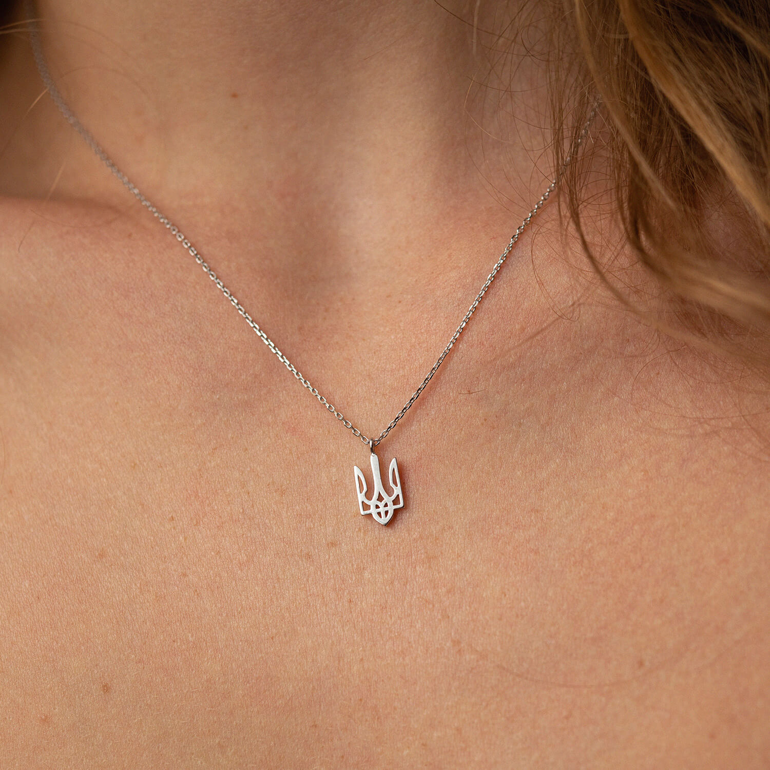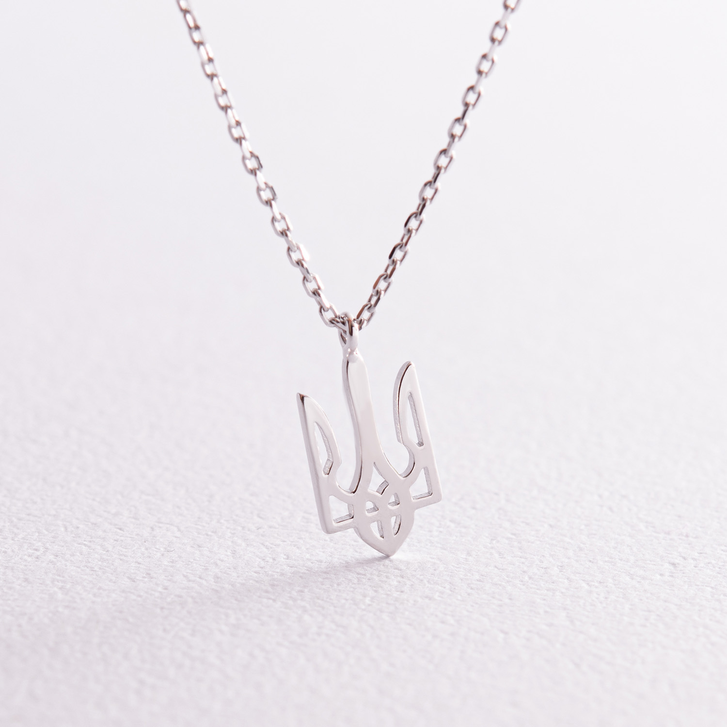 Кольє "Герб України - Тризуб" у білому золоті (маленький) кол02331