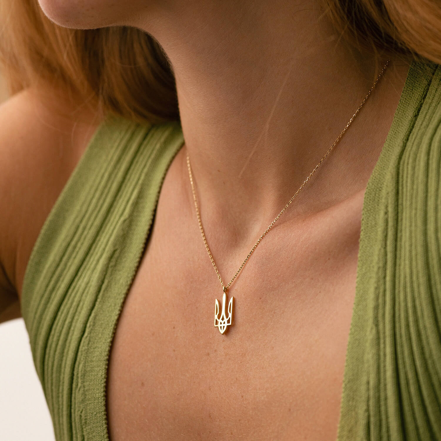 Кольє "Герб України - Тризуб" у жовтому золоті (великий) кол02415