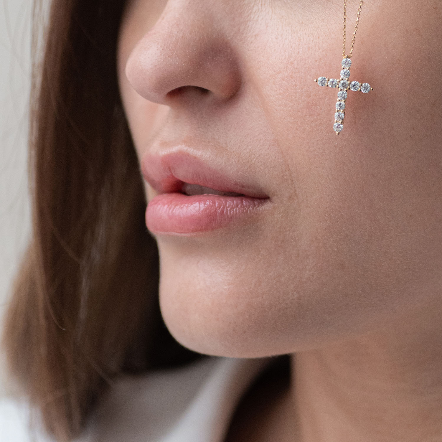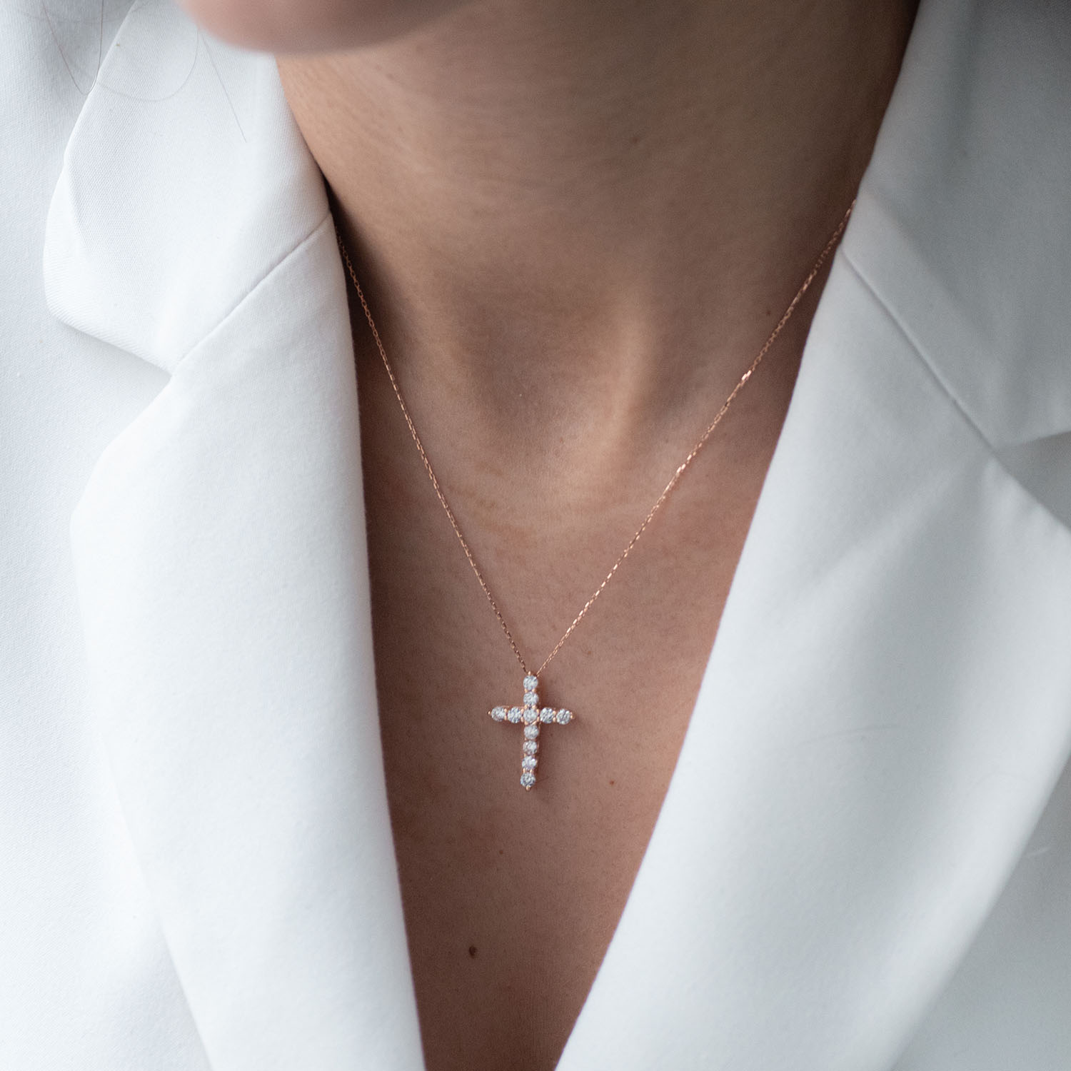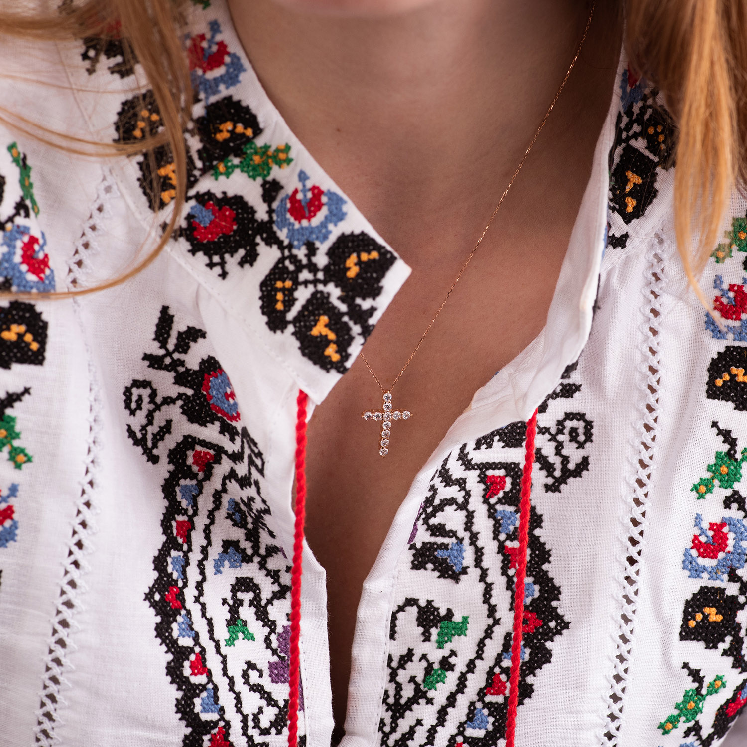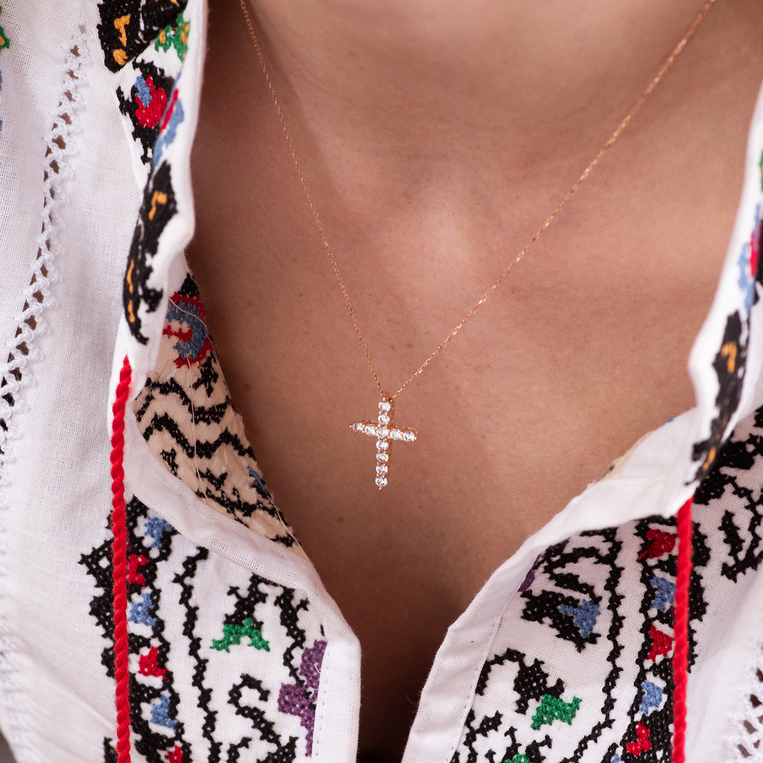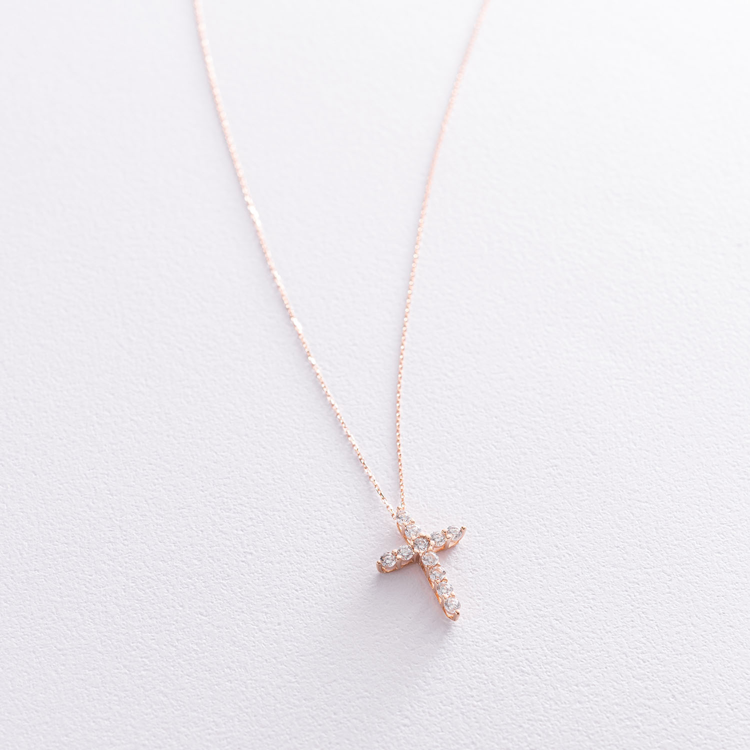 Кольє "Хрестик" в червоному золоті (фіаніти) кол01811