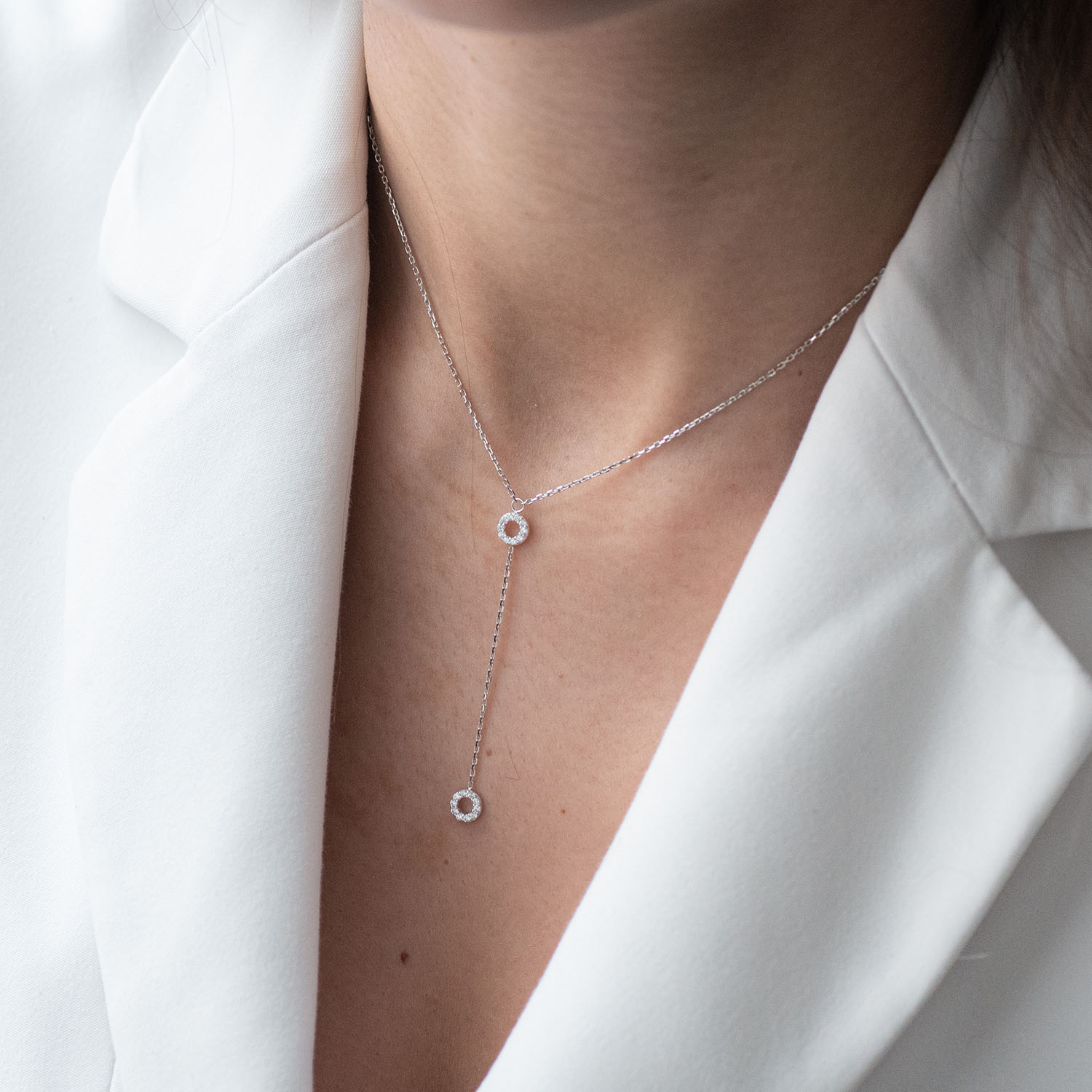 Кольє "Кружечки" в білому золоті (фіаніти) кол01825