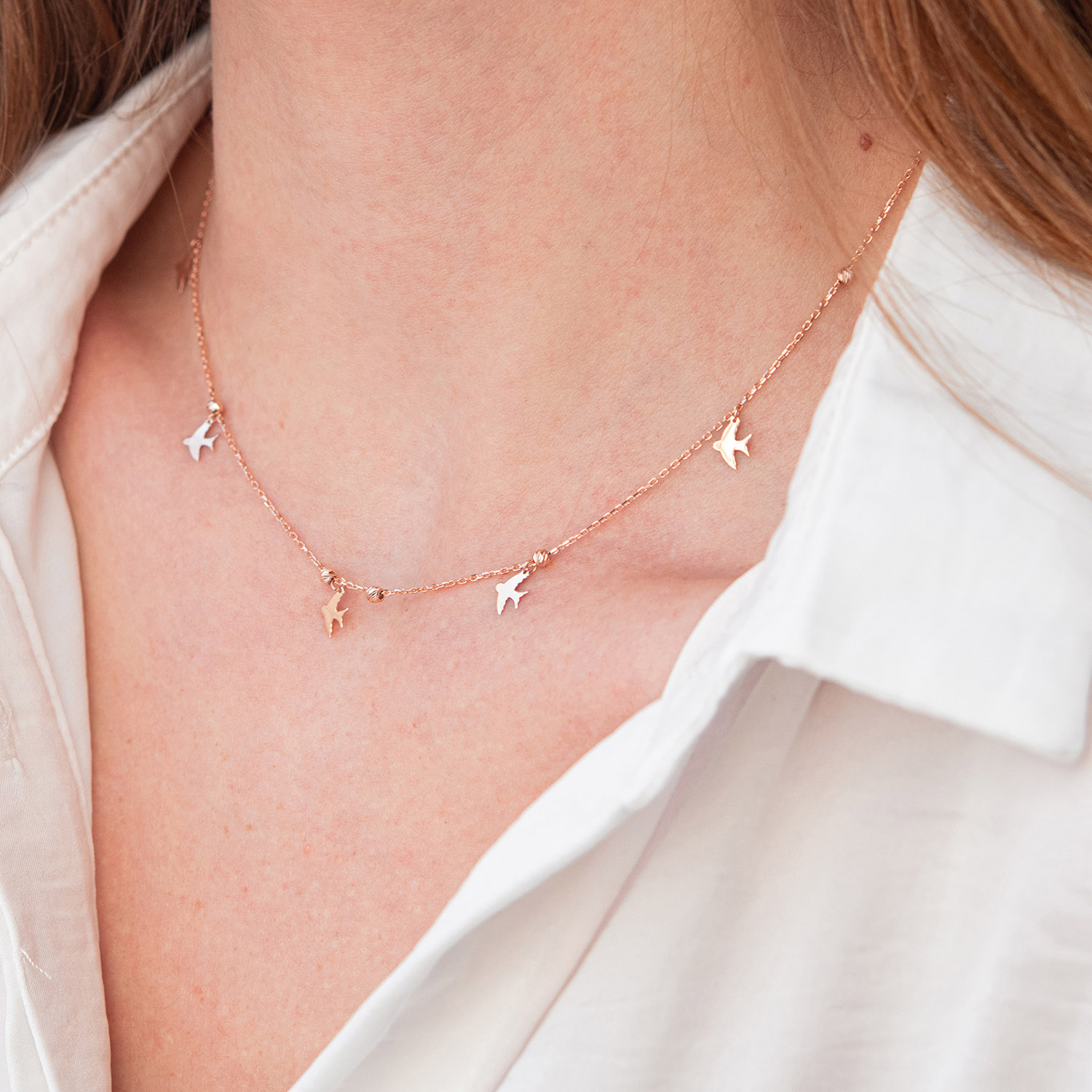 Кольє "Ластівки" в червоному золоті кол02021