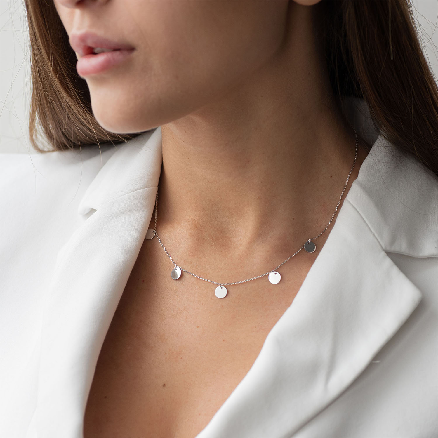Кольє "Монетки" в білому золоті (5 шт) кол01433
