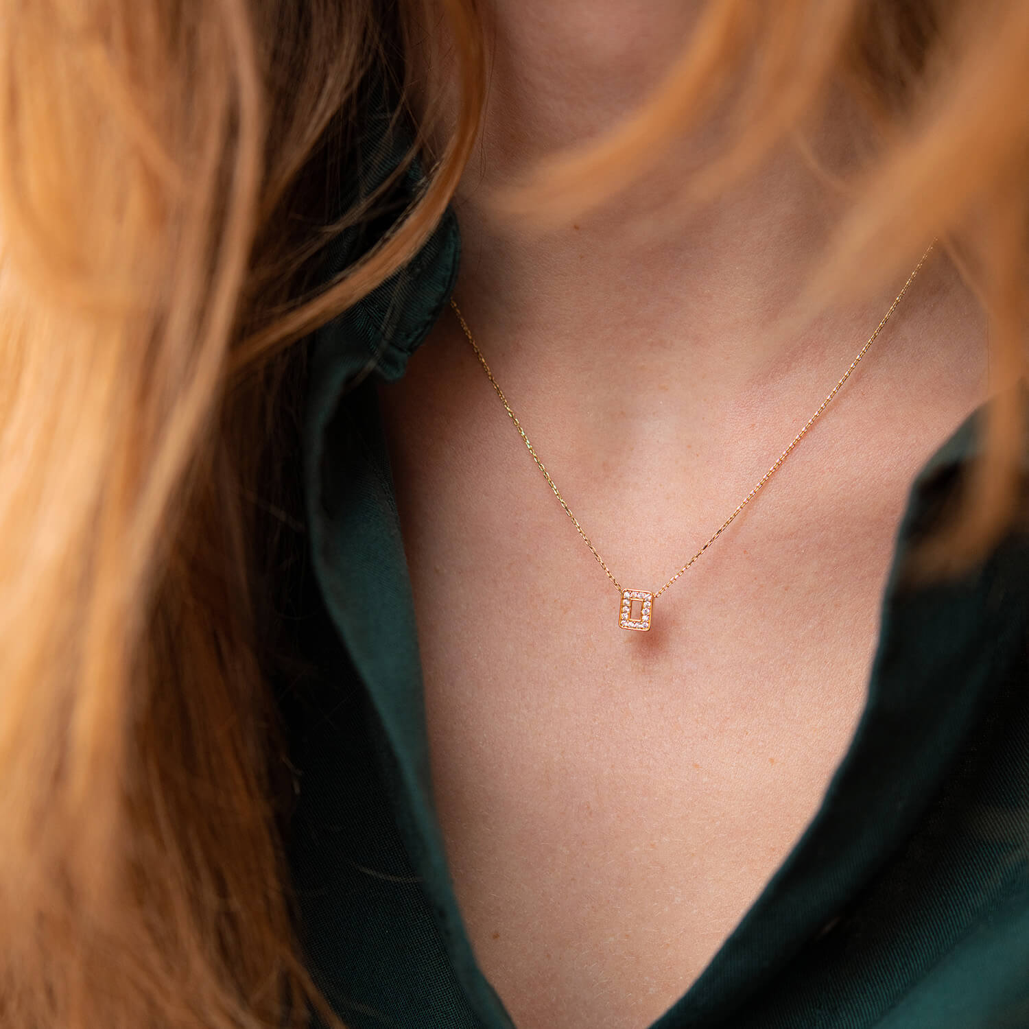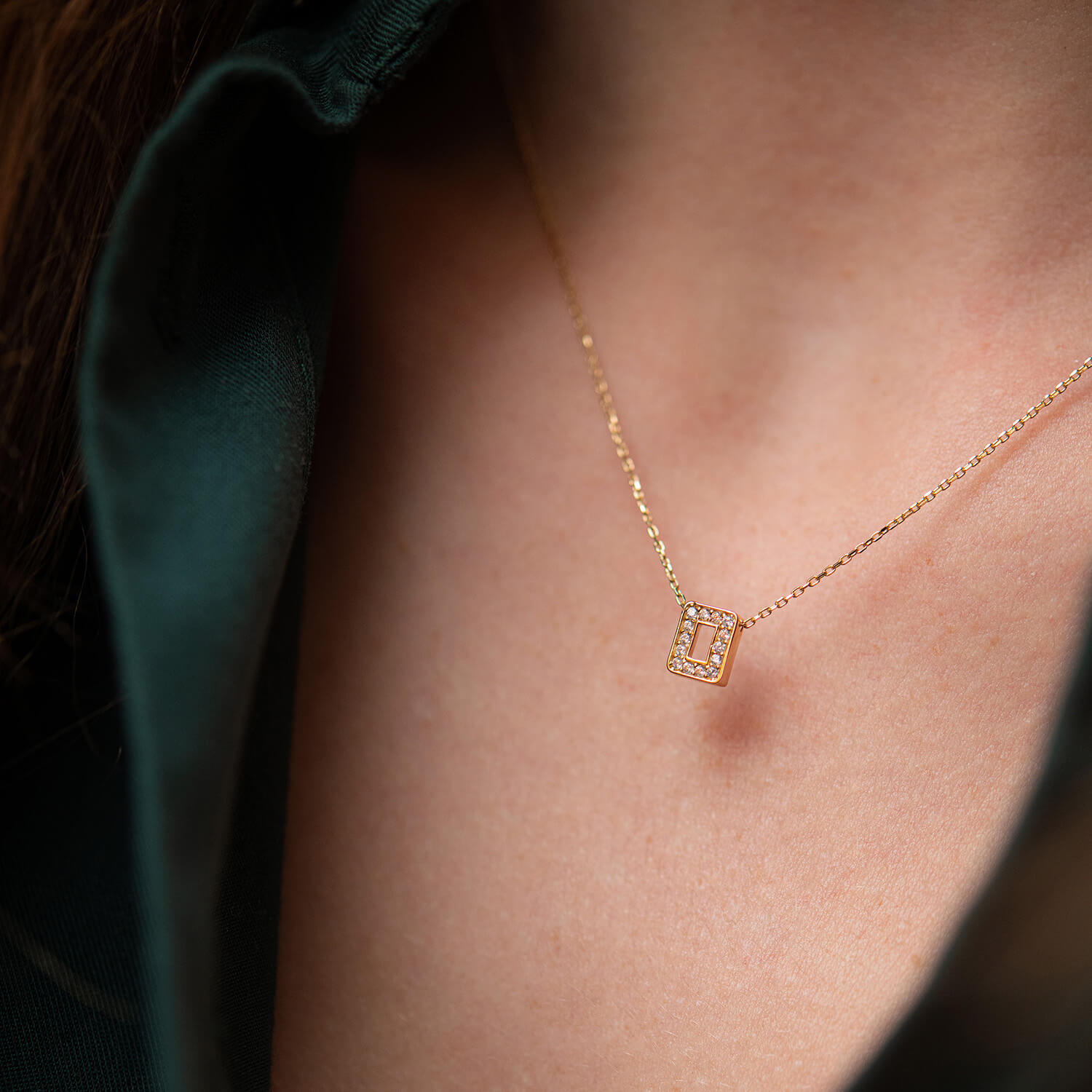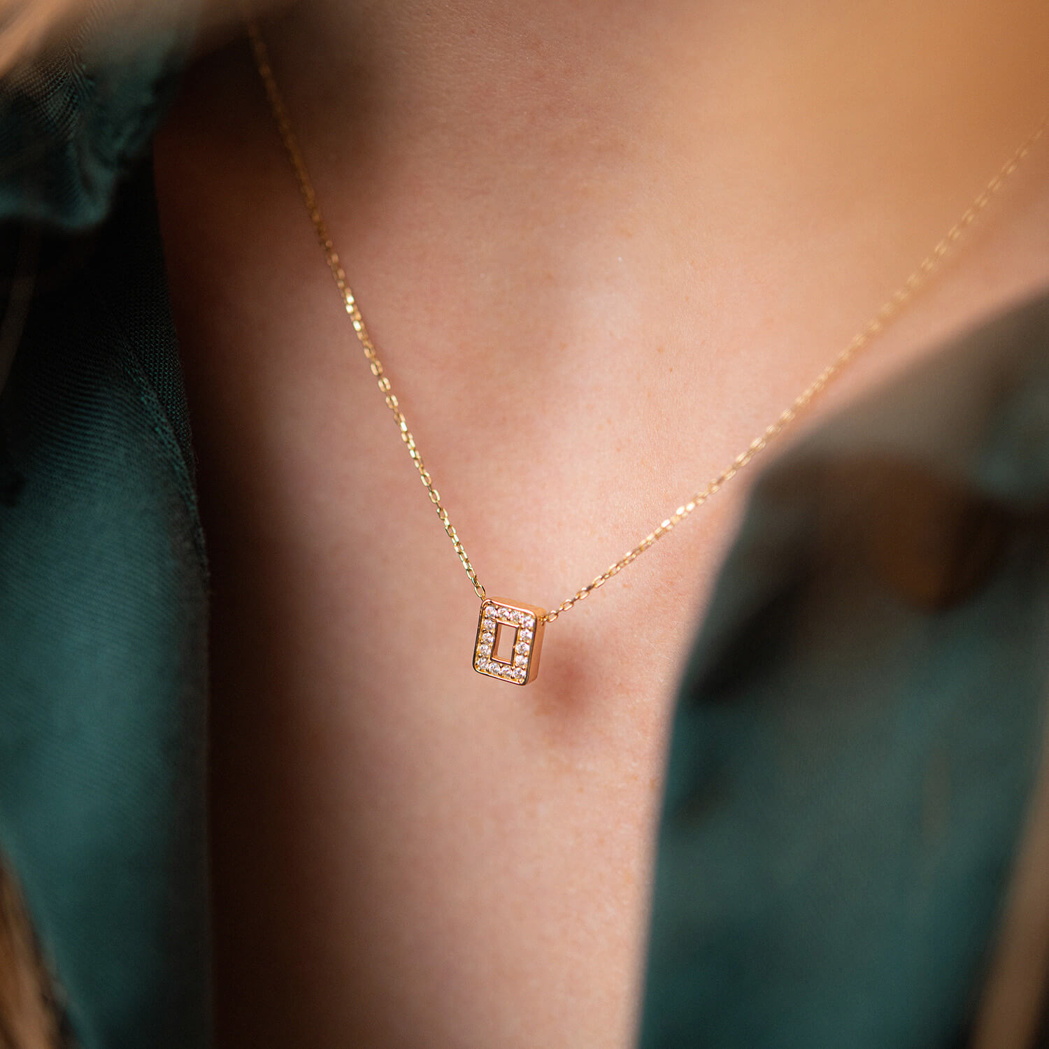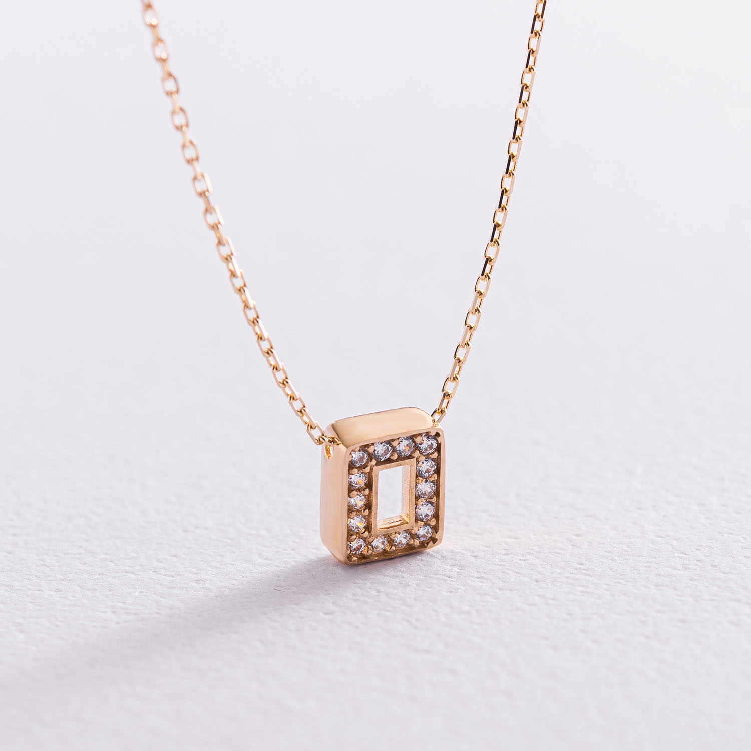 Кольє з буквою "О" в жовтому золоті (фіаніти) кол01165О