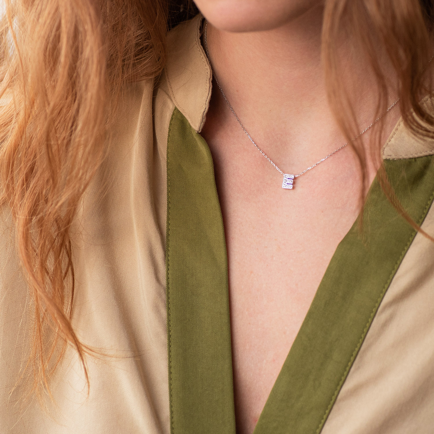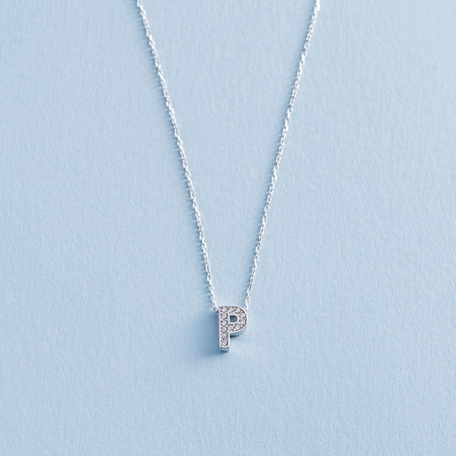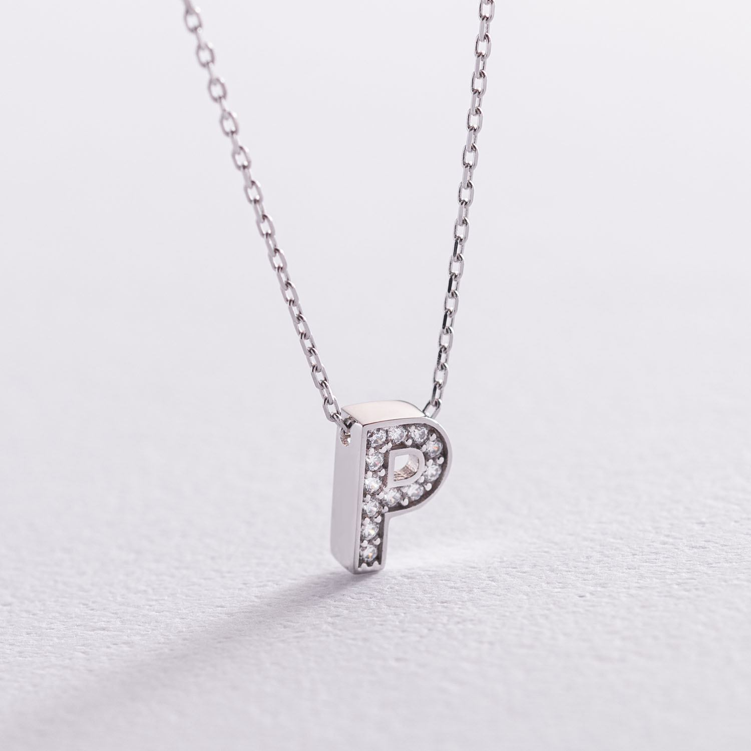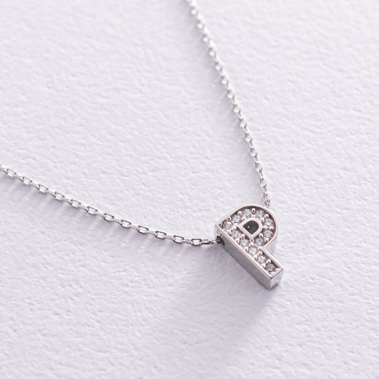 Кольє з буквою "Р" в білому золоті (фіаніти) кол01329Р