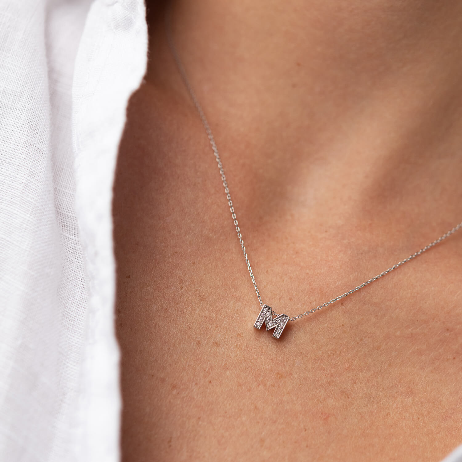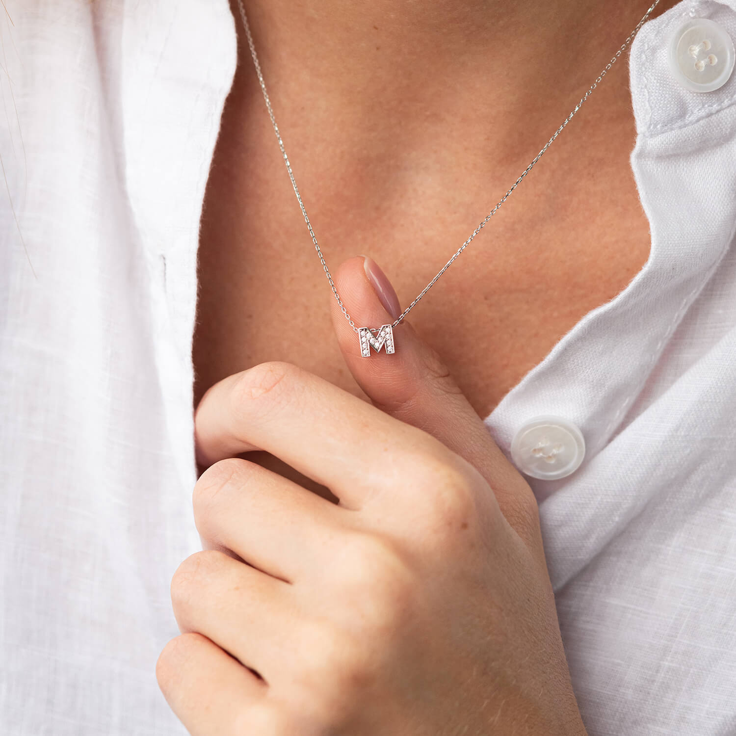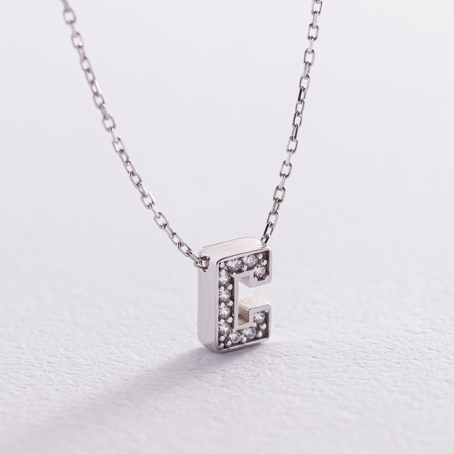 Кольє з буквою "С" в білому золоті (фіаніти) кол01329С