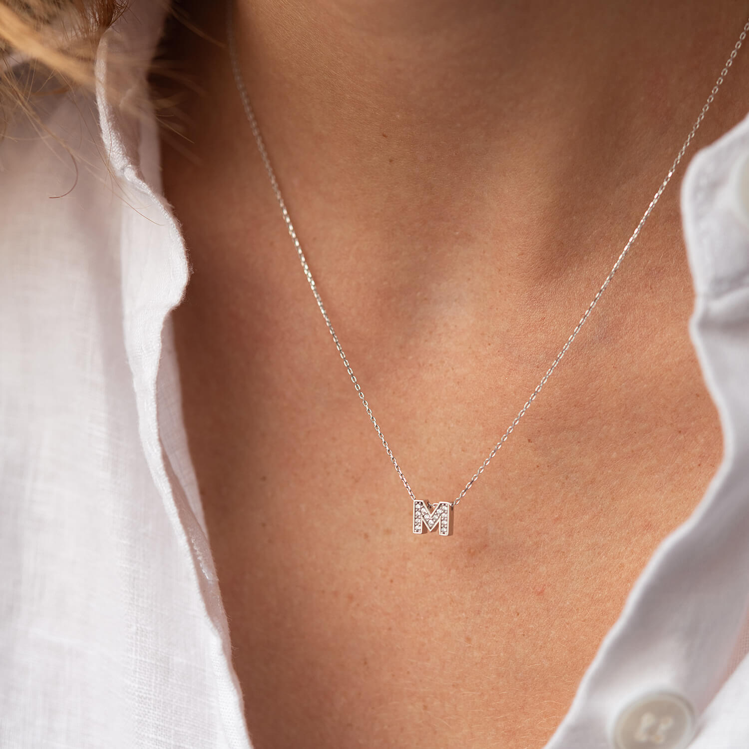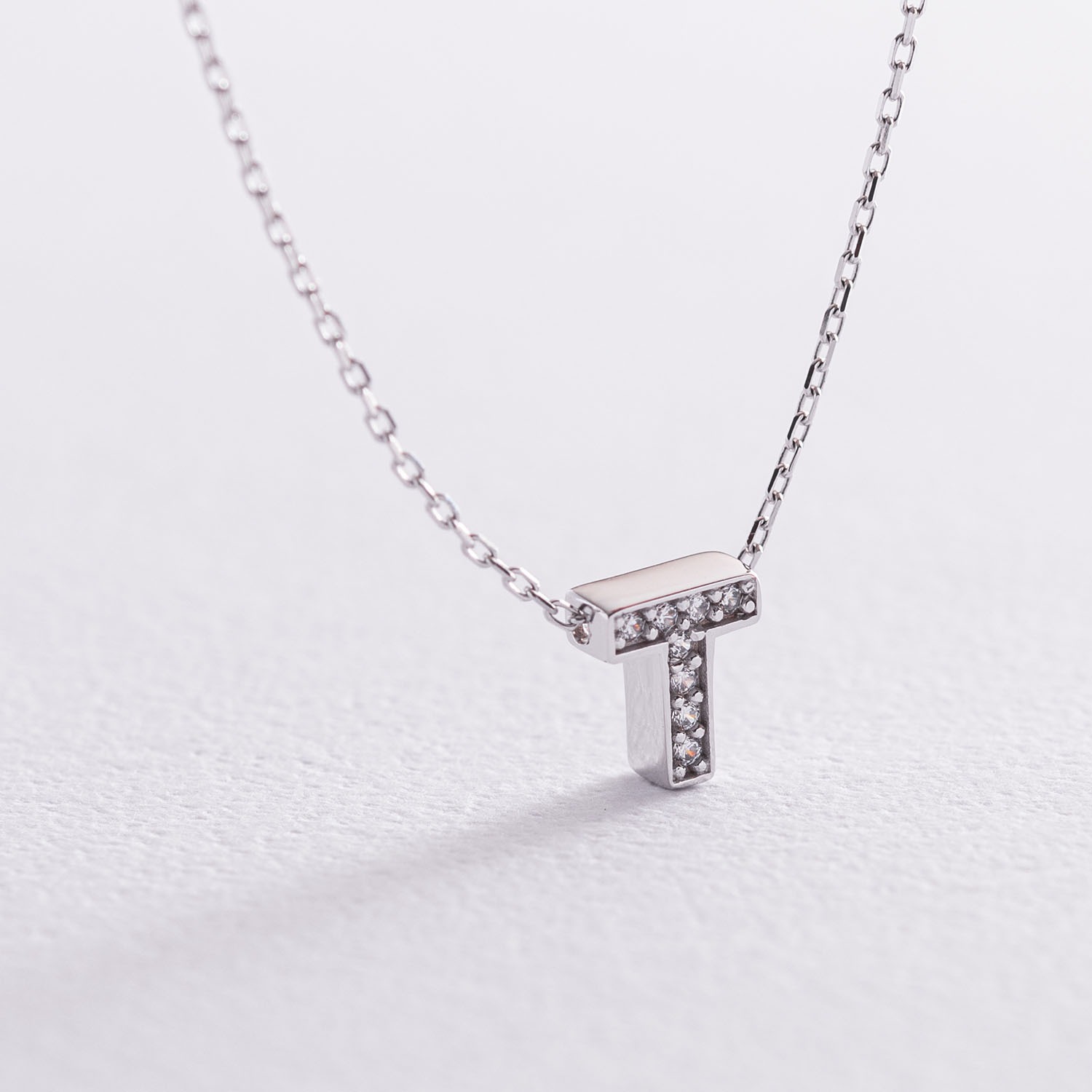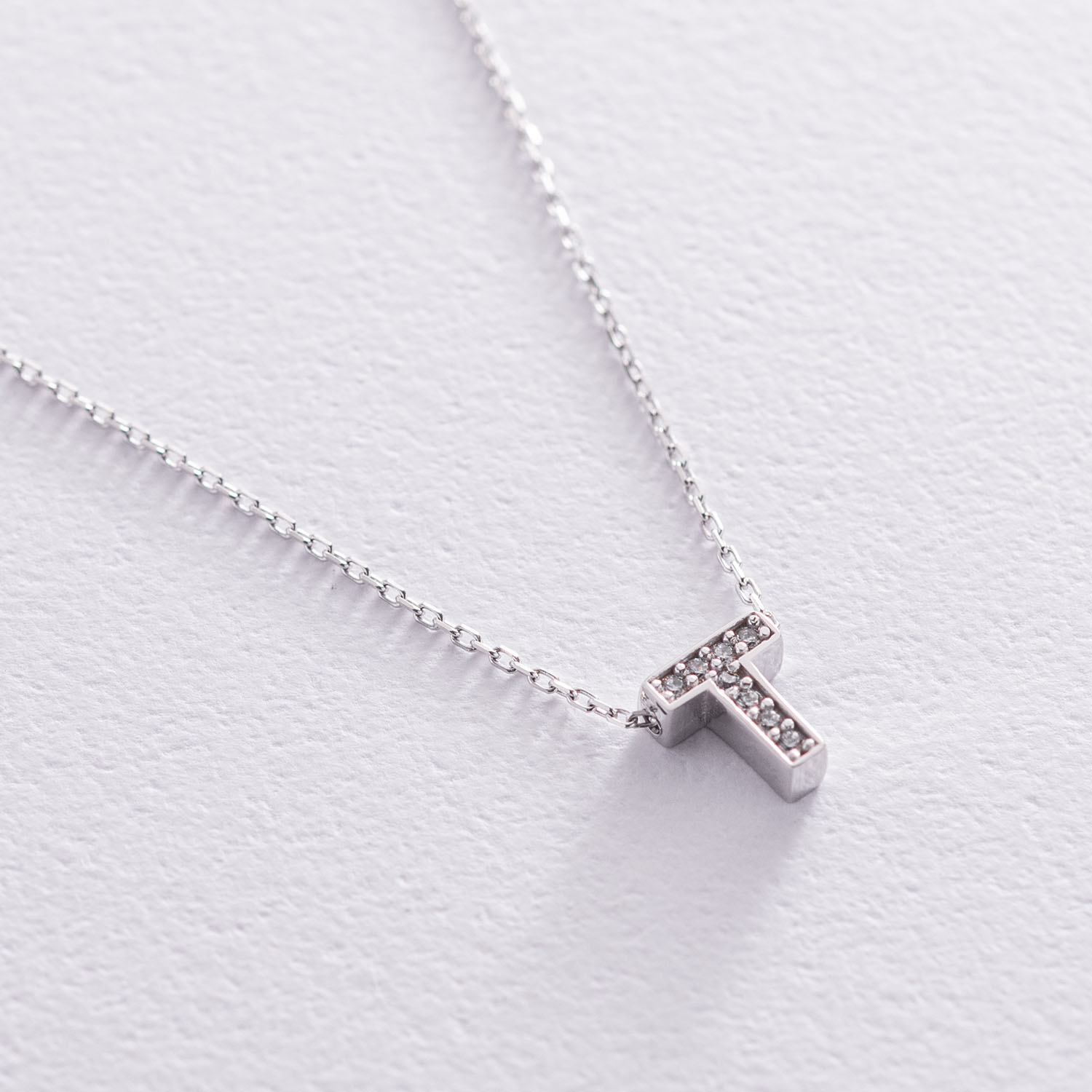 Кольє з буквою "Т" в білому золоті (фіаніти) кол01329Т